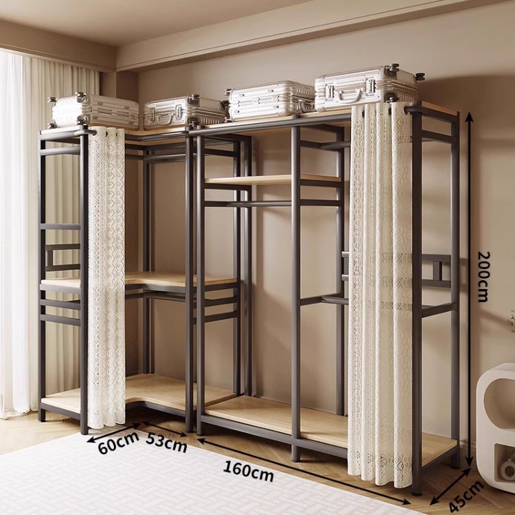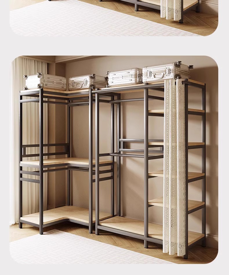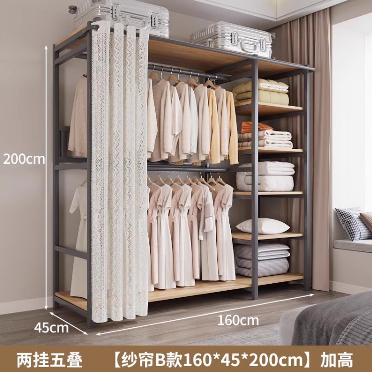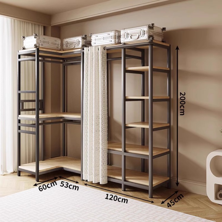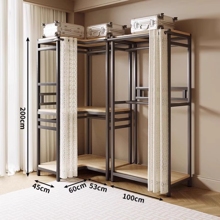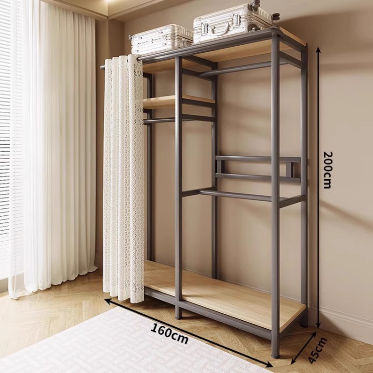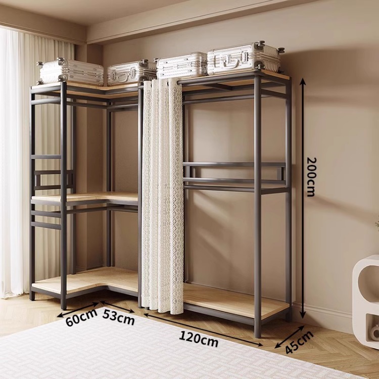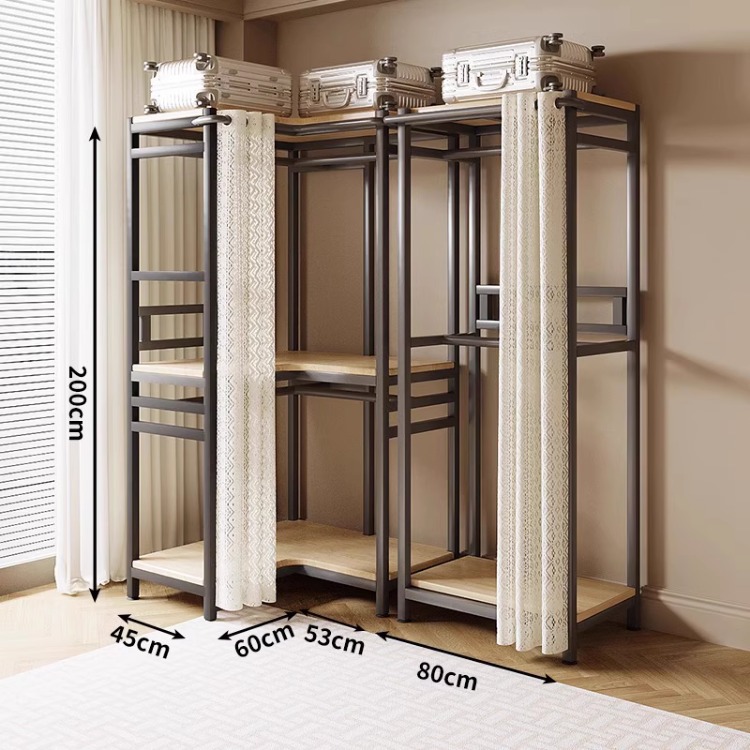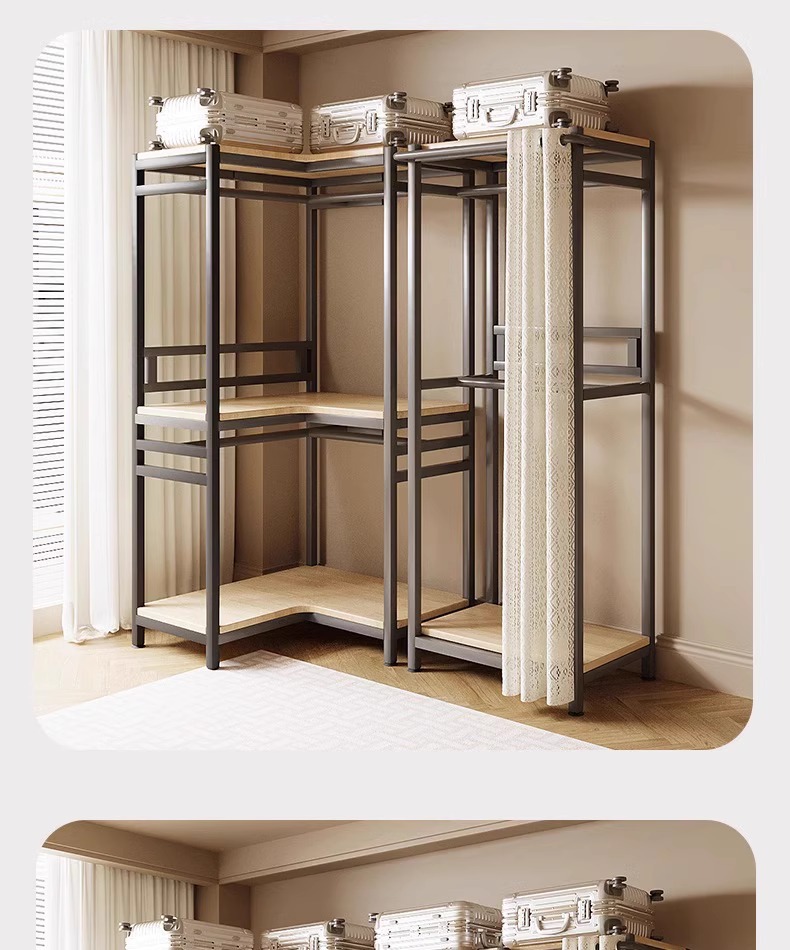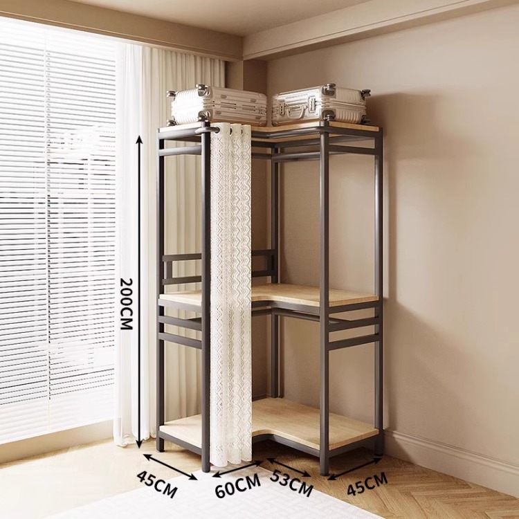 • 커튼리스 코너 캐비닛 + 거즈 커튼 B형 스태킹 공간 + 이중 걸이 의류 - 160cm