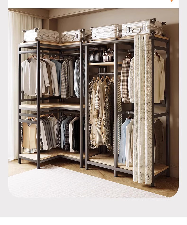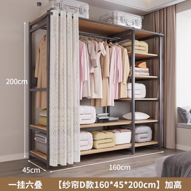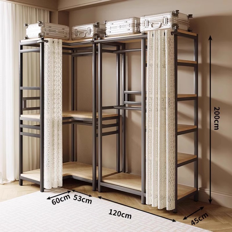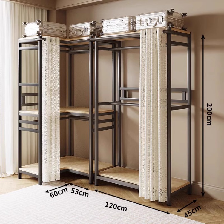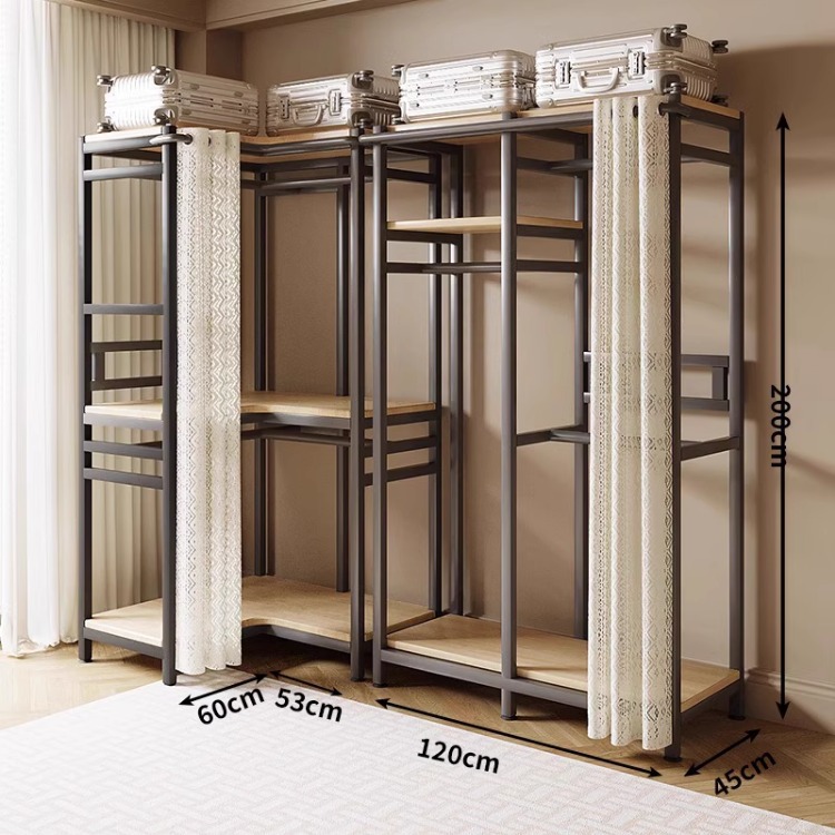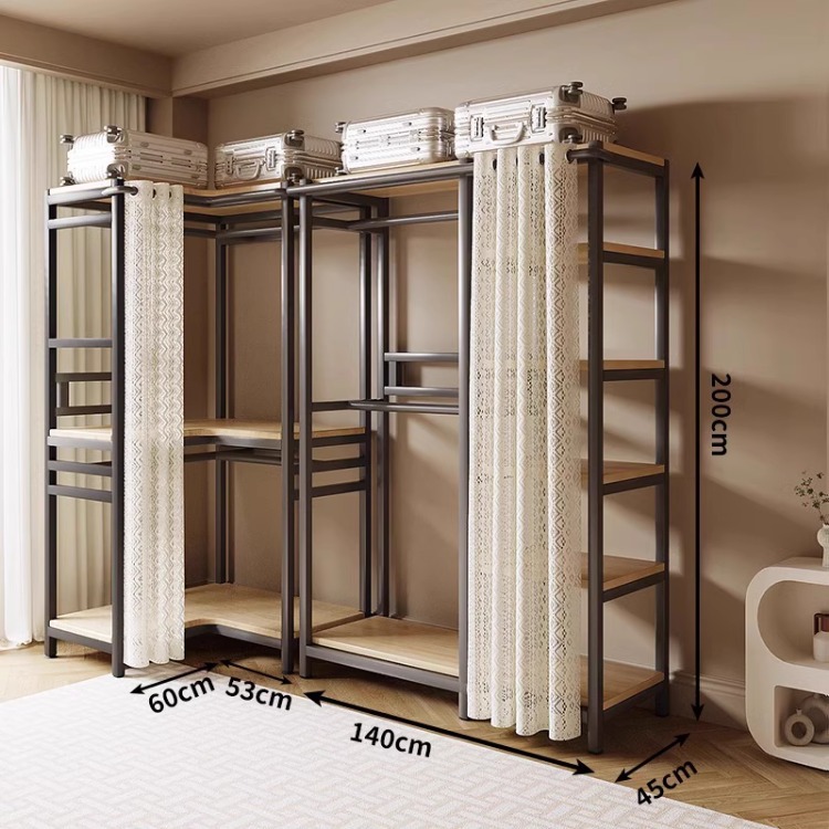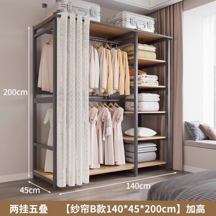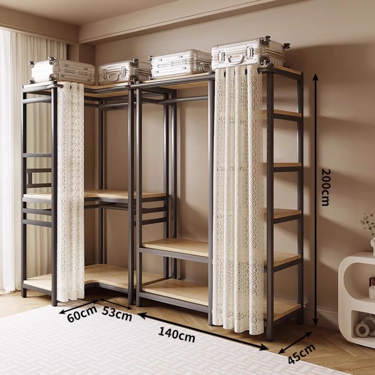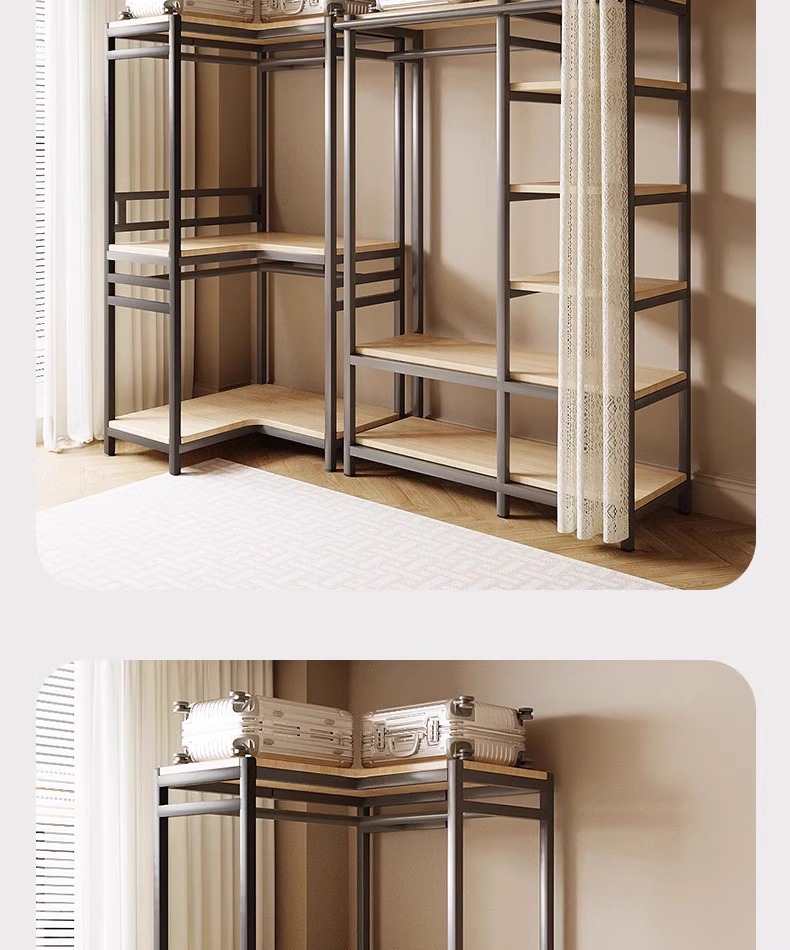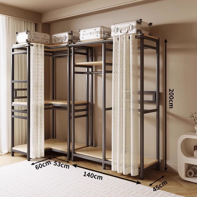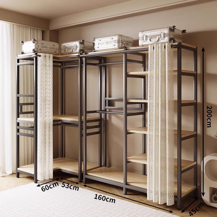 • 커튼리스 코너 캐비닛 + 거즈 커튼 B형 스태킹 공간 + 이중 걸이 의류 - 160cm