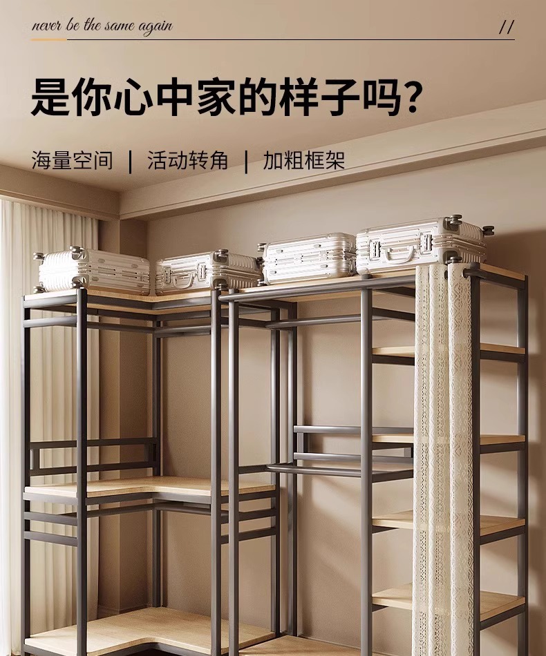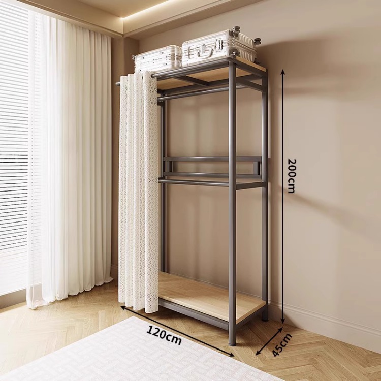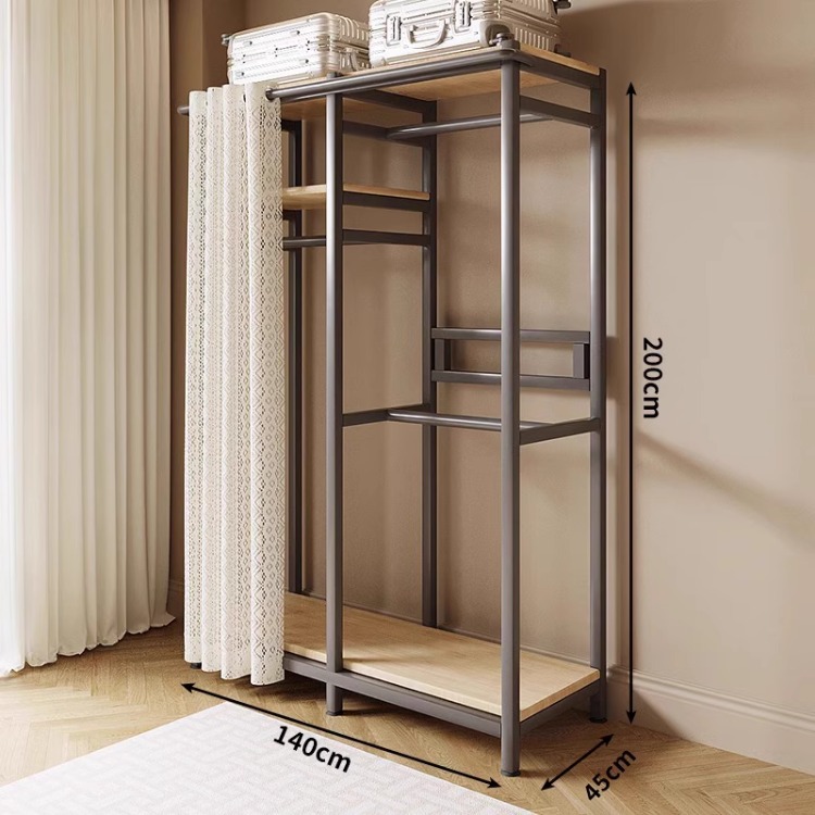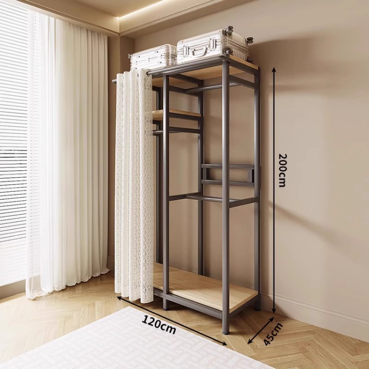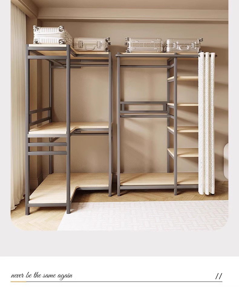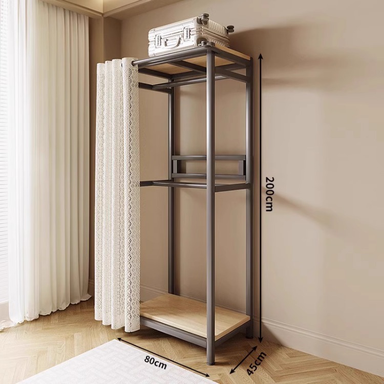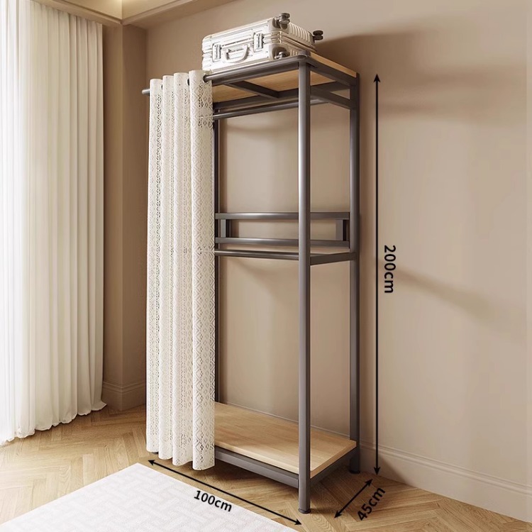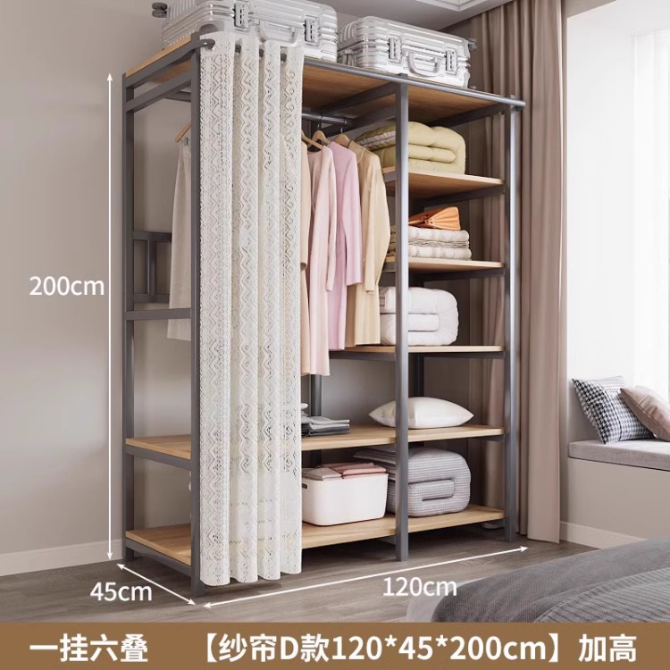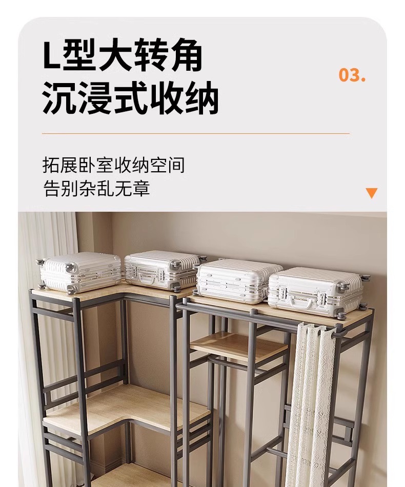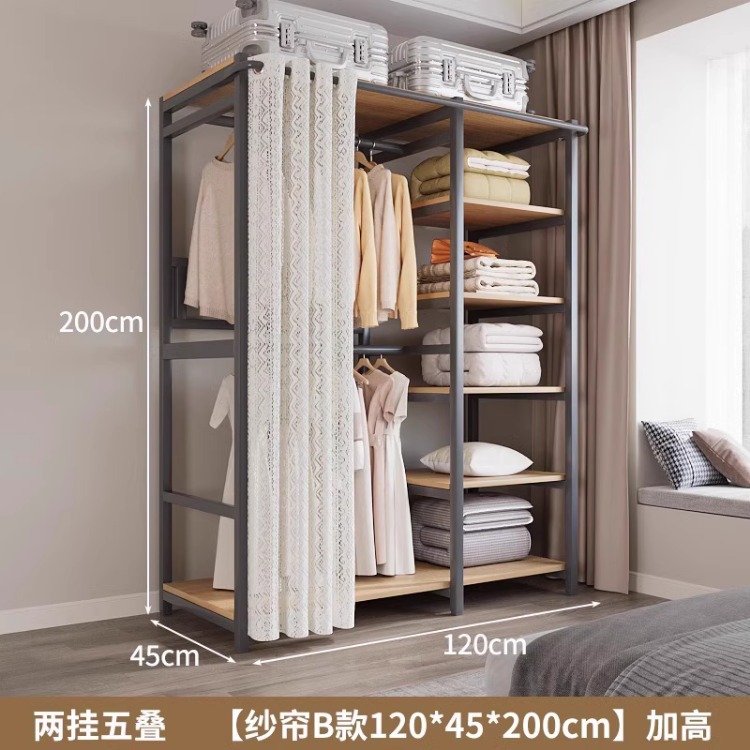 • 커튼리스 코너 캐비닛 + 거즈 커튼 B형 스태킹 공간 + 이중 걸이 의류 - 160cm