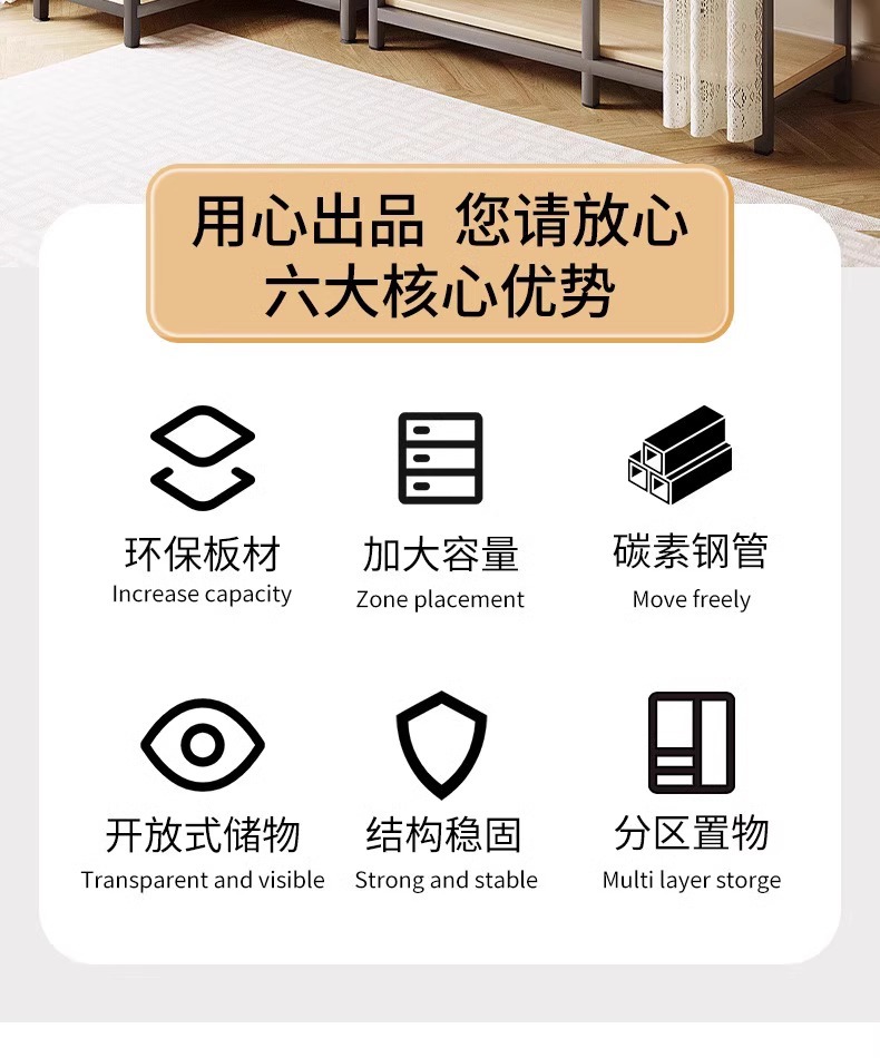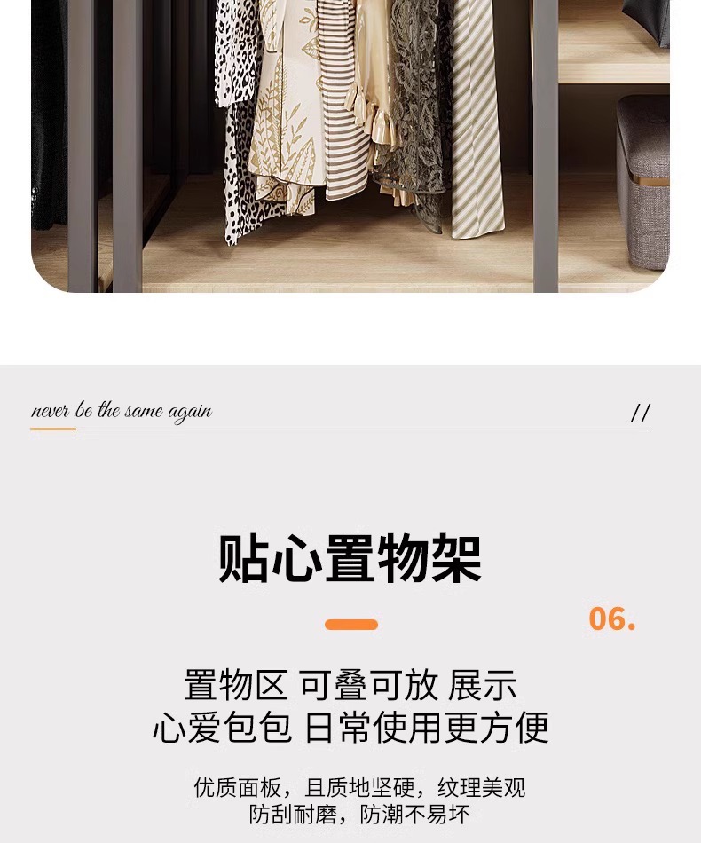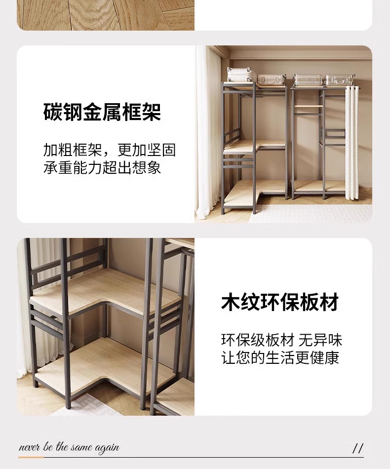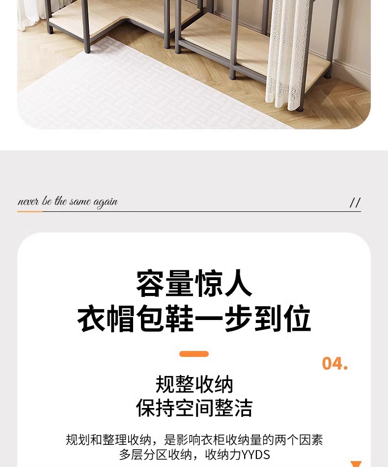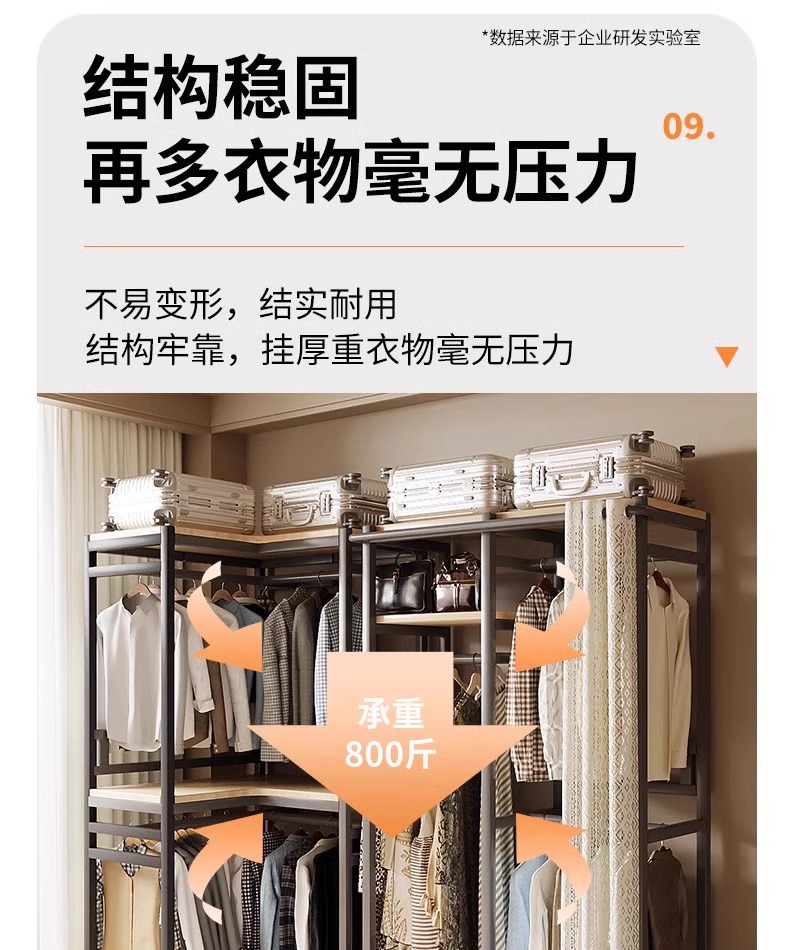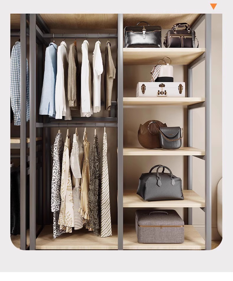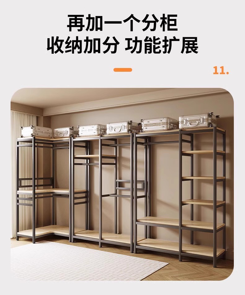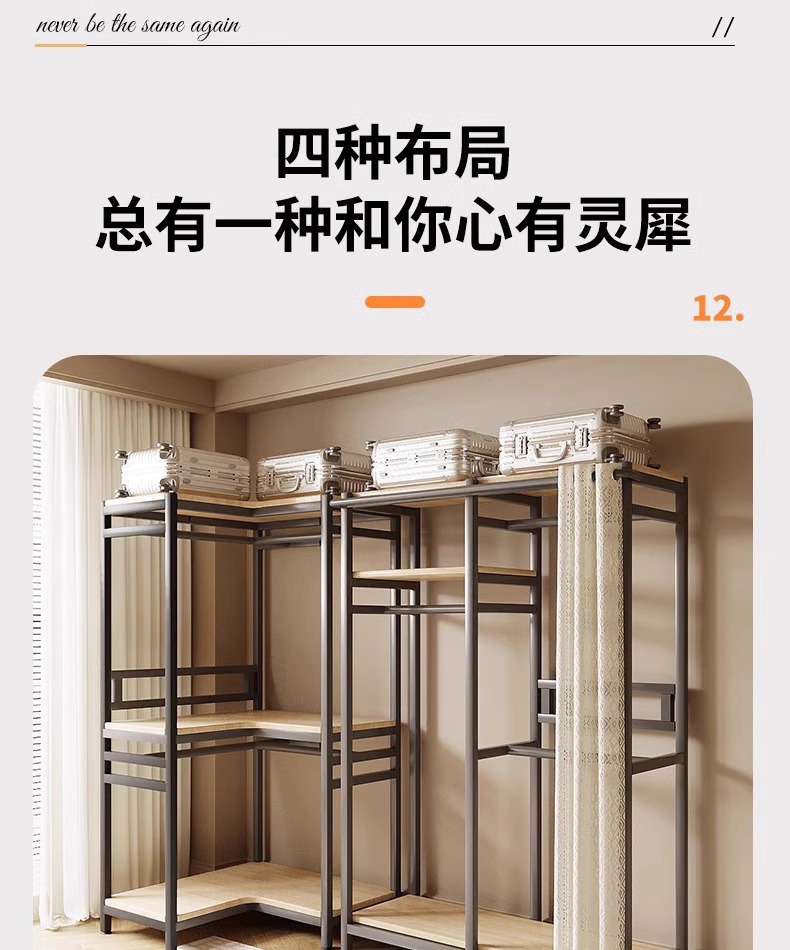 • 커튼리스 코너 캐비닛 + 거즈 커튼 B형 스태킹 공간 + 이중 걸이 의류 - 160cm