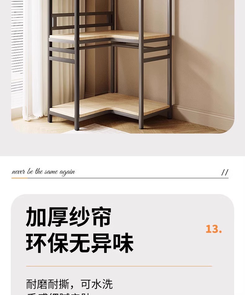 • 커튼리스 코너 캐비닛 + 거즈 커튼 D 스타일 스태킹 공간 + 긴 옷걸이 - 140cm
