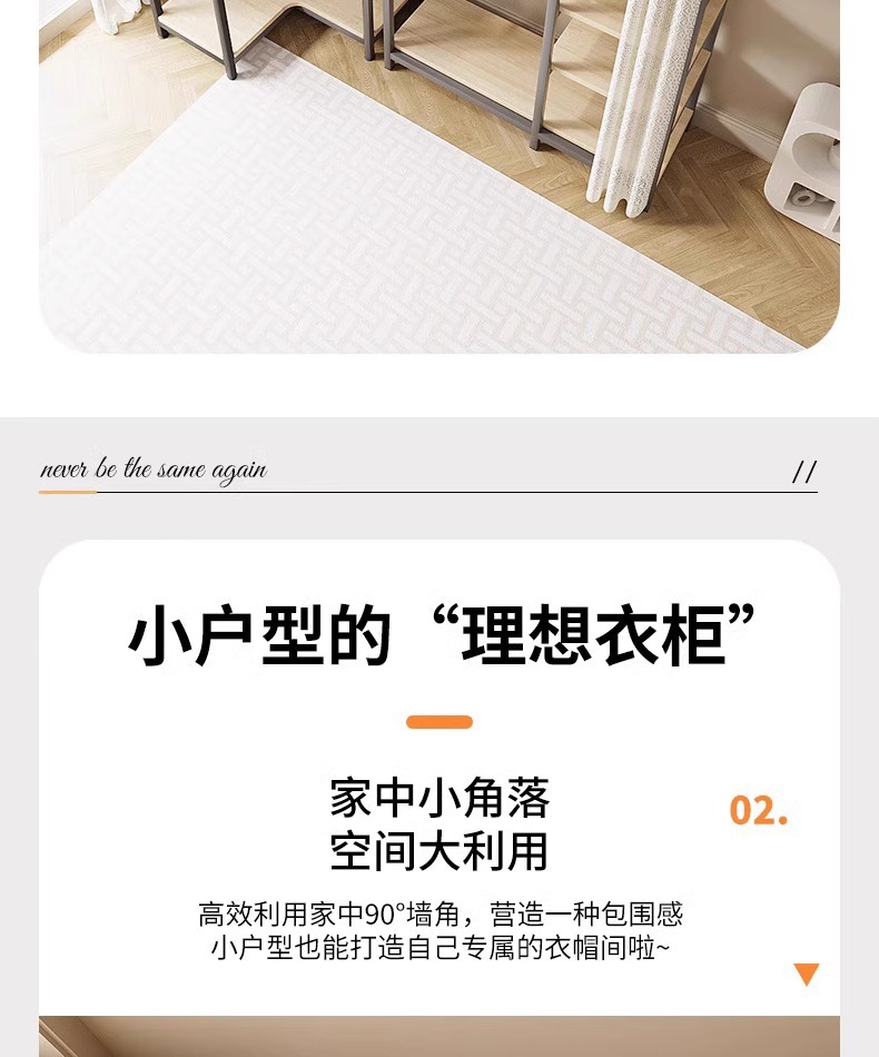 • 커튼리스 코너 캐비닛 + 거즈 커튼 D 스타일 스태킹 공간 + 긴 옷걸이 - 120cm