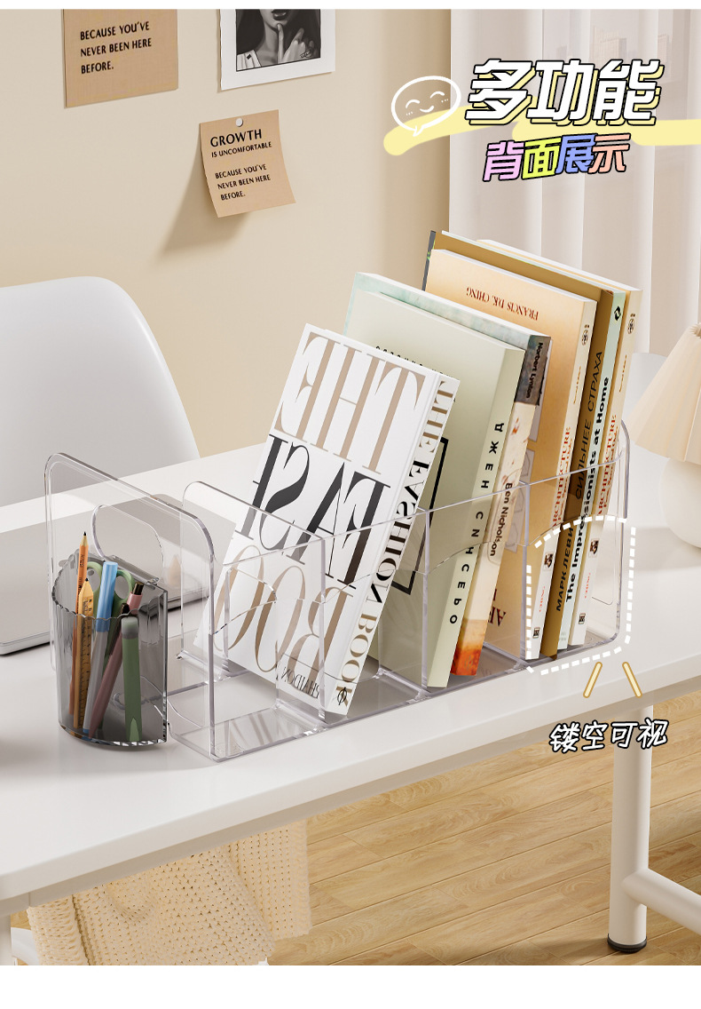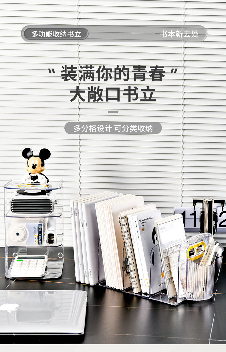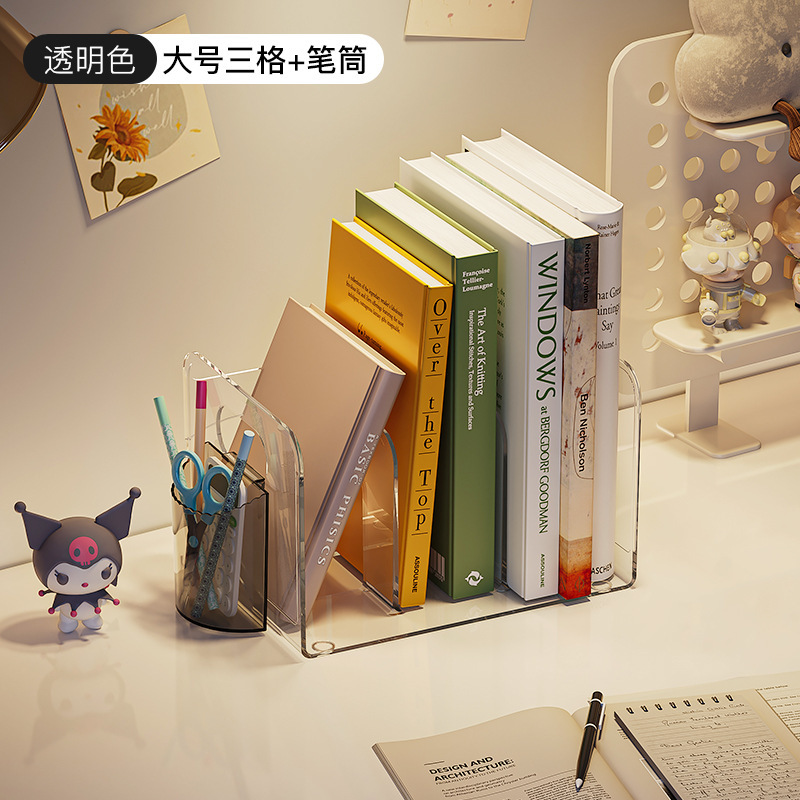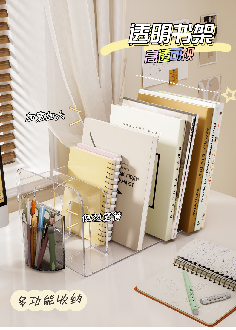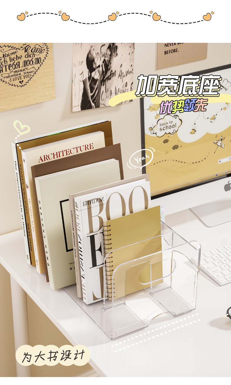 아크릴 데스크탑 북 랙 오피스 파일 스토리지 랙 펜 홀더 책장 학생 간단한 책 보관 랙
