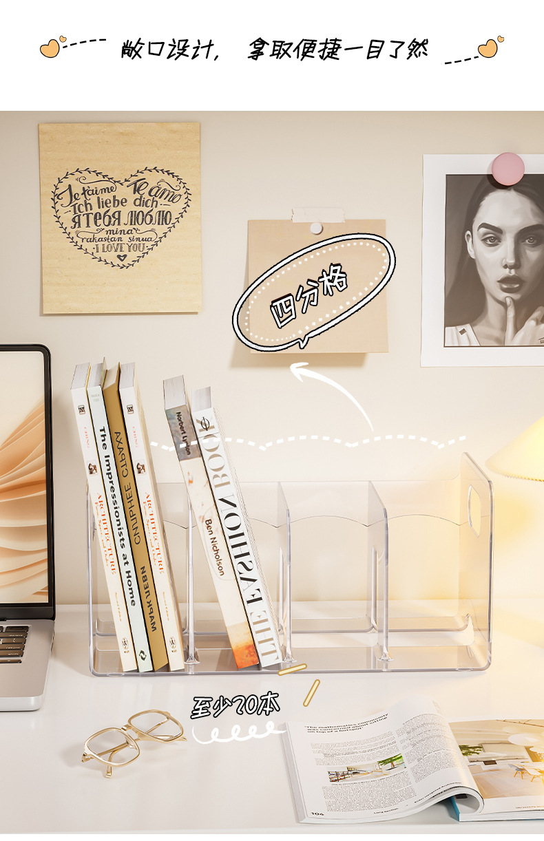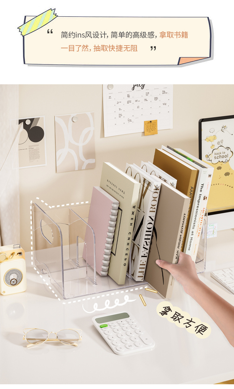 아크릴 데스크탑 북 랙 오피스 파일 스토리지 랙 펜 홀더 책장 학생 간단한 책 보관 랙스토어 가기