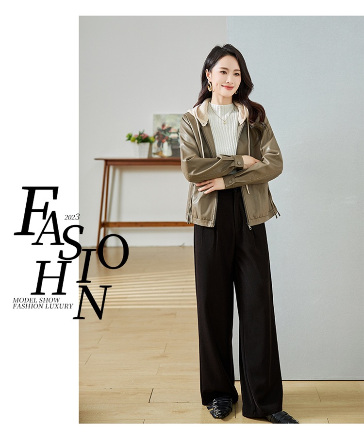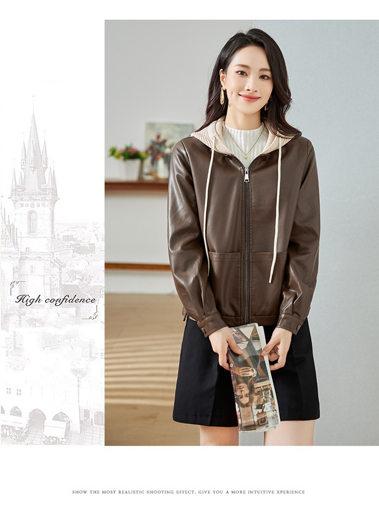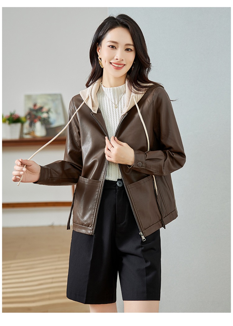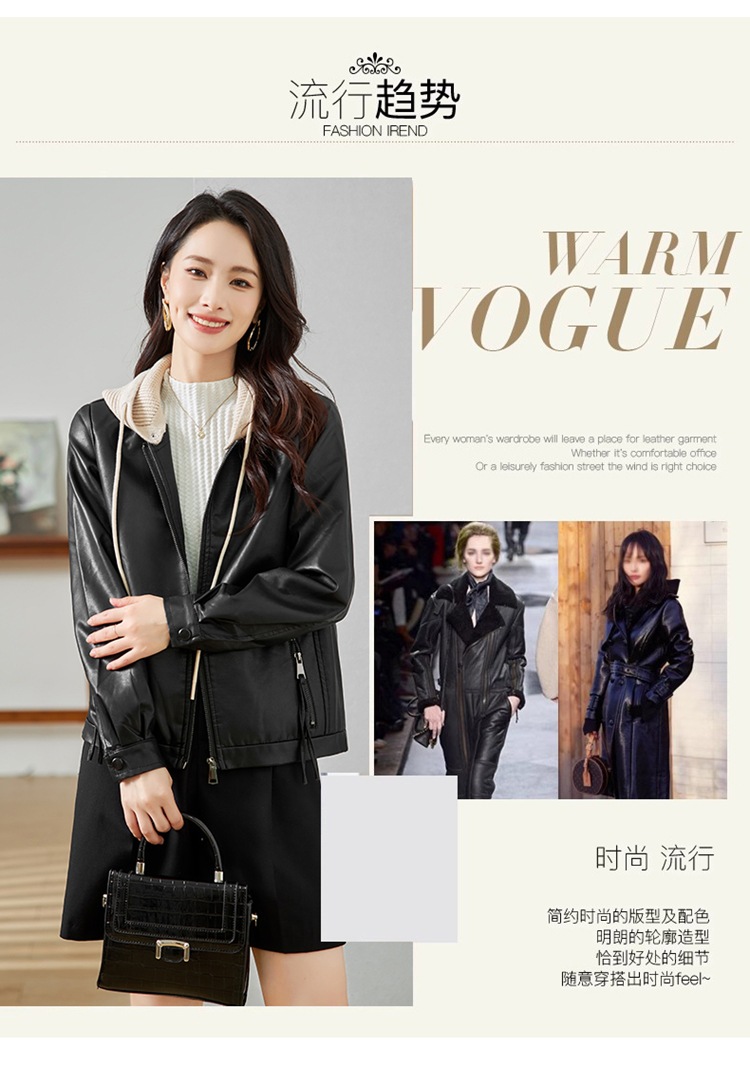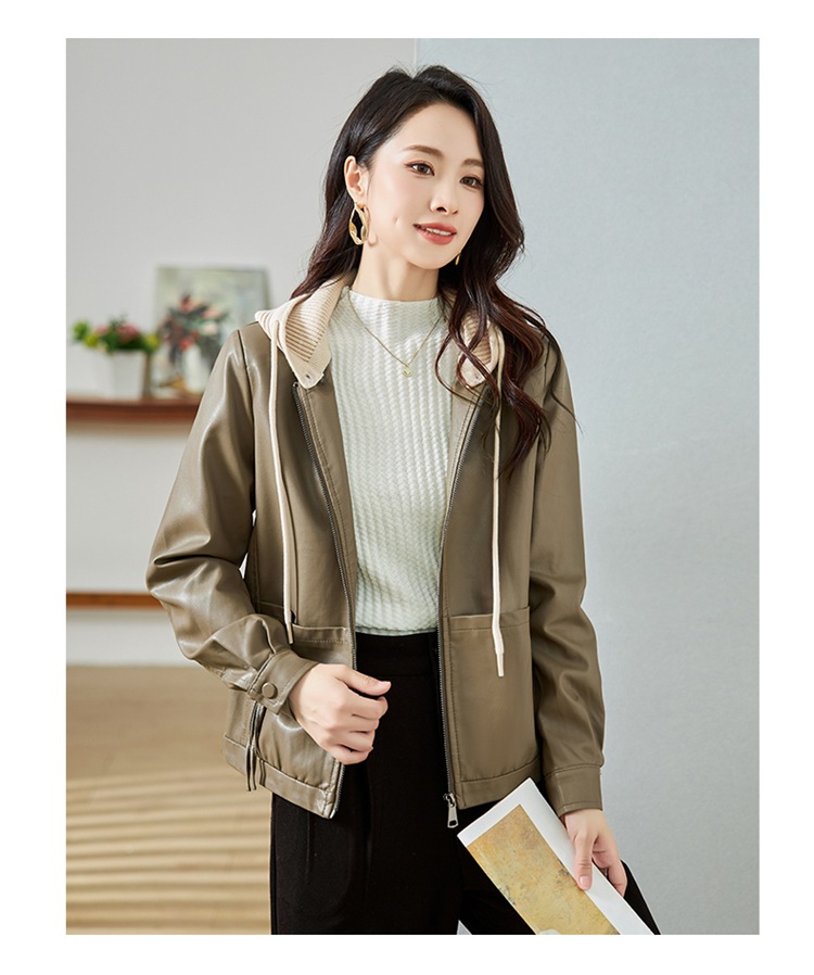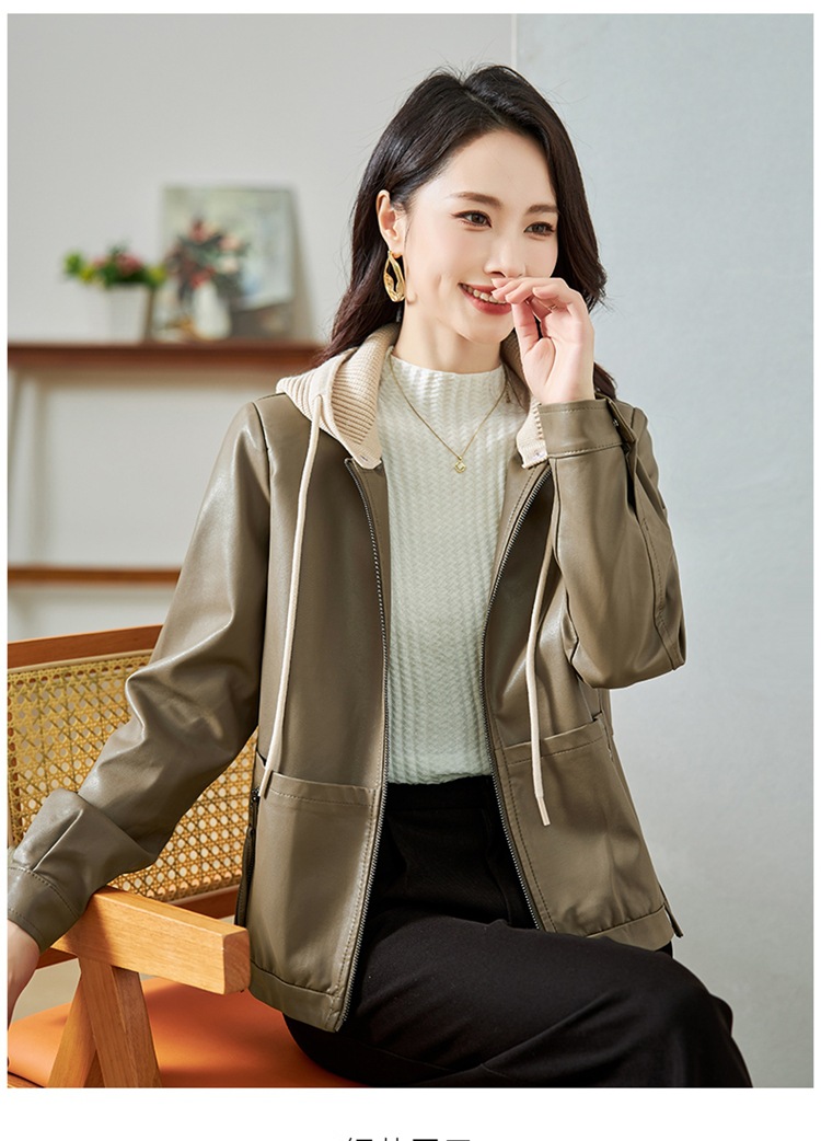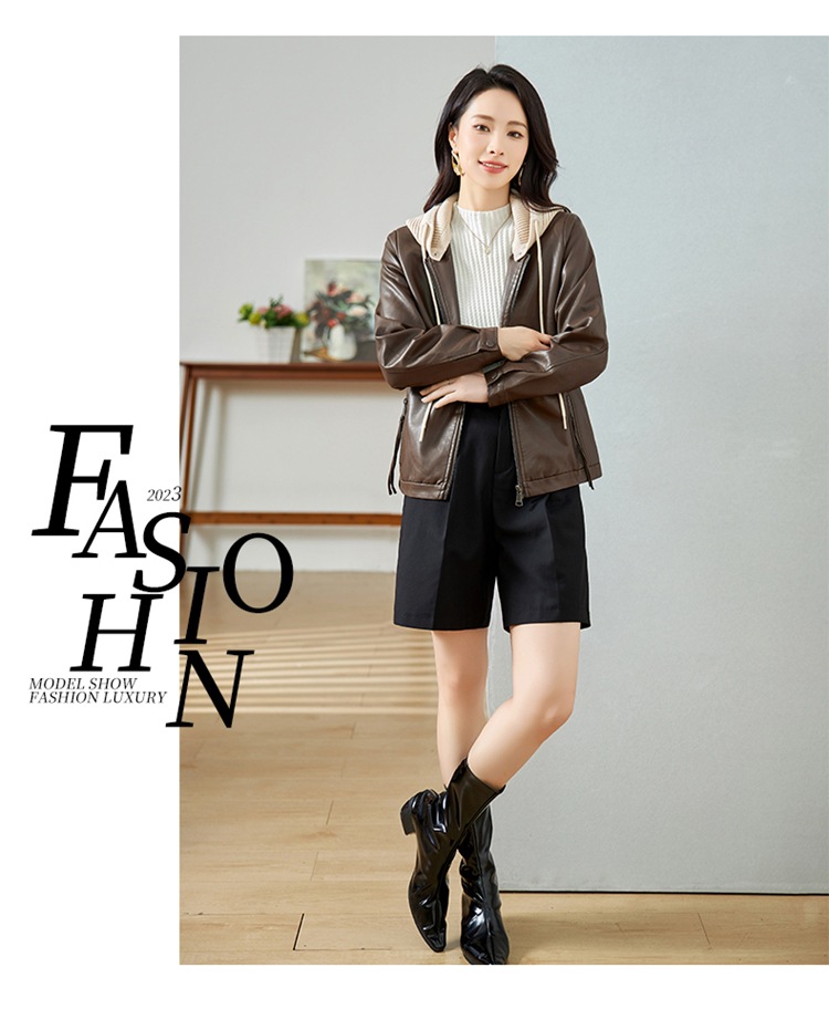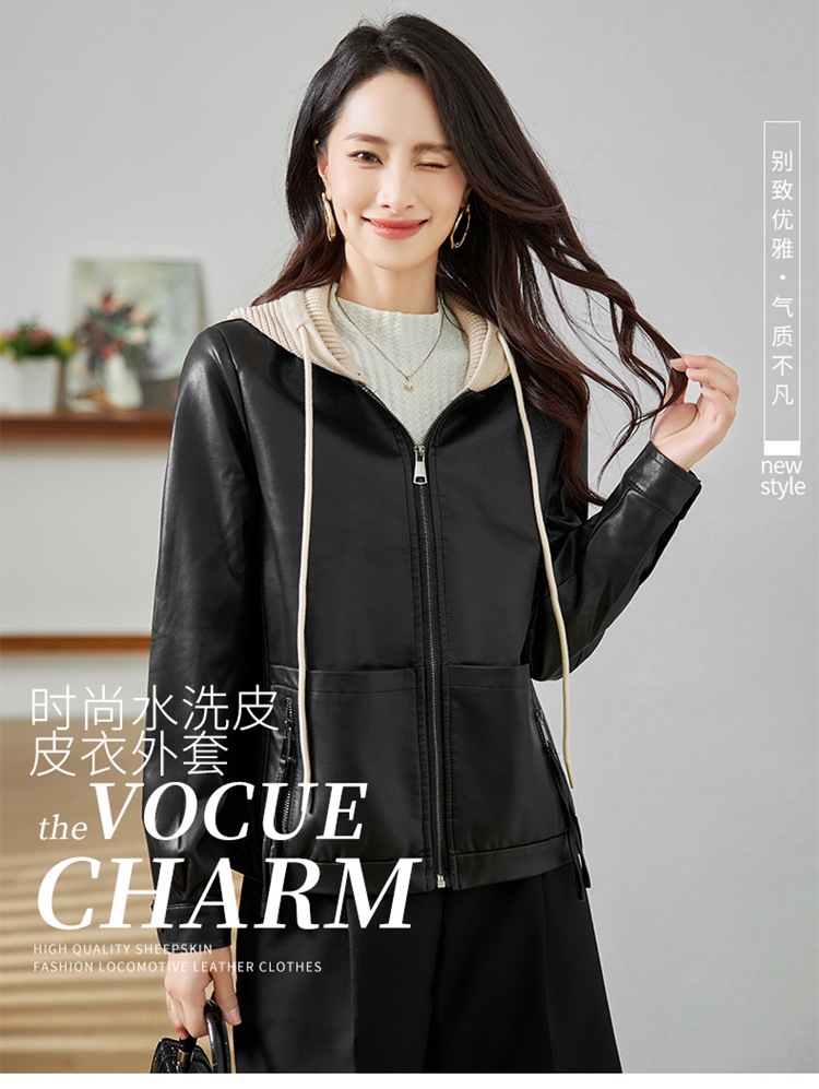 24 신상 탈부착 가능한 니트 후드 가죽 자켓 여성용 짧은 가죽 자켓 가을 겨울 캐주얼 Pu 만능 자켓 한국 스타일스토어 가기