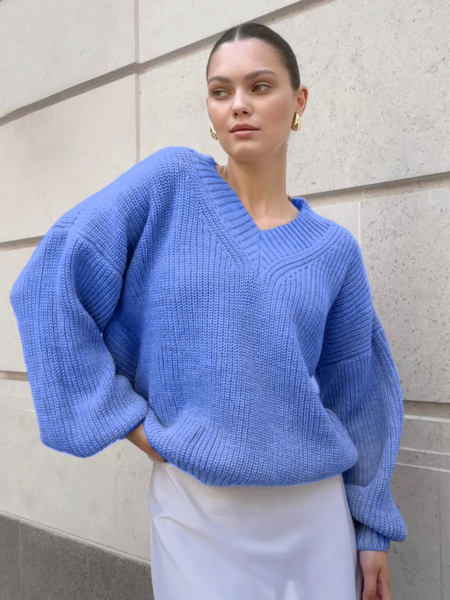 2024 국경 간 스웨터 캐주얼 풀오버 여성용 니트 따뜻한 니트 대형 프로필 V 넥 스웨터