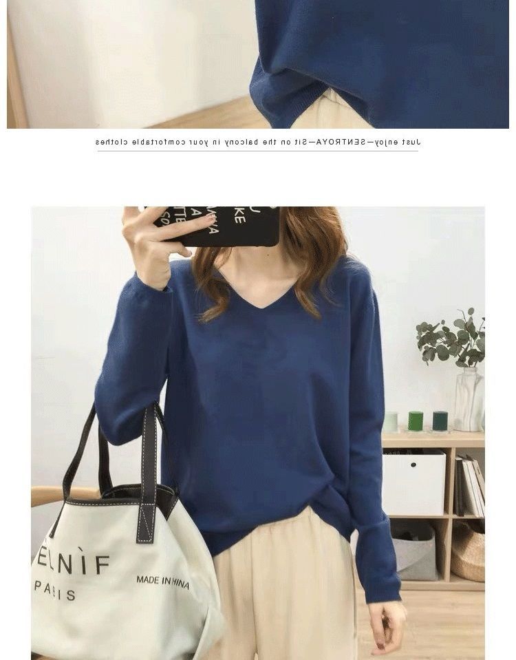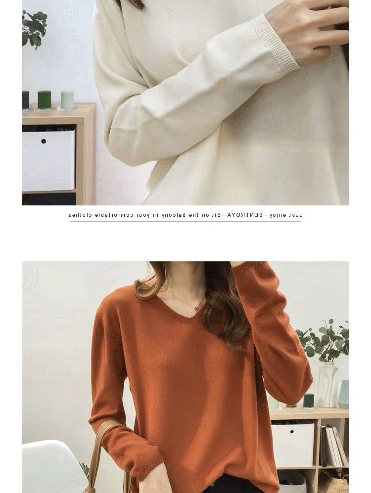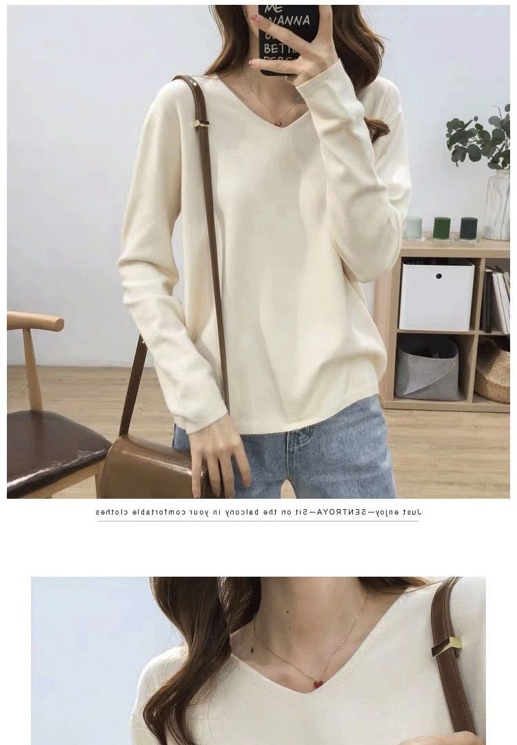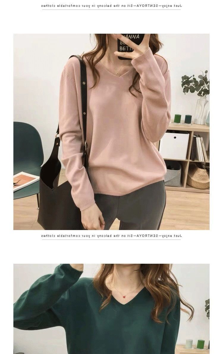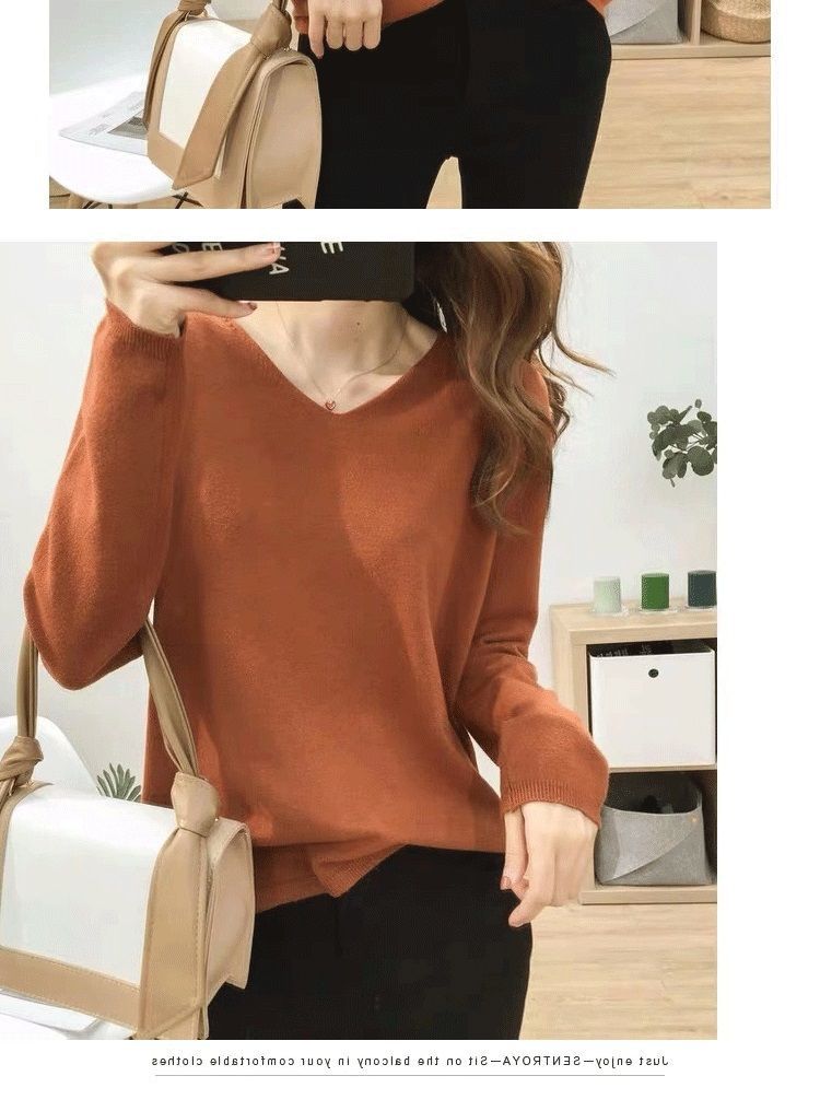 가을 브이넥 니트 여성용 가을 신상품 빅사이즈 루즈핏 슬림핏 상의 단색 이너 니트 베이스 셔츠 스웨터스토어 가기