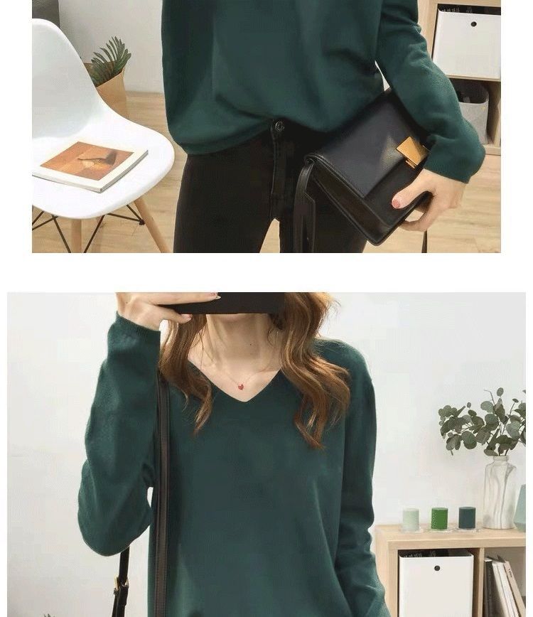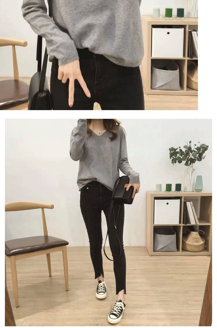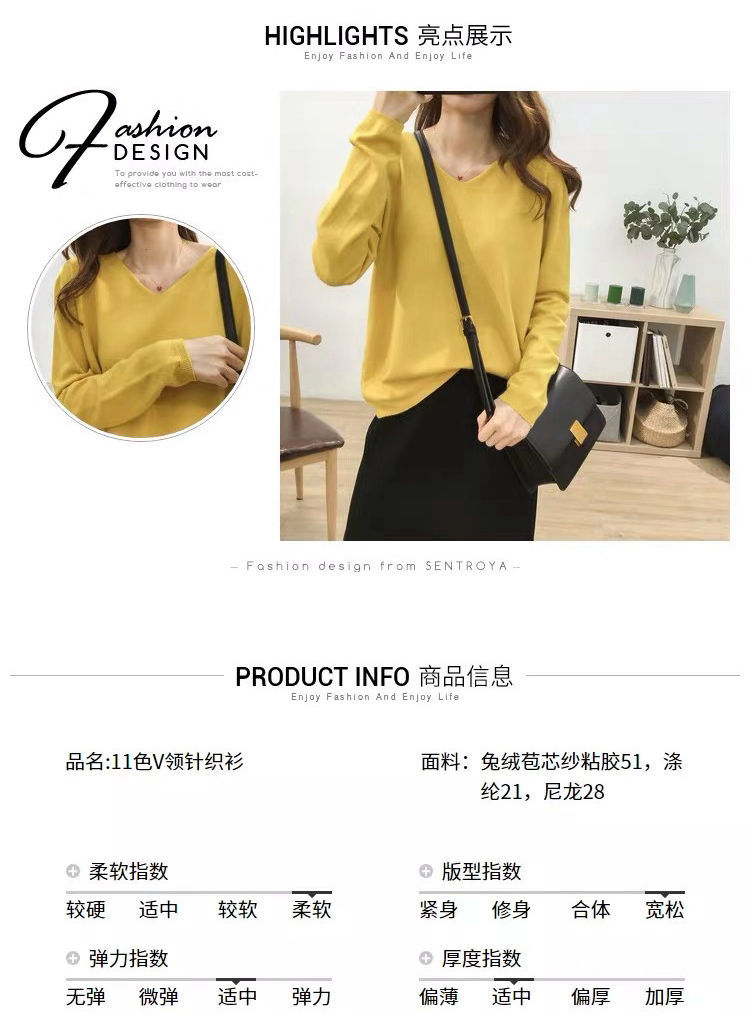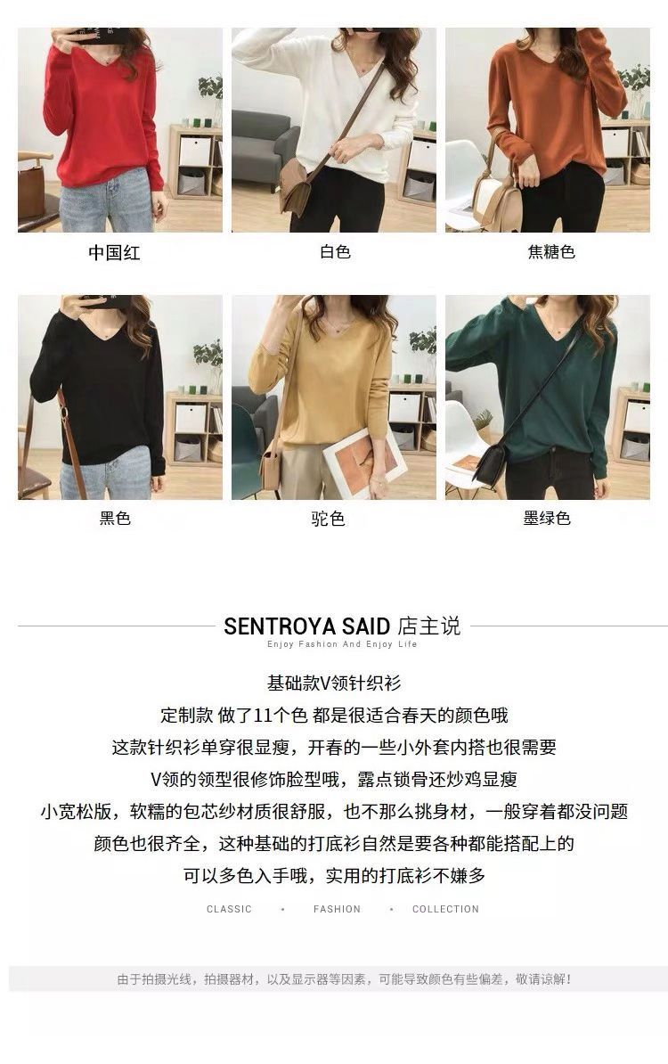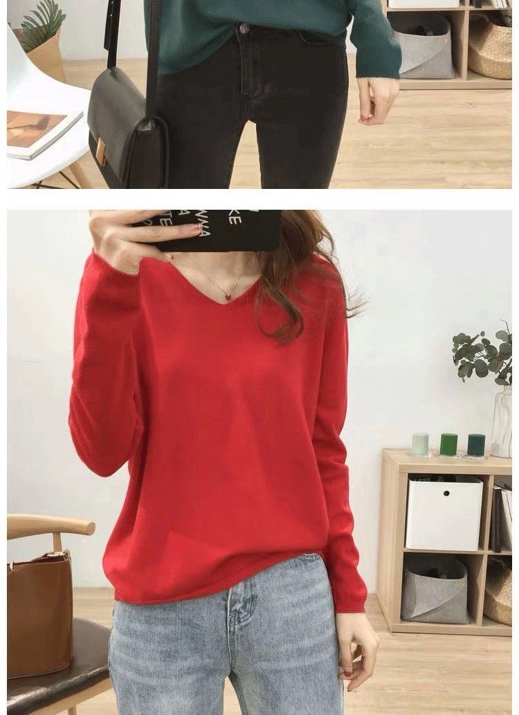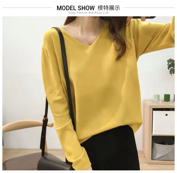 가을 브이넥 니트 여성용 가을 신상품 빅사이즈 루즈핏 슬림핏 상의 단색 이너 니트 베이스 셔츠 스웨터스토어 가기
