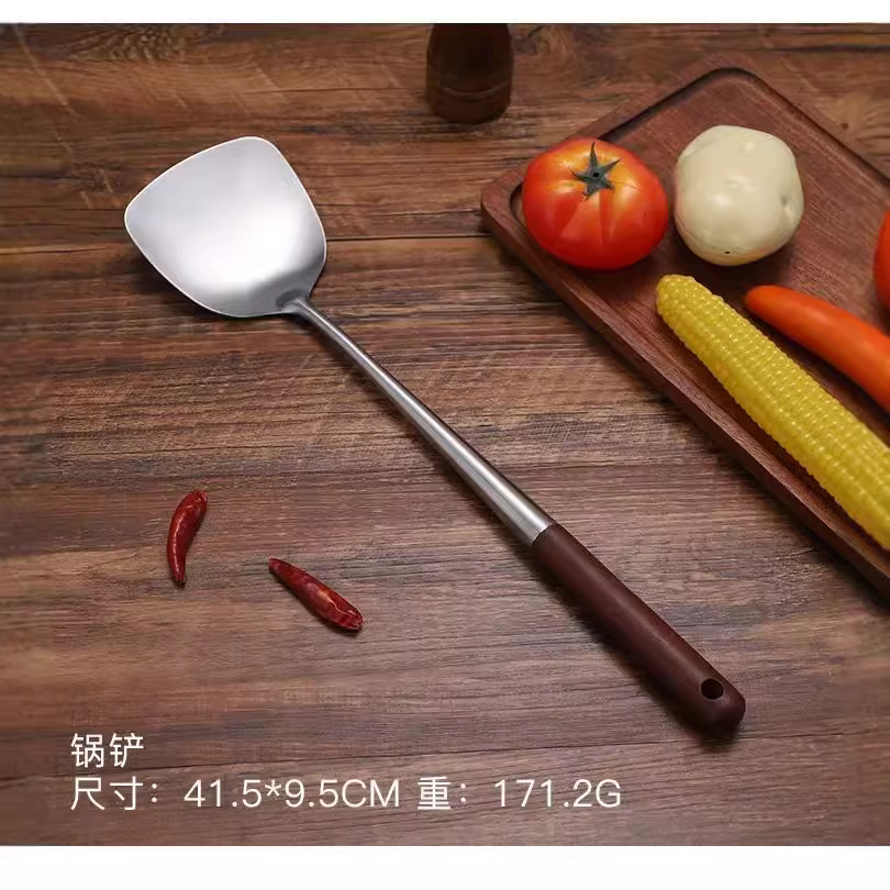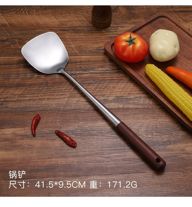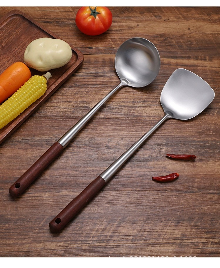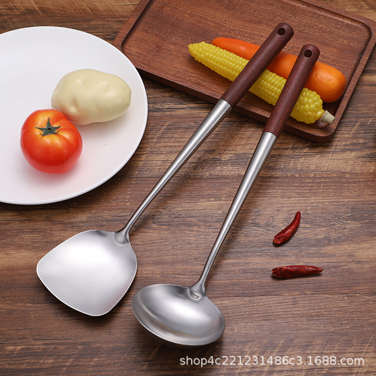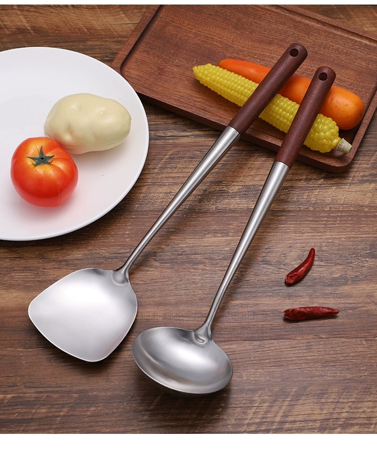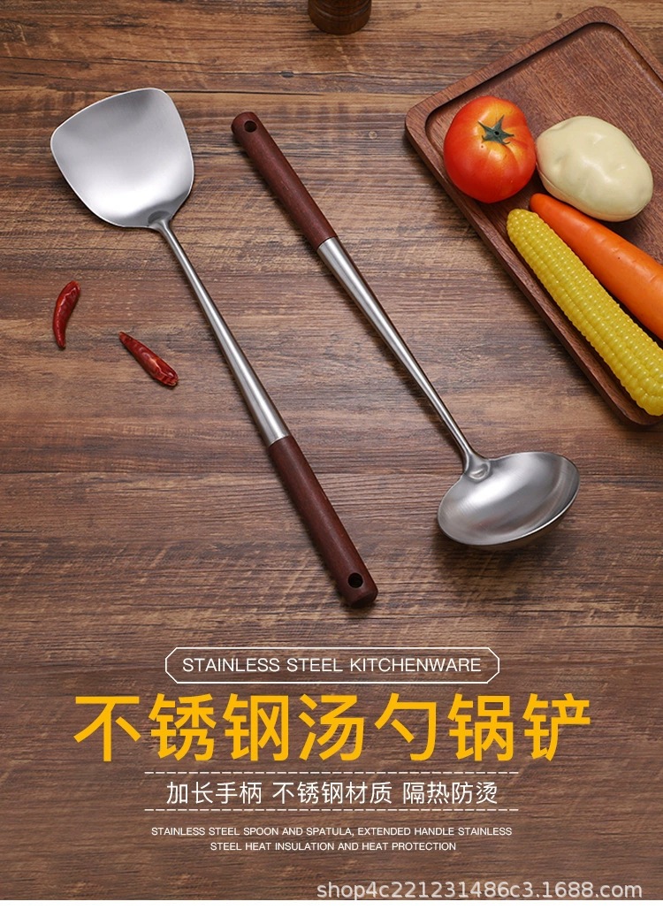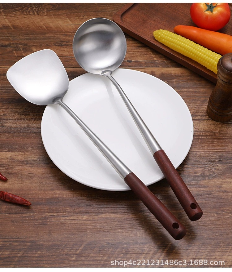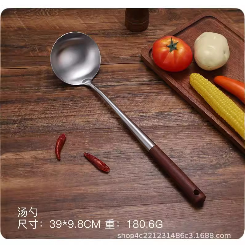 도매 스테인레스 스틸 주걱 수프 숟가락 나무 손잡이 주걱 가정 요리 주걱 작은 요리사 요리 주걱 주방 도구스토어 가기