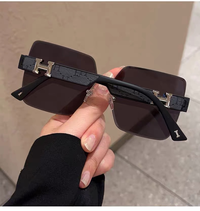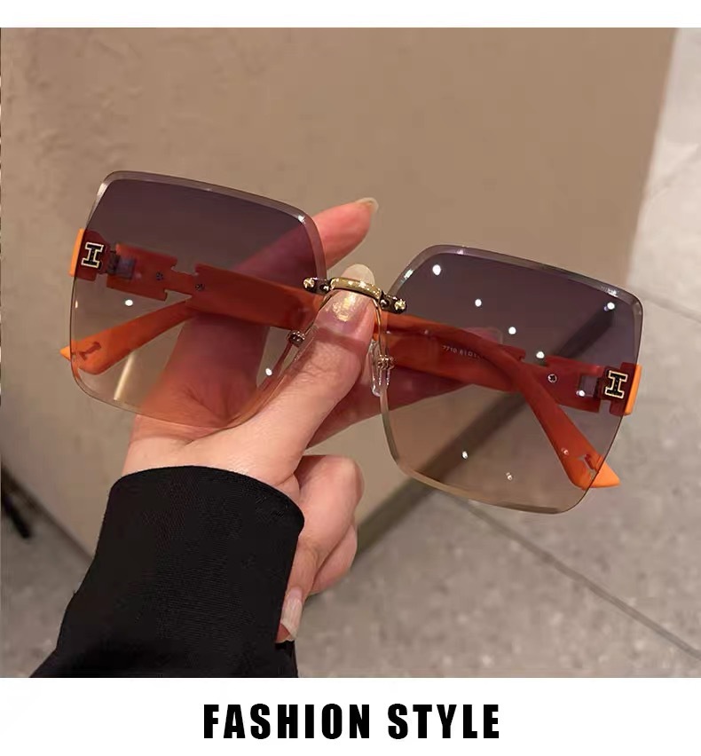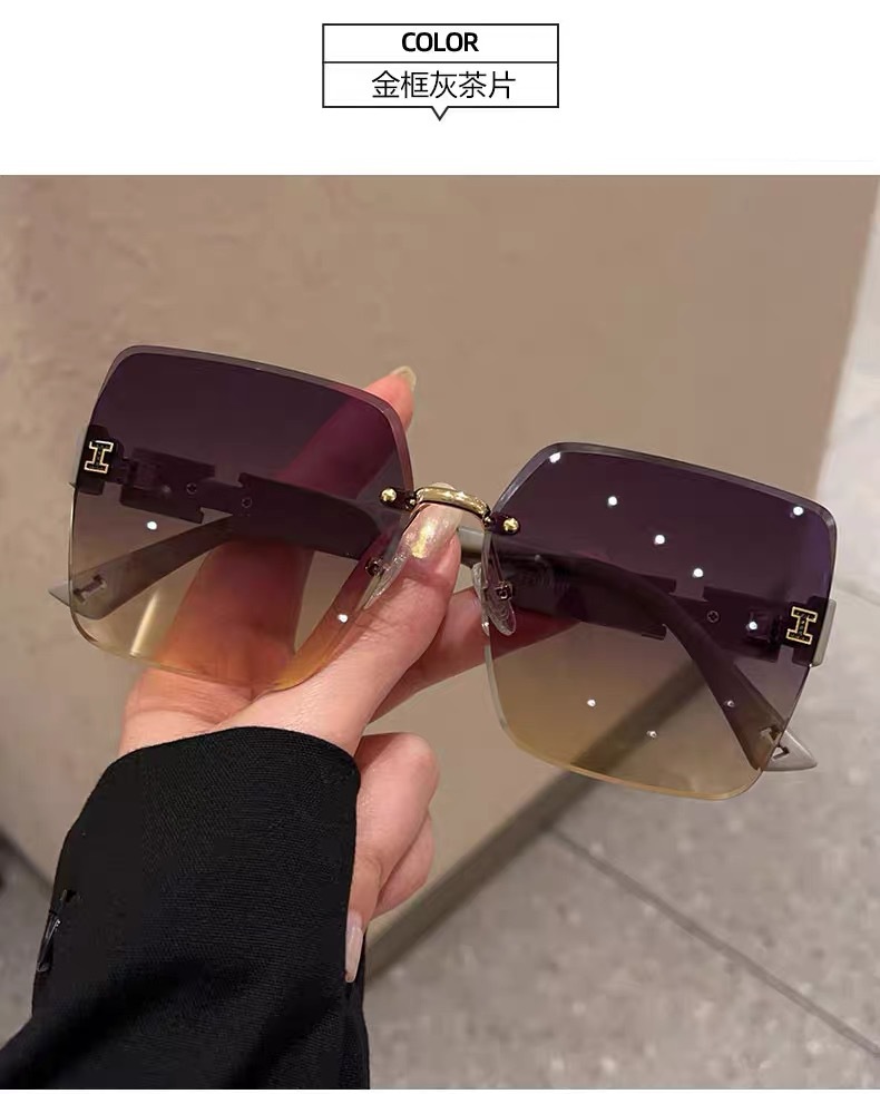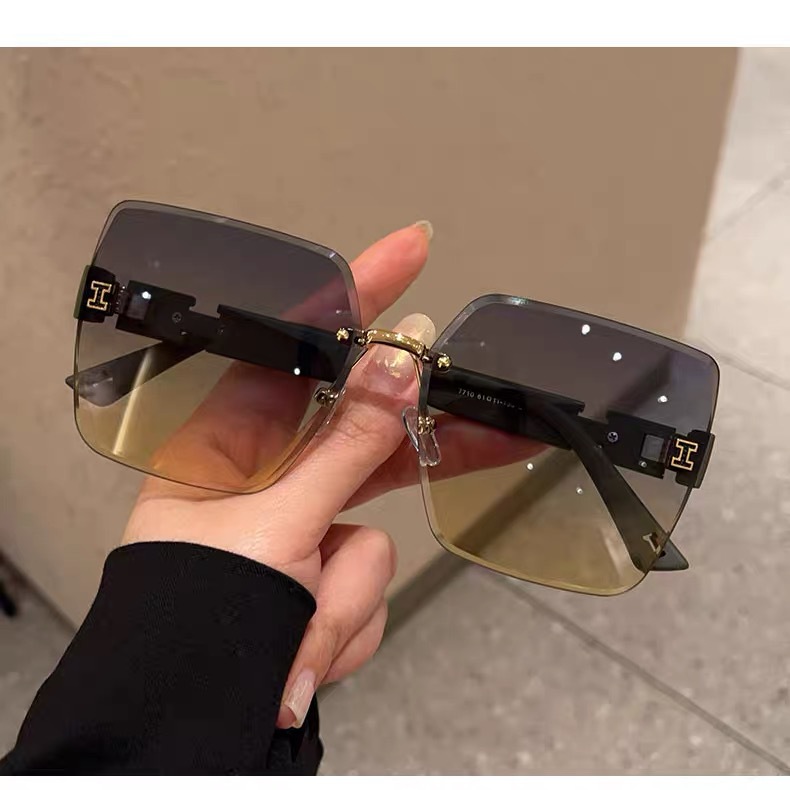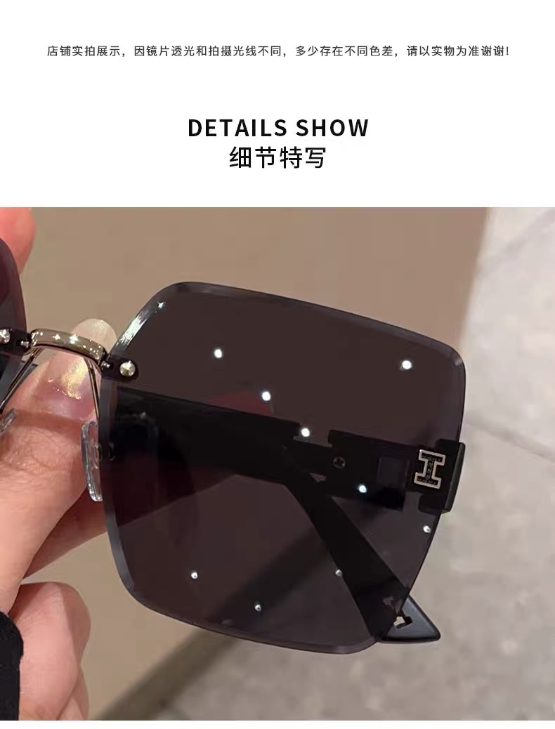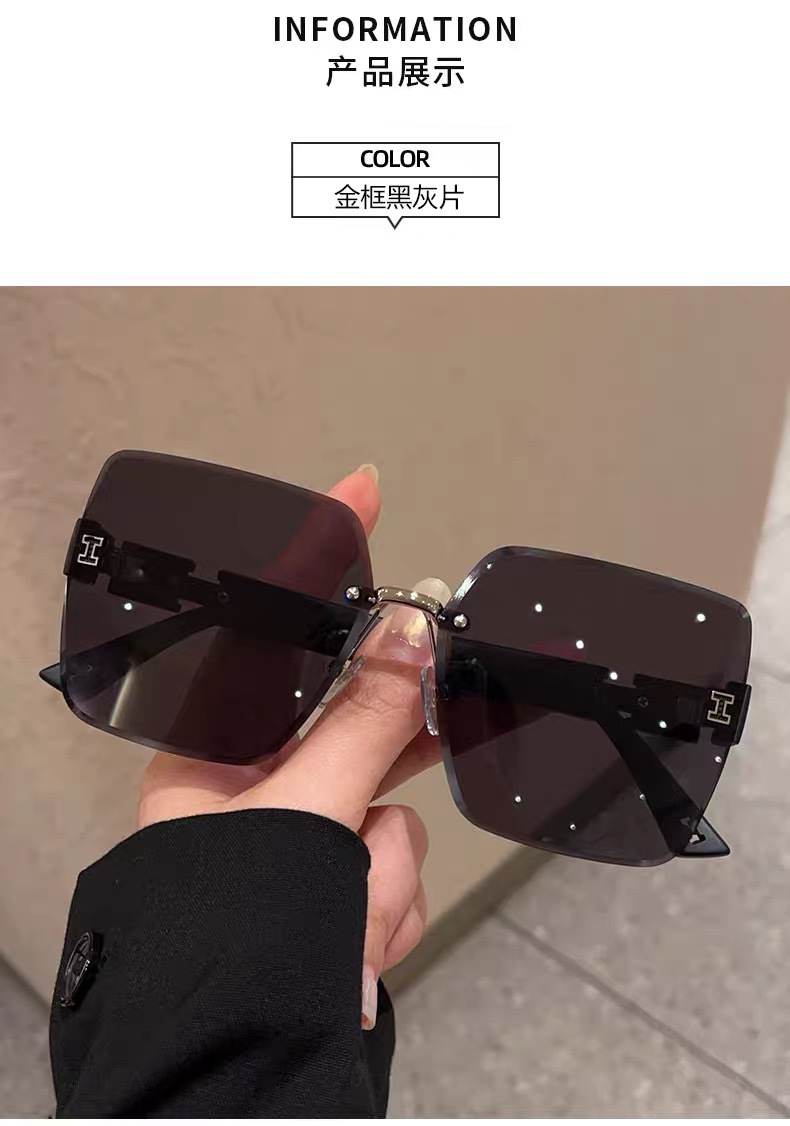 얼굴이 큰 여성을 위한 하이엔드 사각형 프레임리스 엣지컷 선글라스, 인터넷 연예인 개성, 트렌디하고 쿨한 선글라스, 슬리밍 패션 안경스토어 가기