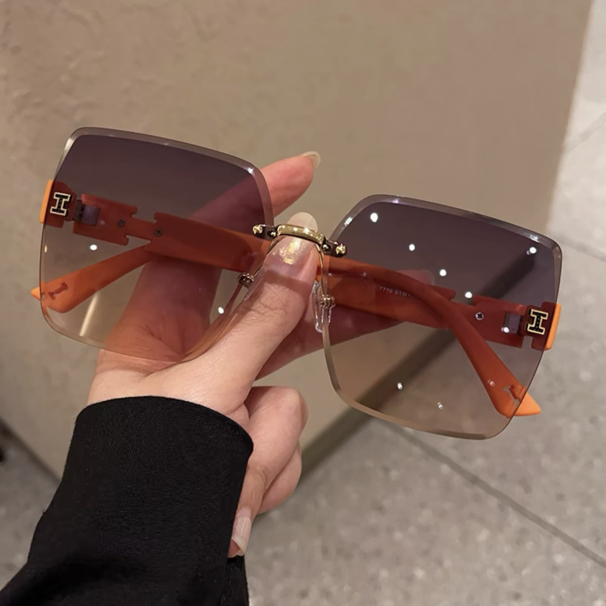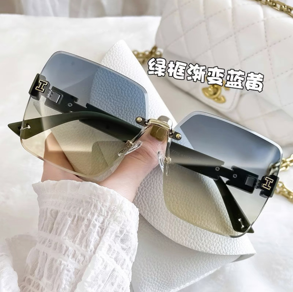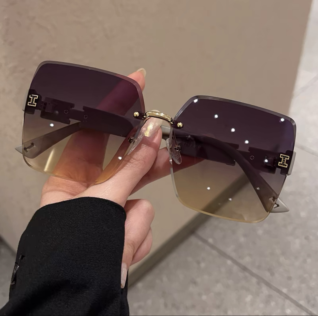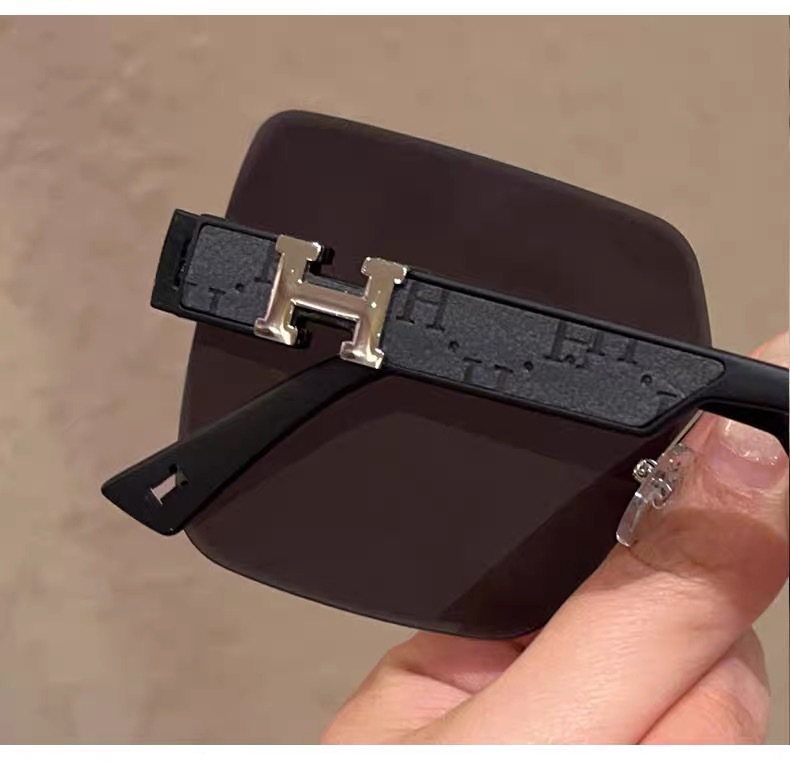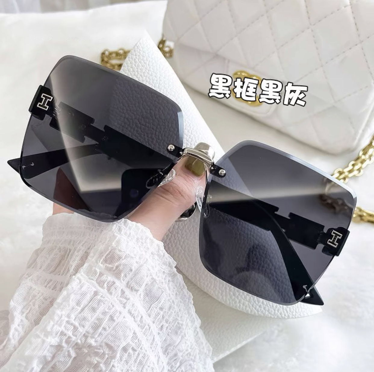 얼굴이 큰 여성을 위한 하이엔드 사각형 프레임리스 엣지컷 선글라스, 인터넷 연예인 개성, 트렌디하고 쿨한 선글라스, 슬리밍 패션 안경스토어 가기