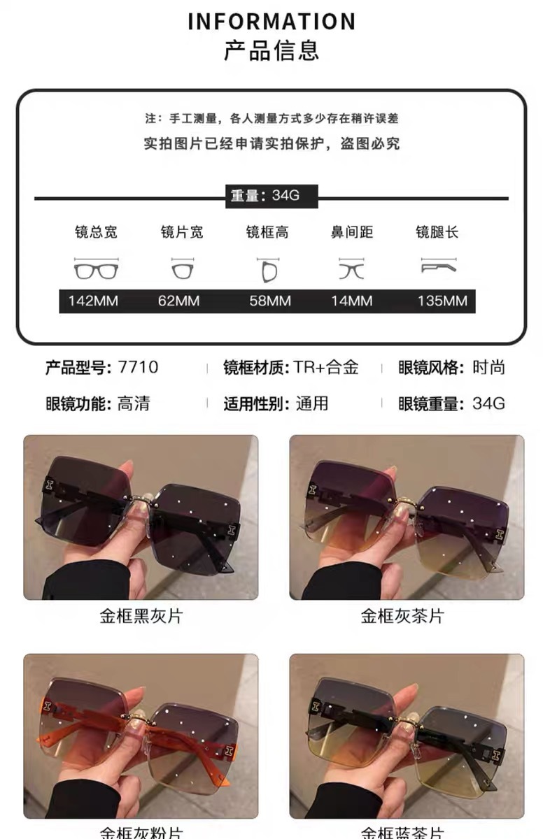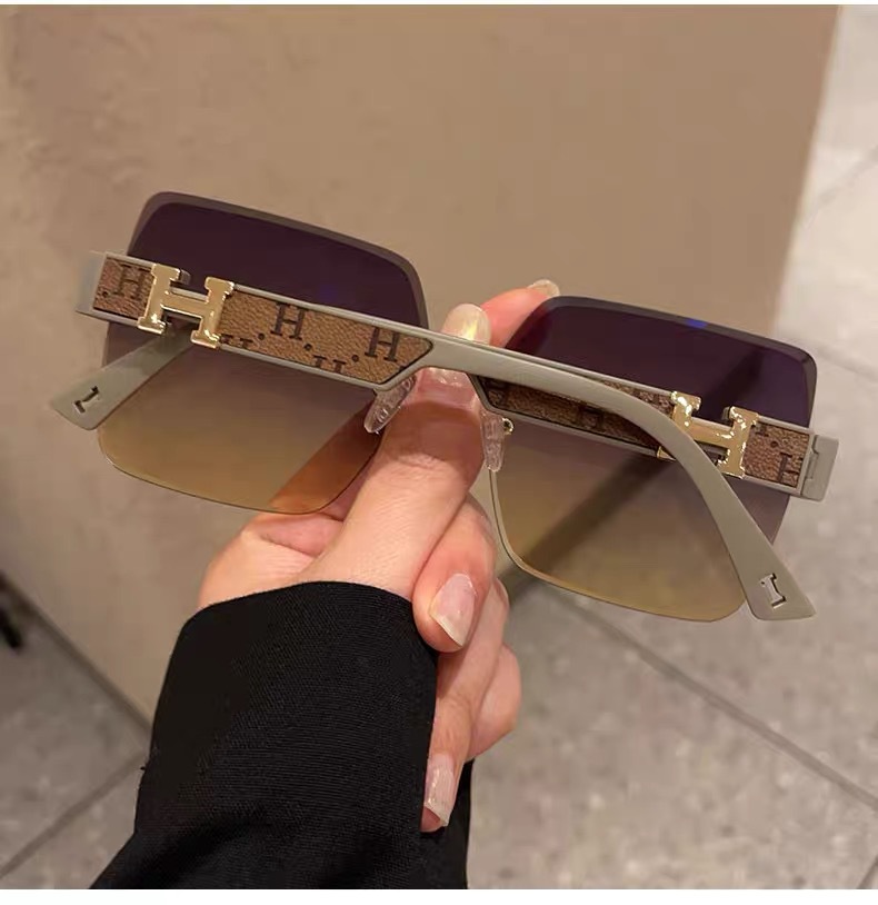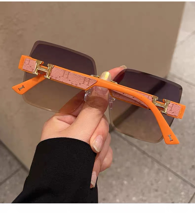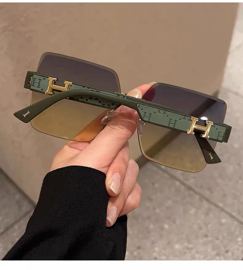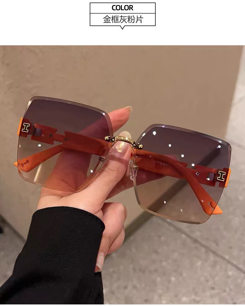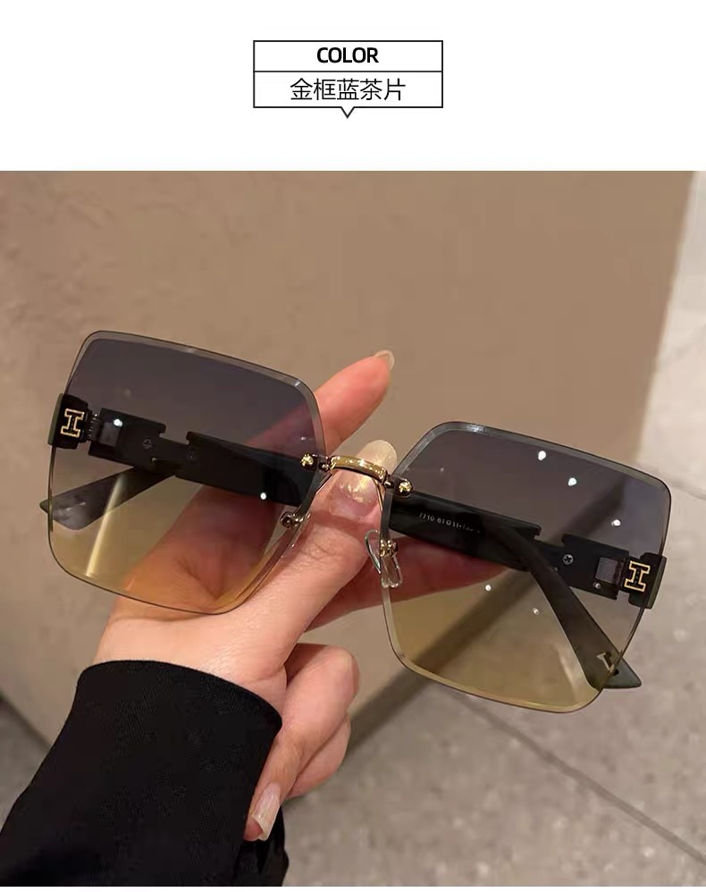 얼굴이 큰 여성을 위한 하이엔드 사각형 프레임리스 엣지컷 선글라스, 인터넷 연예인 개성, 트렌디하고 쿨한 선글라스, 슬리밍 패션 안경