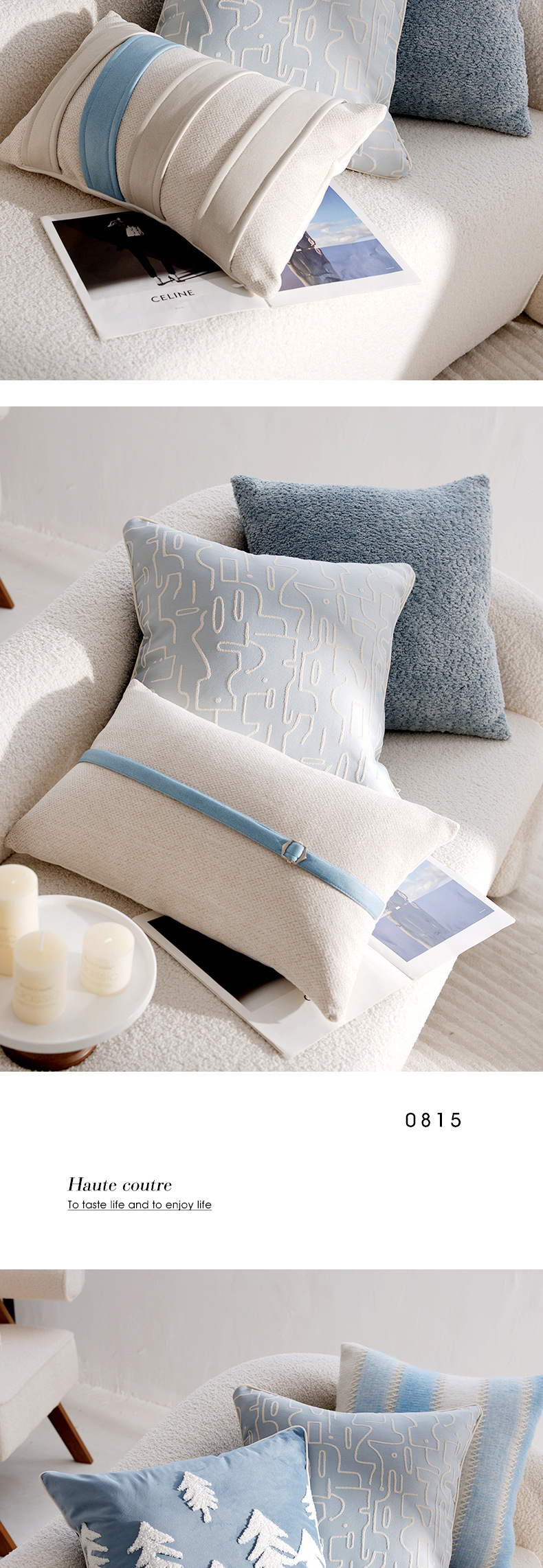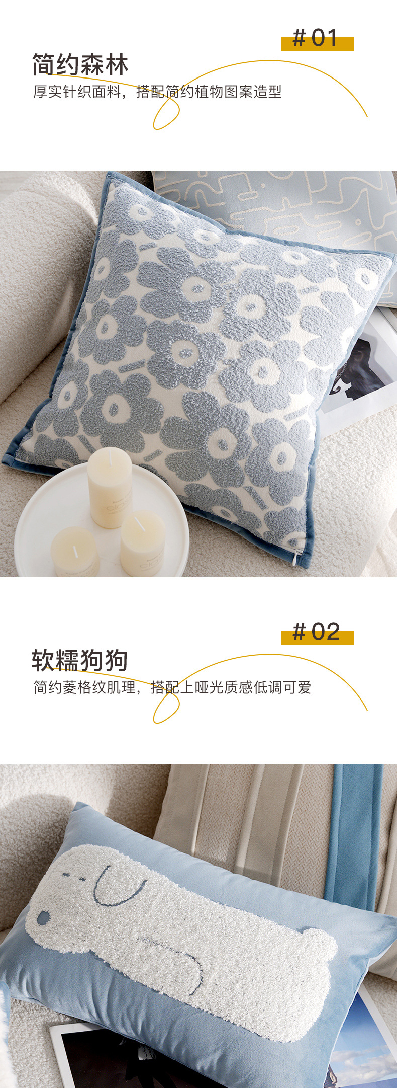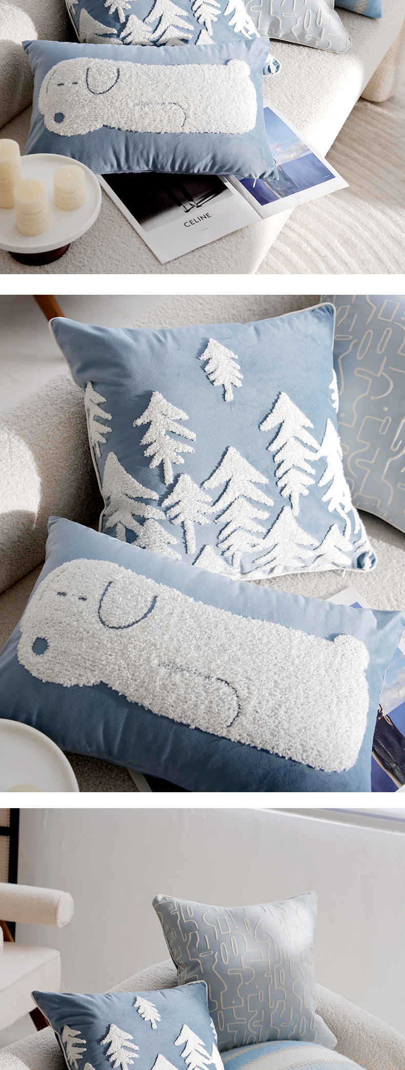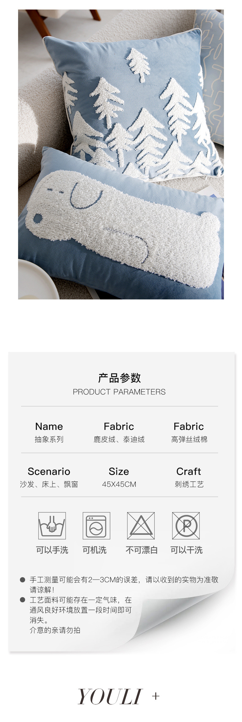 • 라이트 블루 포레스트 스퀘어 자수 45x45cm