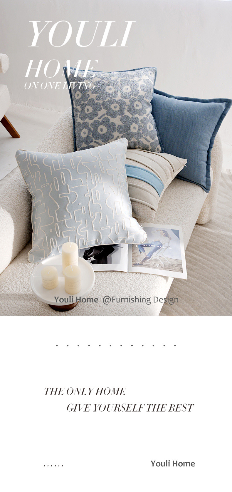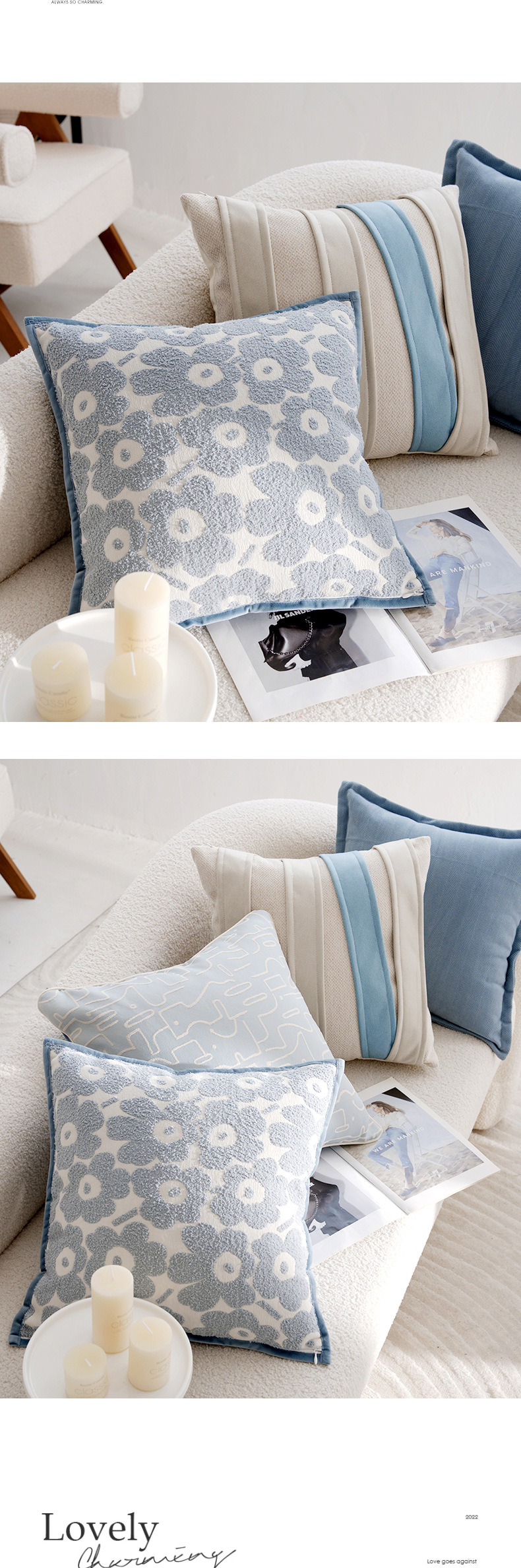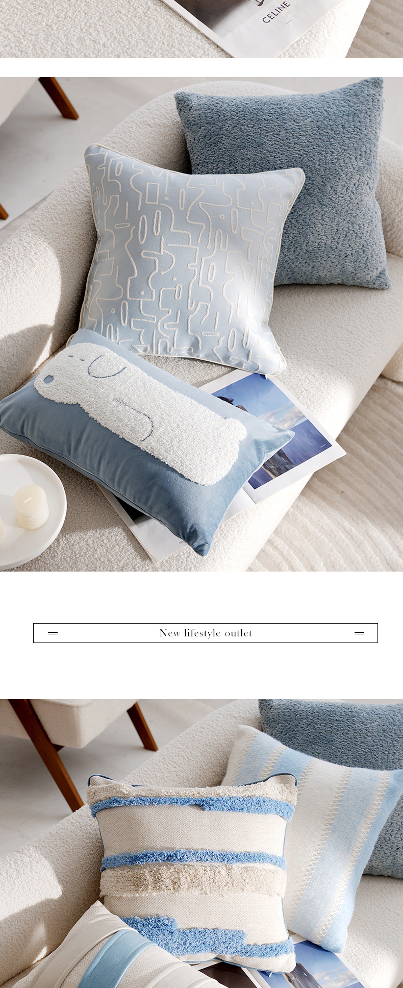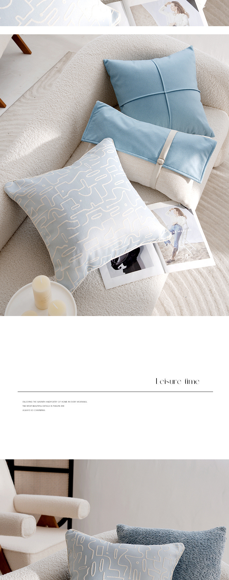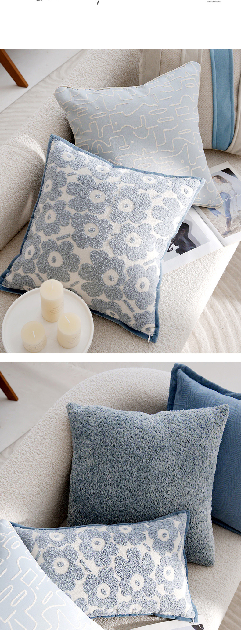 • 라이트 블루 헤링본 패턴 밑단 스퀘어 45x45cm