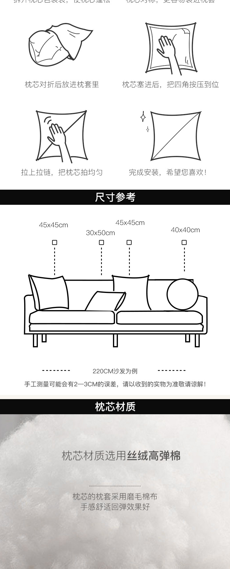 • 베갯잇 + 베개 코어
