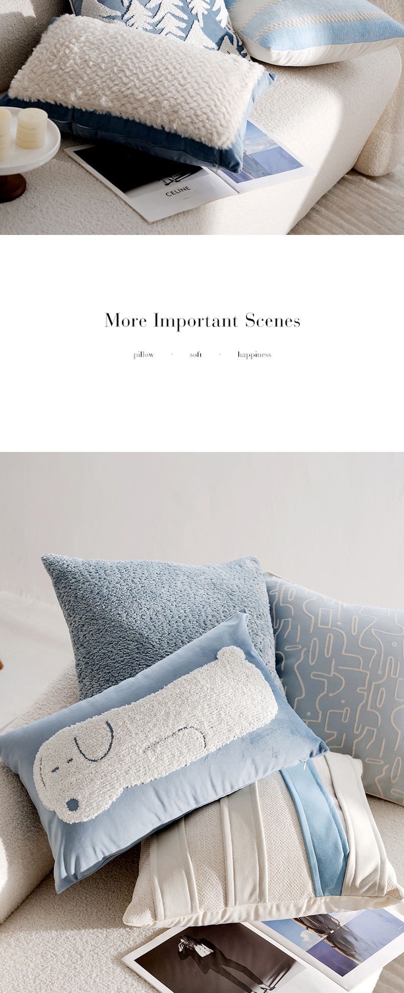중간 고대 간단한 만화 어린이 크림 블루 베개 쿠션 소파 베이 창 베개 케이스 침대 베개 코어스토어 가기