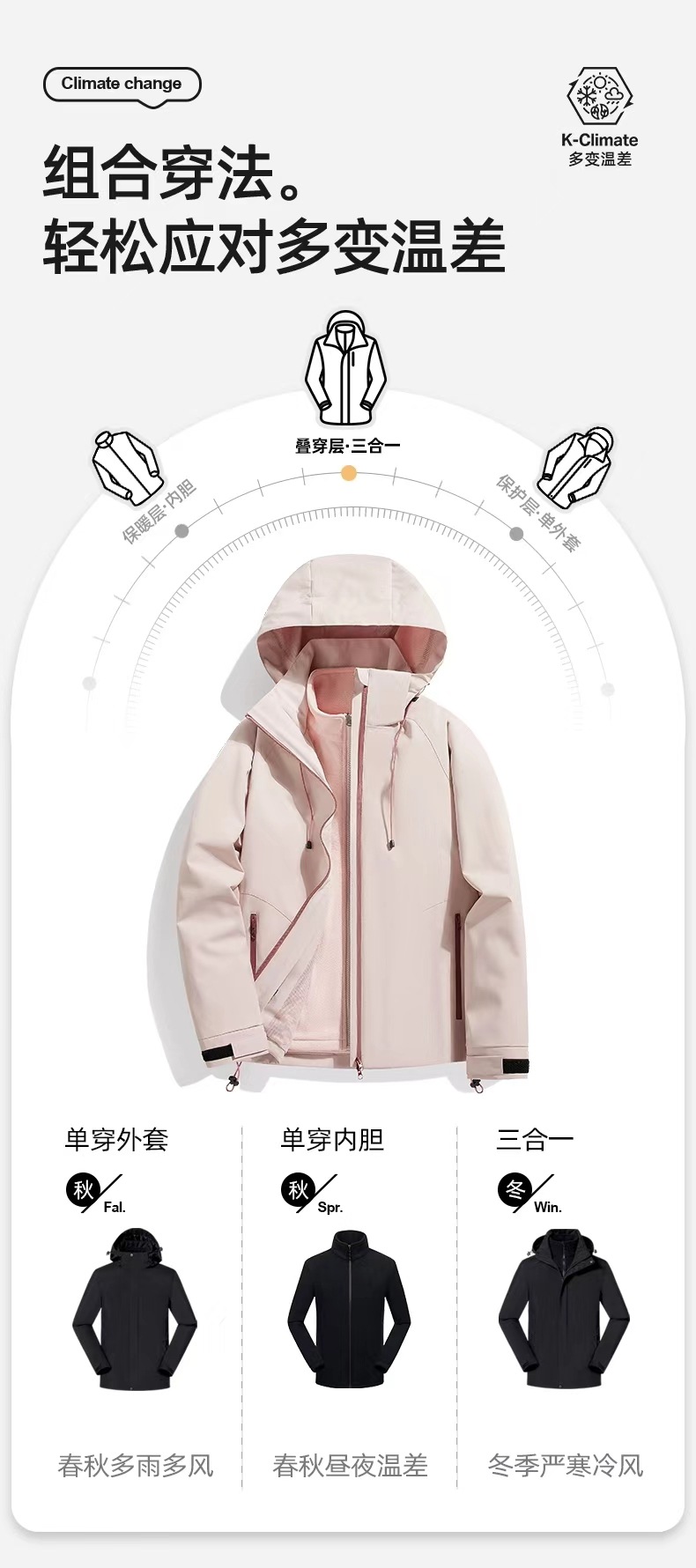 야외 재킷 남자 여자 가을 겨울 3-in-1 0.05kg 조각 세트 따뜻한 방풍 발수 재킷 코트 도매 내한성