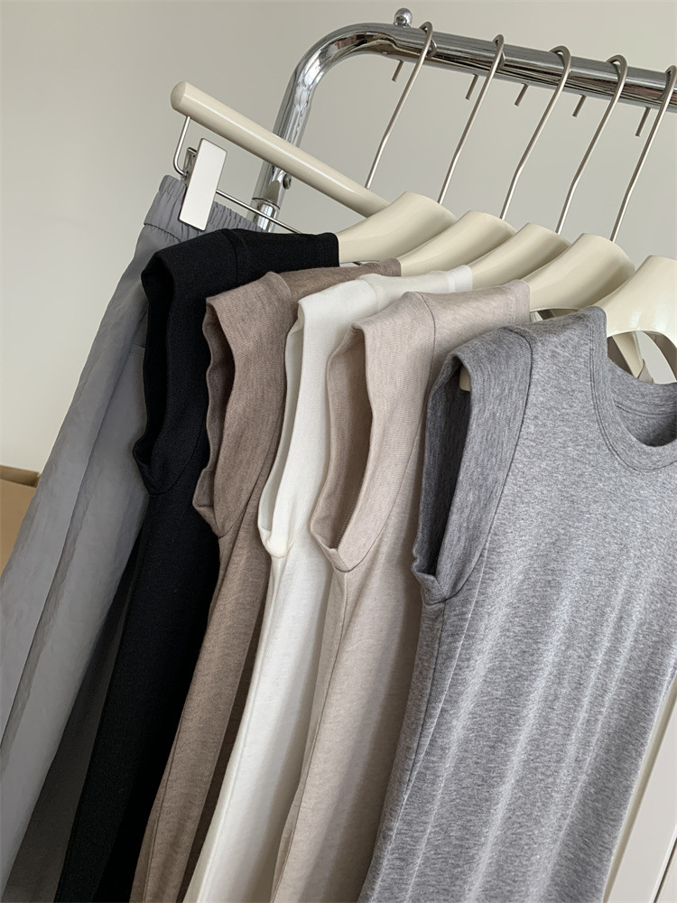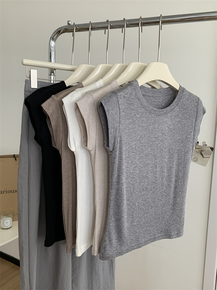 여름 새로운 라운드 넥 작은 플라잉 슬리브 티셔츠 소녀 얇은 슬림 핏 슬리밍 어깨 작은 짧은 소매베이스 탑
