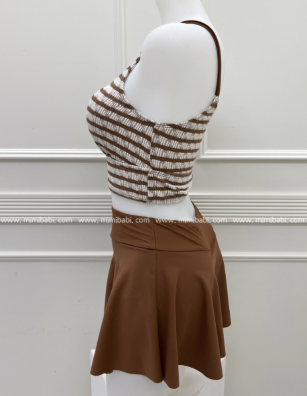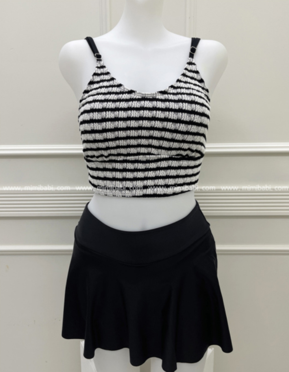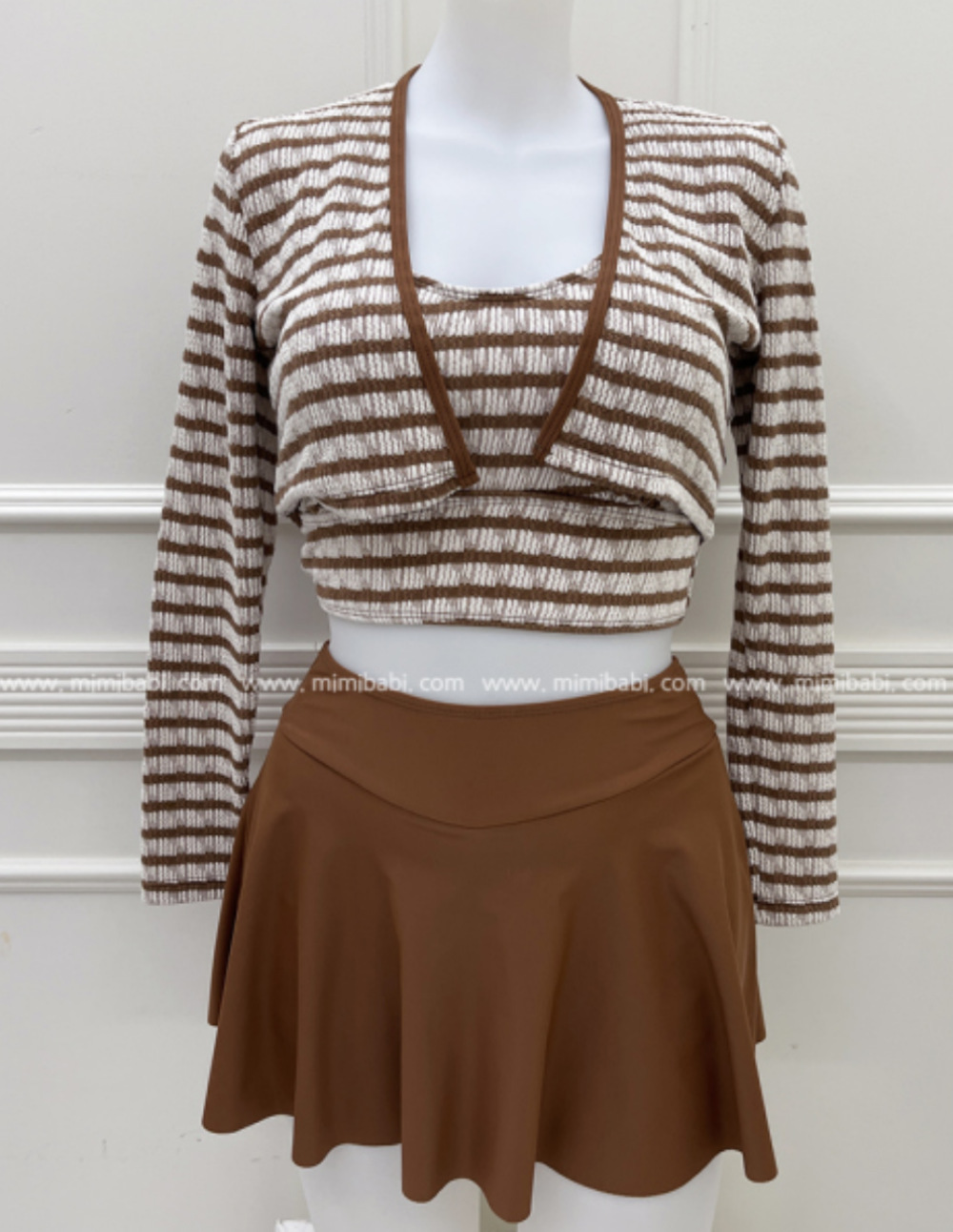 새로운 인터넷 동향 수영복 여성의 높은 허리 배꼽 덮음 줄무늬 긴 소매 태양 보호 고급 감각 보수적 분할 스커트 3 피스 세트스토어 가기