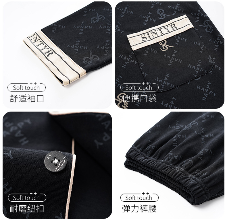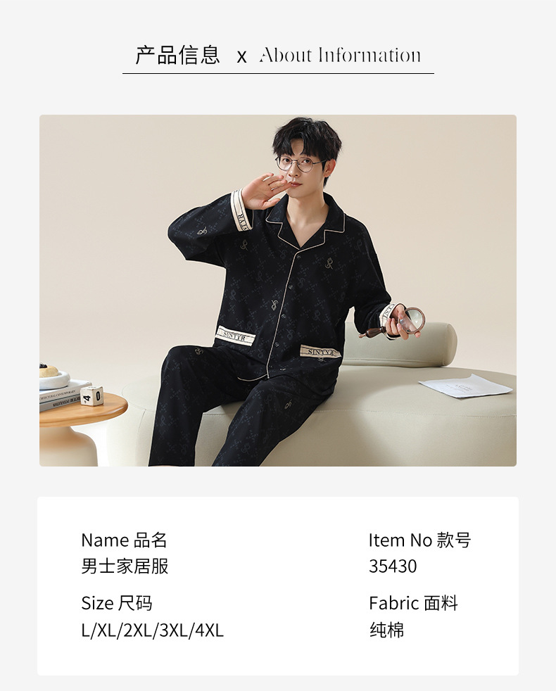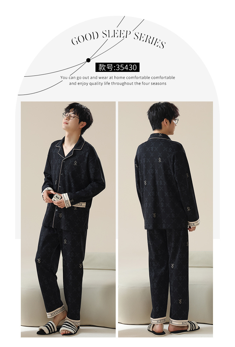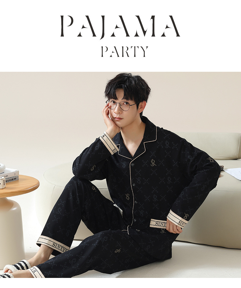 남자 잠옷 봄과 가을 니트 코튼 긴팔 카디건 세트 간단한 고급 청소년 느슨한 플러스 사이즈 홈 옷스토어 가기