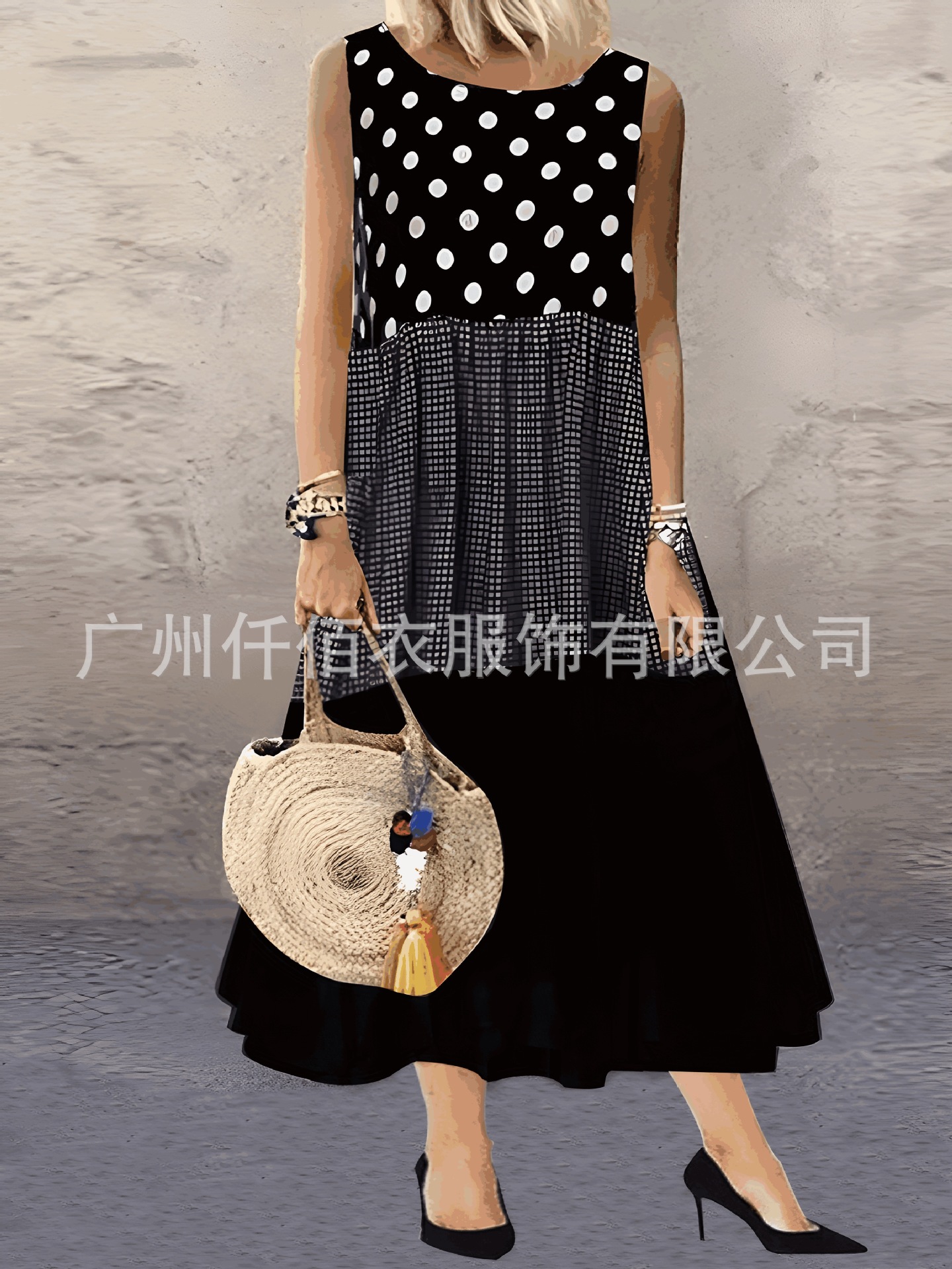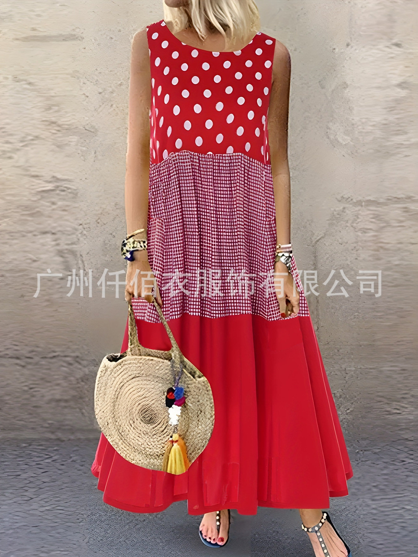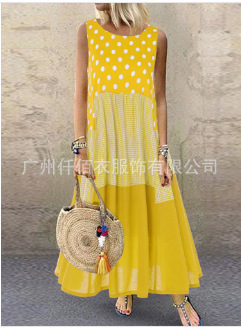 국경 간 대외 무역 2024 Amazon AliExpress는 민소매 인쇄 여름 둥근 목 원피스 여성 의류를 기원합니다