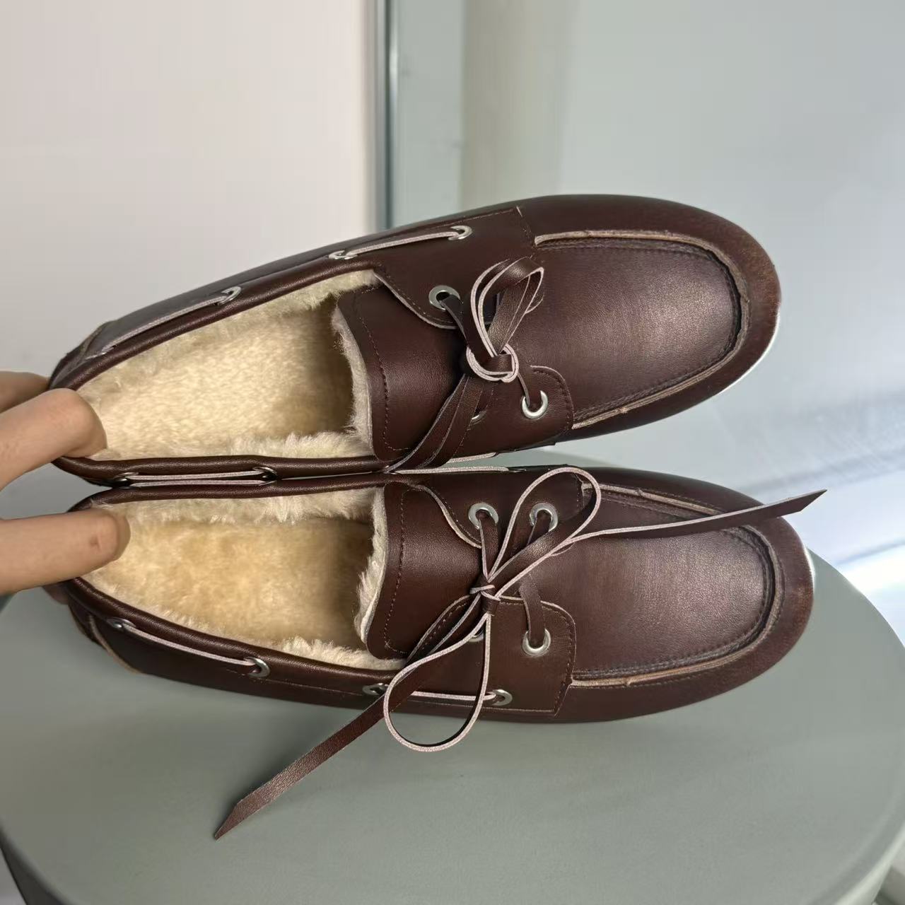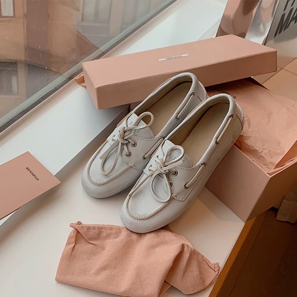 Guopeijia~영국 스타일의 디스트레스드 레이스업 소프트솔 로퍼의 소가죽 버전, 여성용 레트로 슬립온 소가죽 슈즈스토어 가기