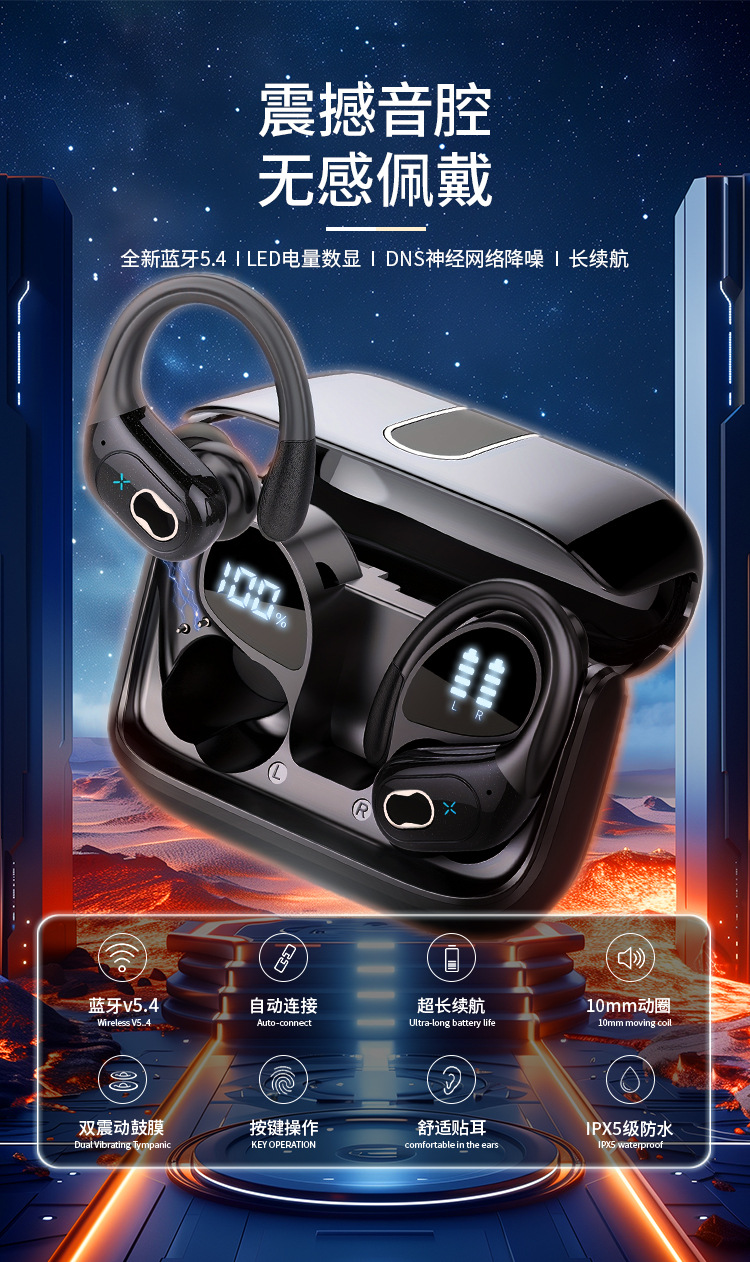 새로운 디지털 디스플레이 긴 내구성 방수 개인 모델 무선 헤드셋 HD 통화 스포츠 스테레오 서라운드 사운드 블루투스 헤드셋