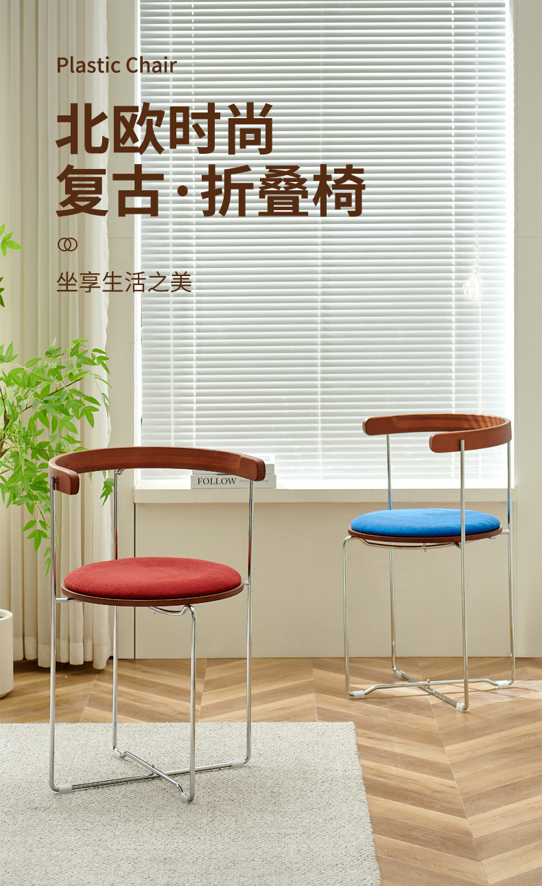 북유럽 레트로 솔리드 우드 접이식 의자 가구 작은 아파트 의자 간단한 현대 인터넷 연예인 등받이 메이크업 의자스토어 가기