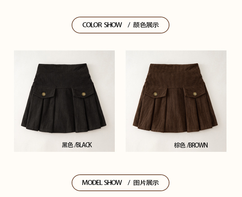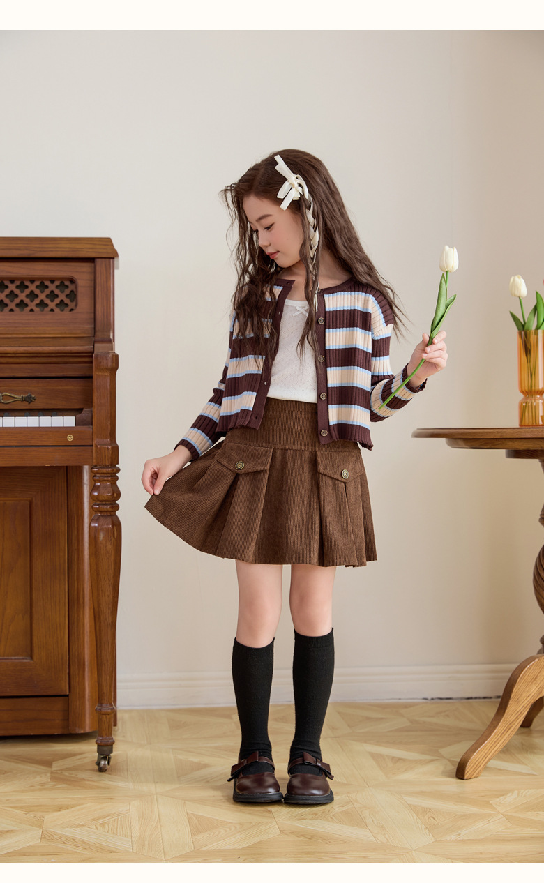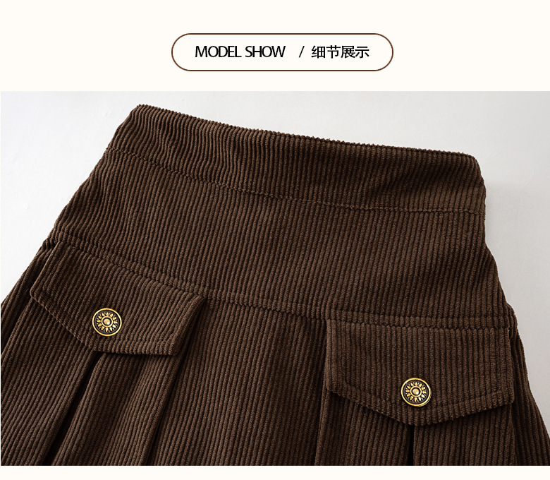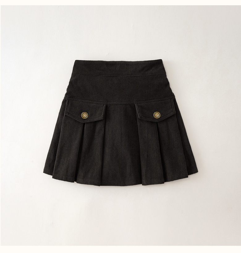 어린이 짧은 치마 2024 소녀의 가을과 겨울 치마 단색 코듀로이 문자 높은 허리 대학 스타일 주름 치마 새로운 스타일스토어 가기