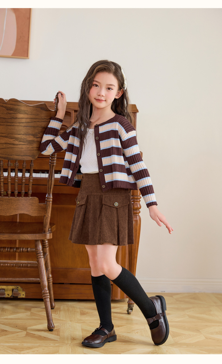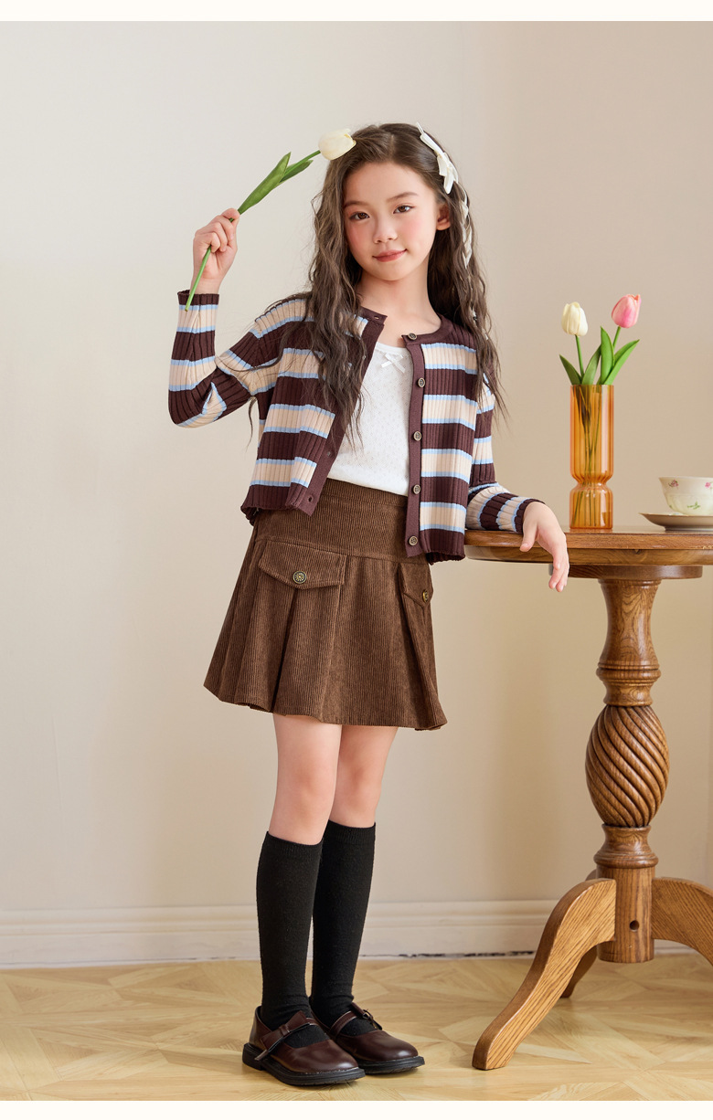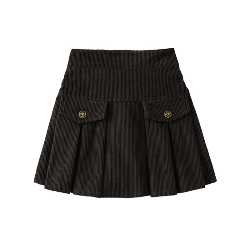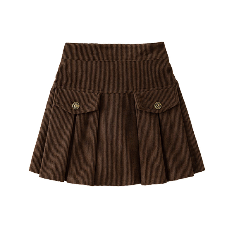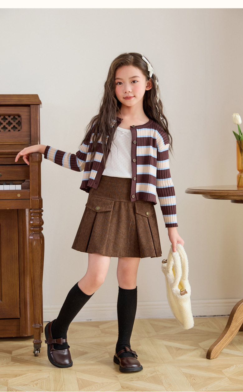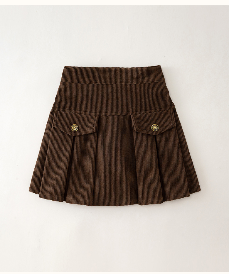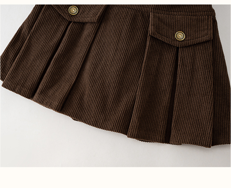 어린이 짧은 치마 2024 소녀의 가을과 겨울 치마 단색 코듀로이 문자 높은 허리 대학 스타일 주름 치마 새로운 스타일