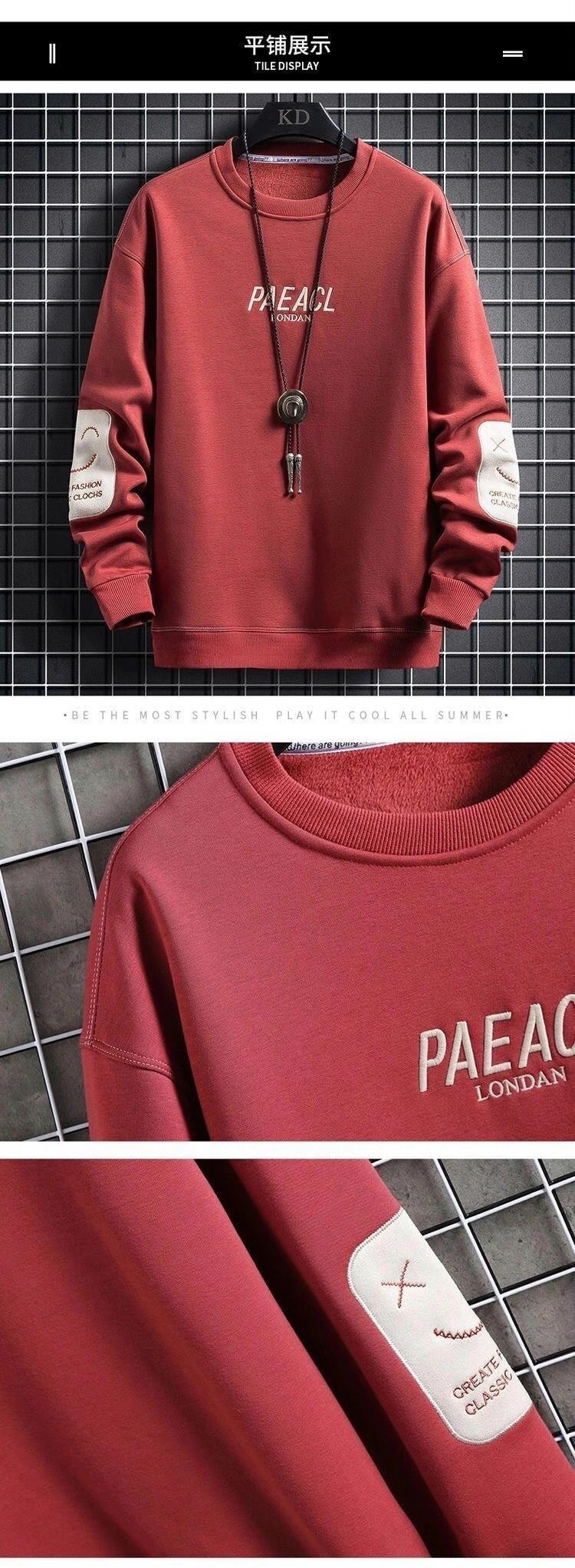 긴 소매 티셔츠 남자 가을 2024 새로운 패션 조커 크루 넥 느슨한 스웨터 남성 캐주얼 잘 생긴 탑스토어 가기