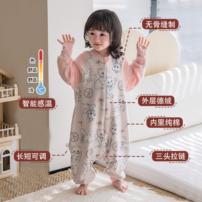 25 베이비 더블 레이어 뼈없는 독일 벨벳 분할 다리 슬리핑 백 유아 순수 코튼 가을, 겨울 안티 킥 어린이 원피스 잠옷
