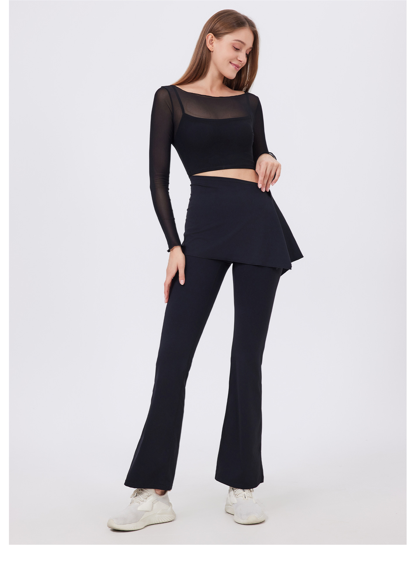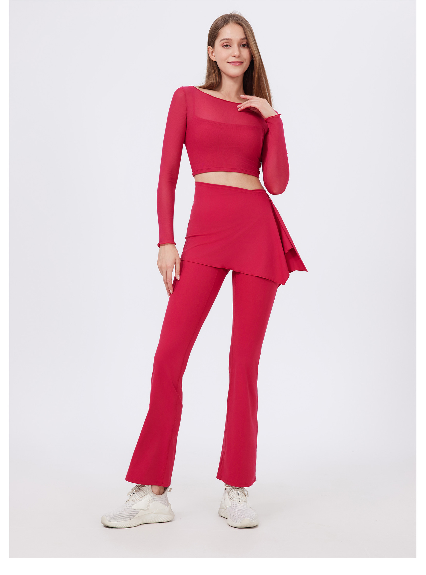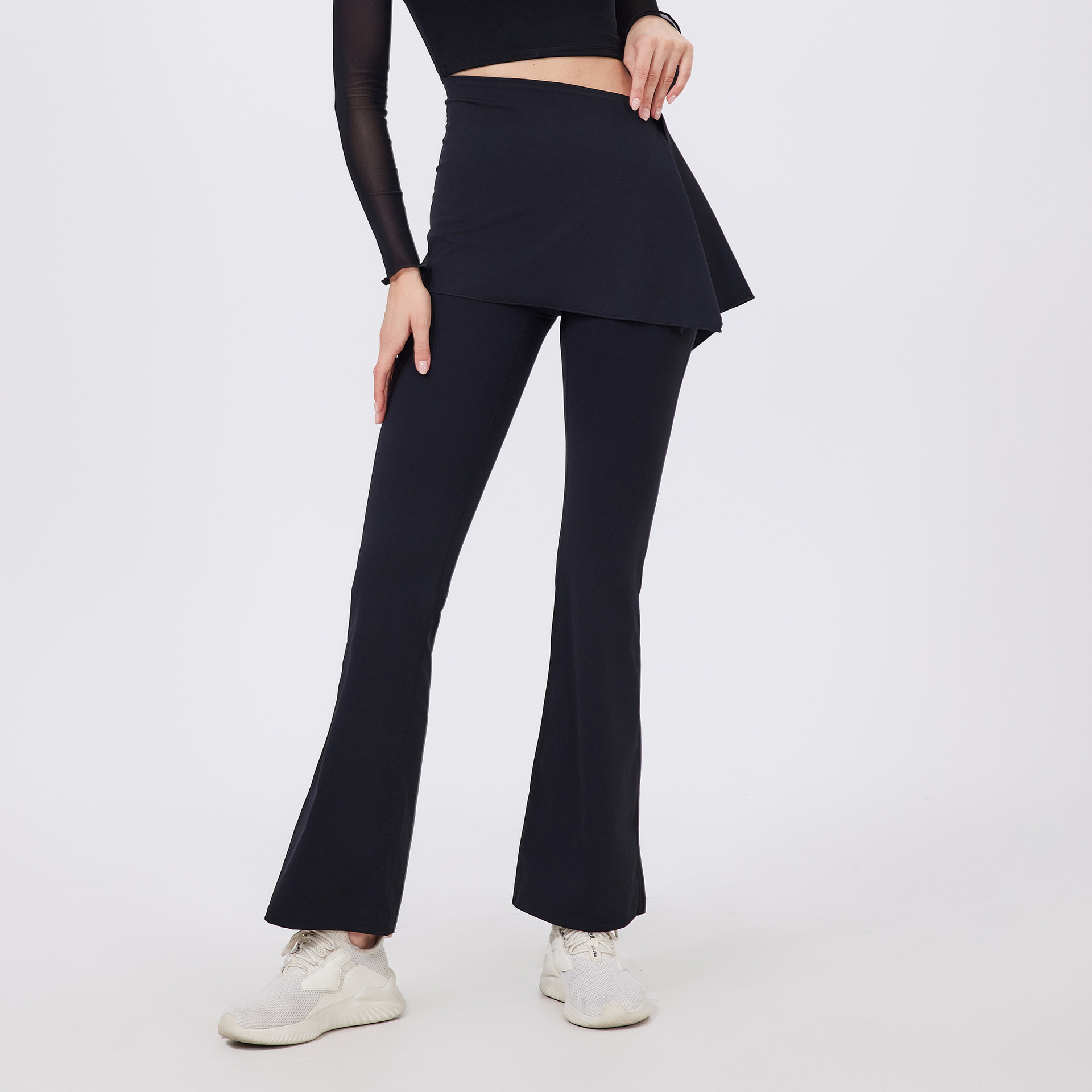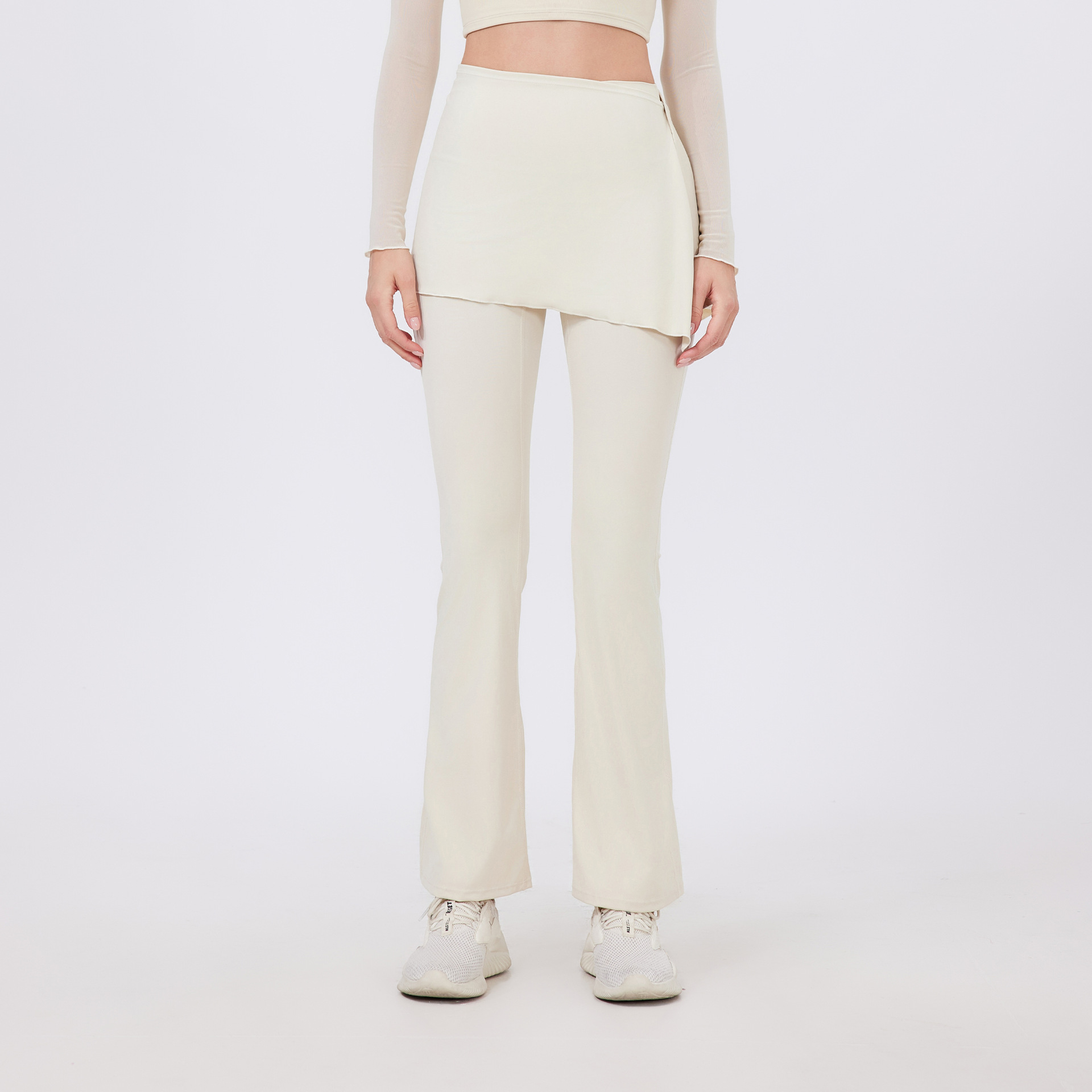 2 피스 하이 웨이스트 주름 엉덩이 들어 올리는 알몸 요가 바지 바지 바지 외주 착용 달리기 바지 통기성 피트니스 플래 바지스토어 가기
