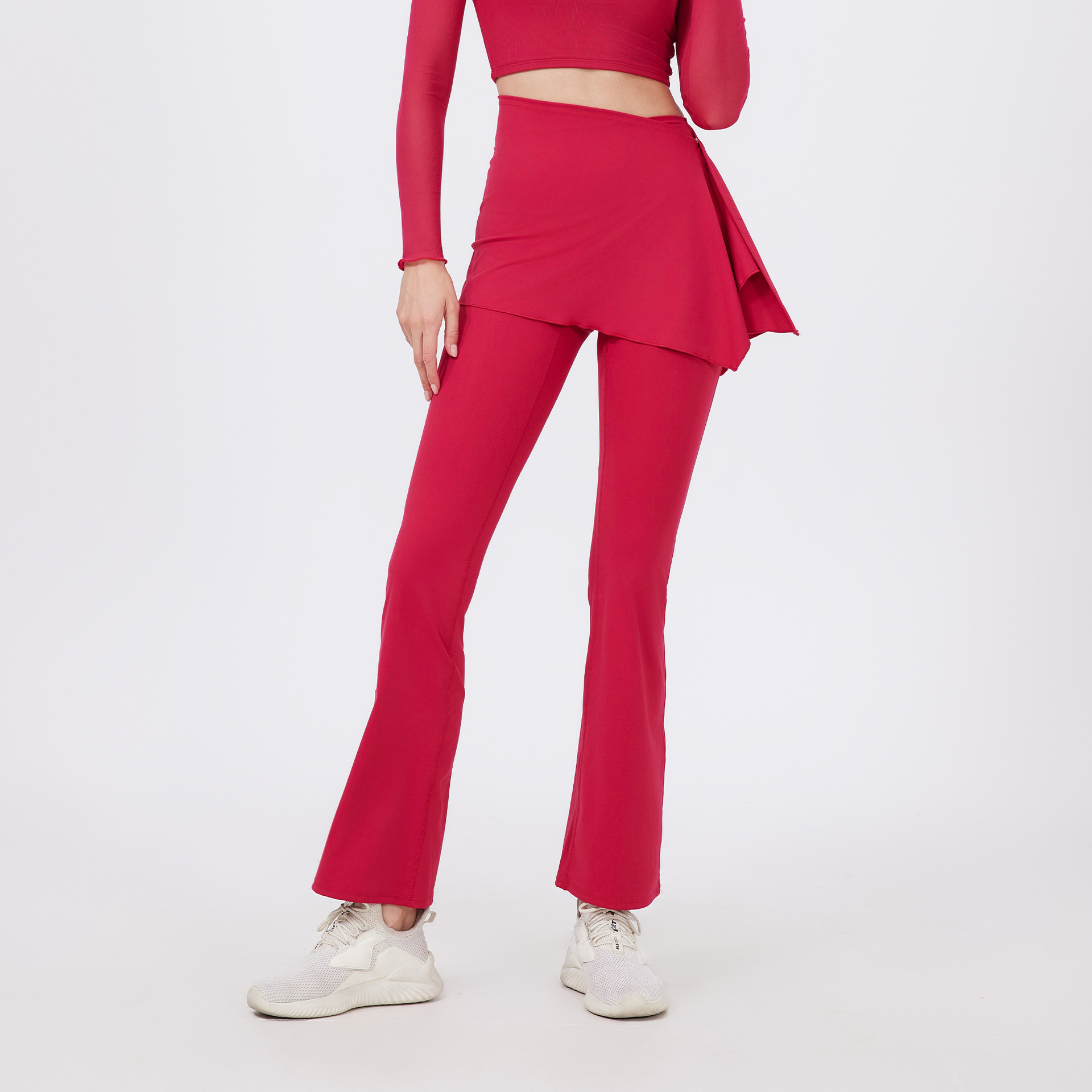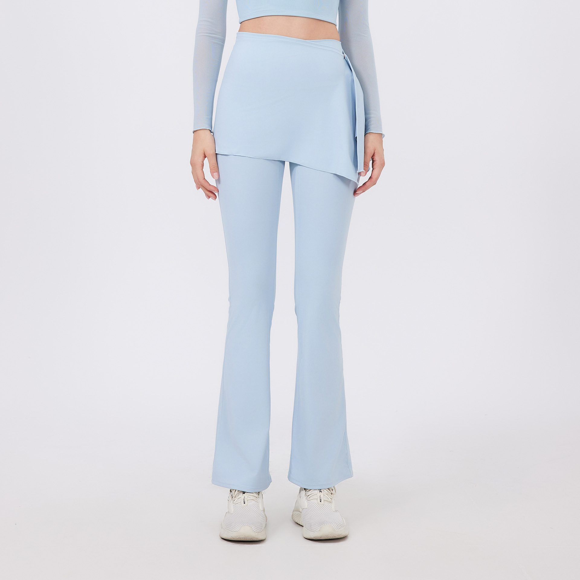 2 피스 하이 웨이스트 주름 엉덩이 들어 올리는 알몸 요가 바지 바지 바지 외주 착용 달리기 바지 통기성 피트니스 플래 바지