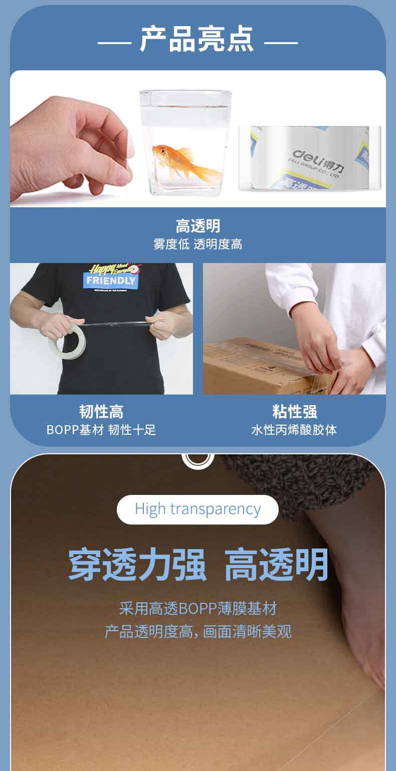 델리 30246 투명 테이프 밀봉 4.8cm 넓은 테이프 40y 대형 롤 익스프레스 포장 테이프 높은 접착