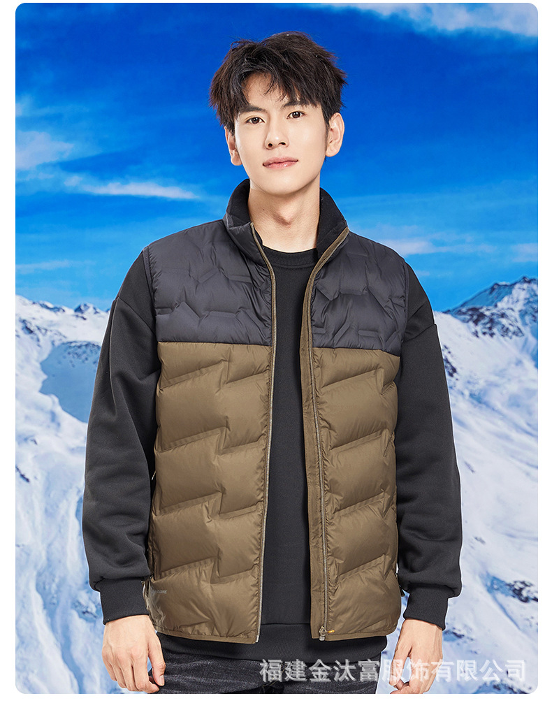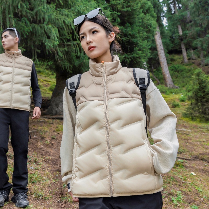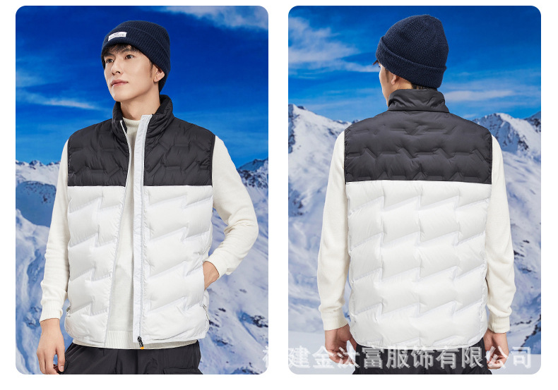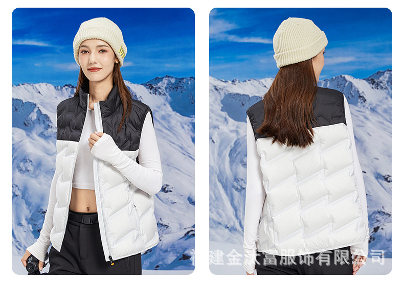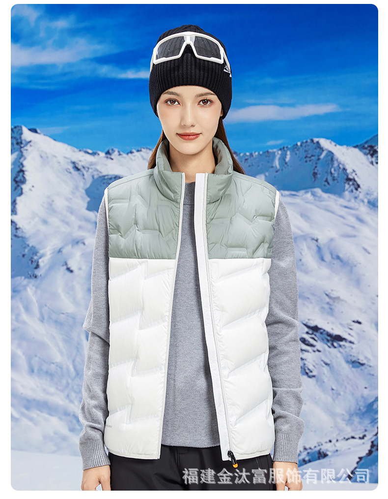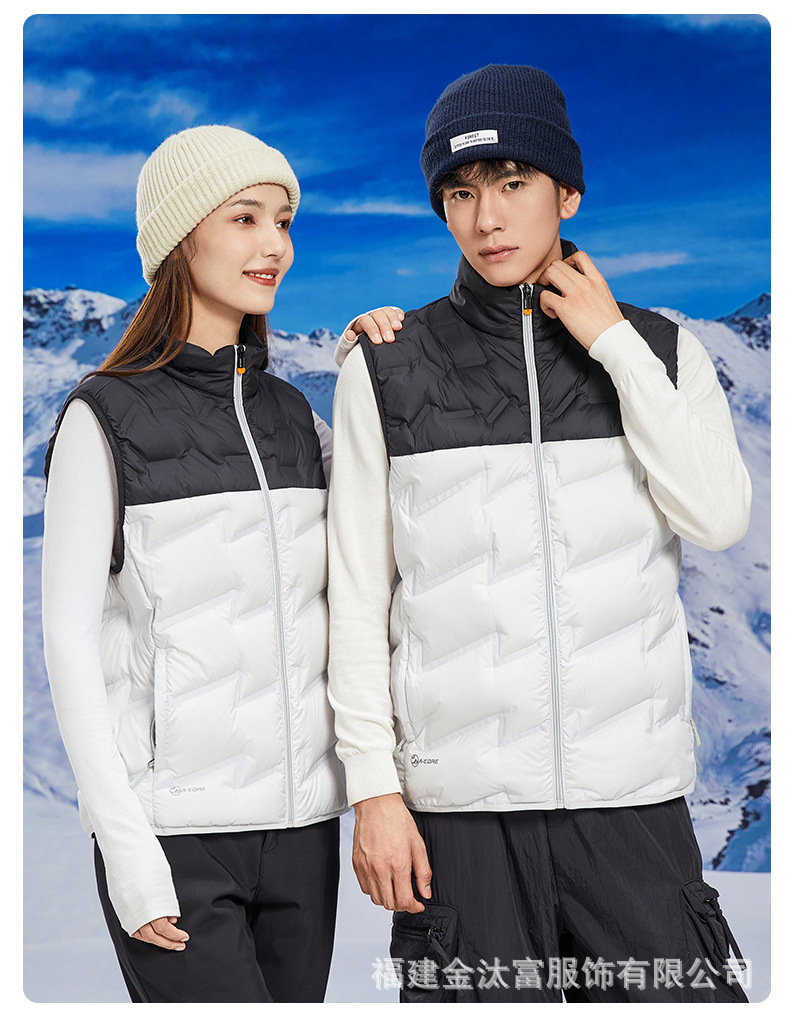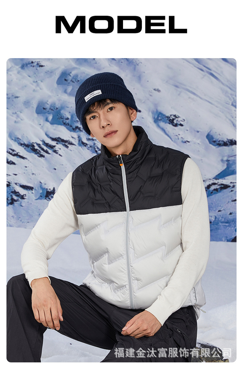 컬러 블록 다운 조끼 겨울 새로운 남성과 여성의 따뜻한 흰색 오리 다운 재킷 야외 경량 스탠드 칼라 방풍 조끼스토어 가기