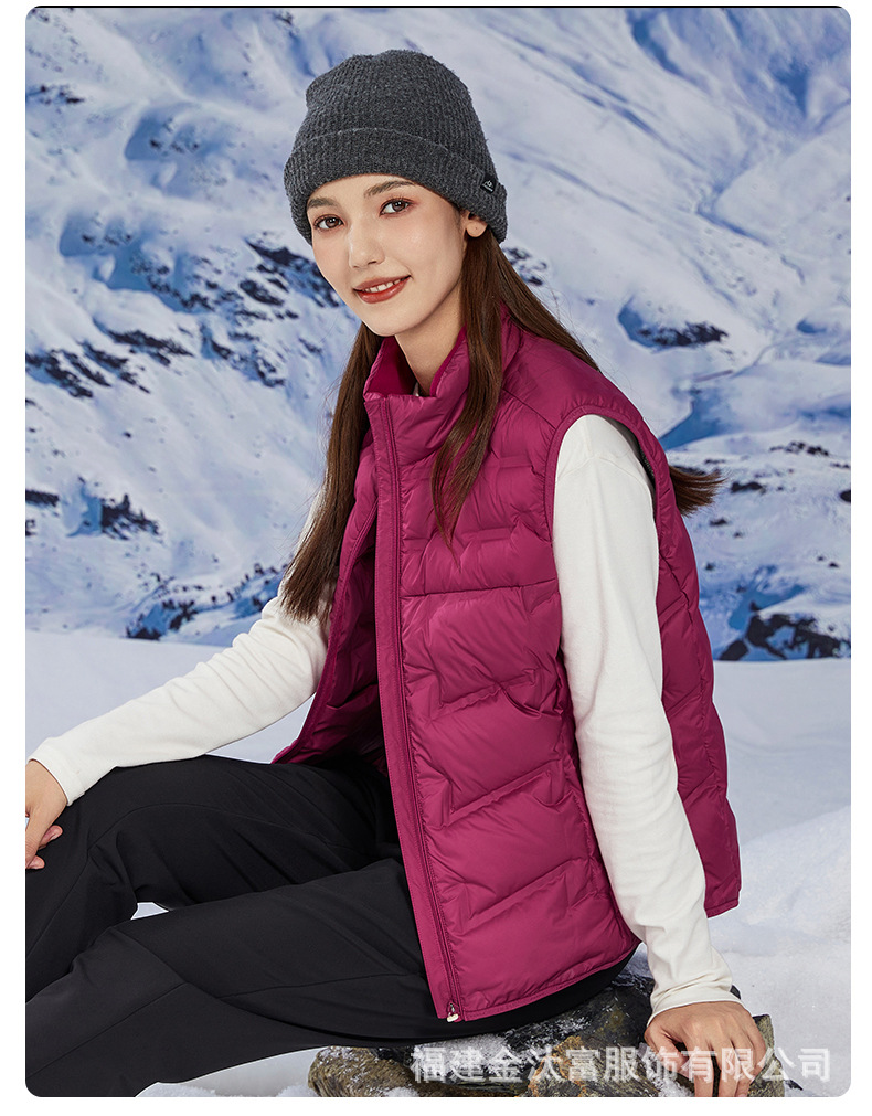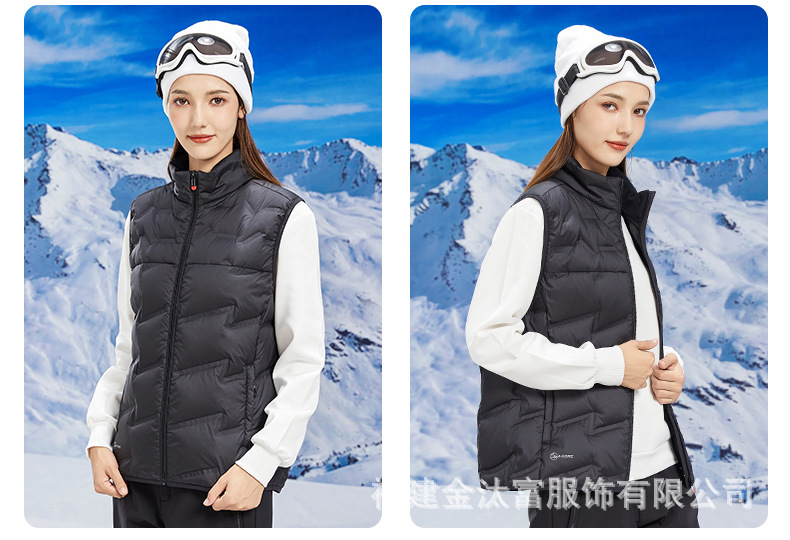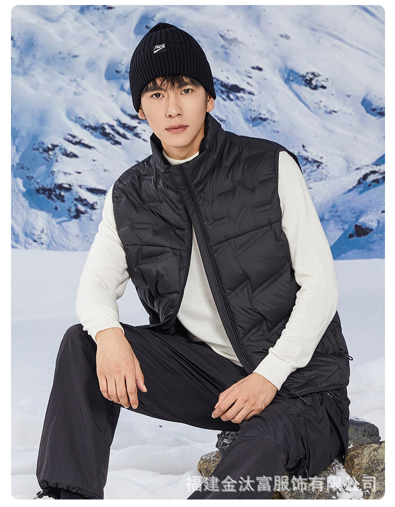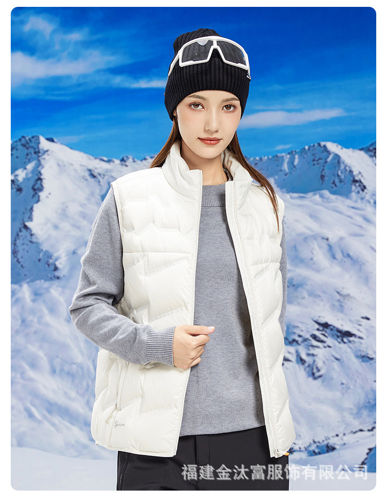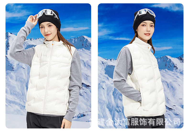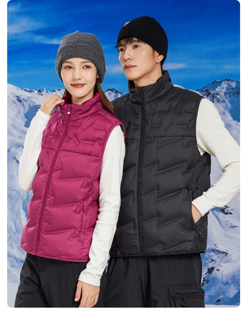 컬러 블록 다운 조끼 겨울 새로운 남성과 여성의 따뜻한 흰색 오리 다운 재킷 야외 경량 스탠드 칼라 방풍 조끼스토어 가기