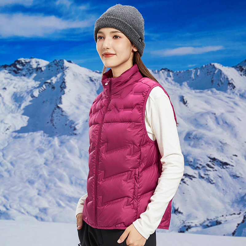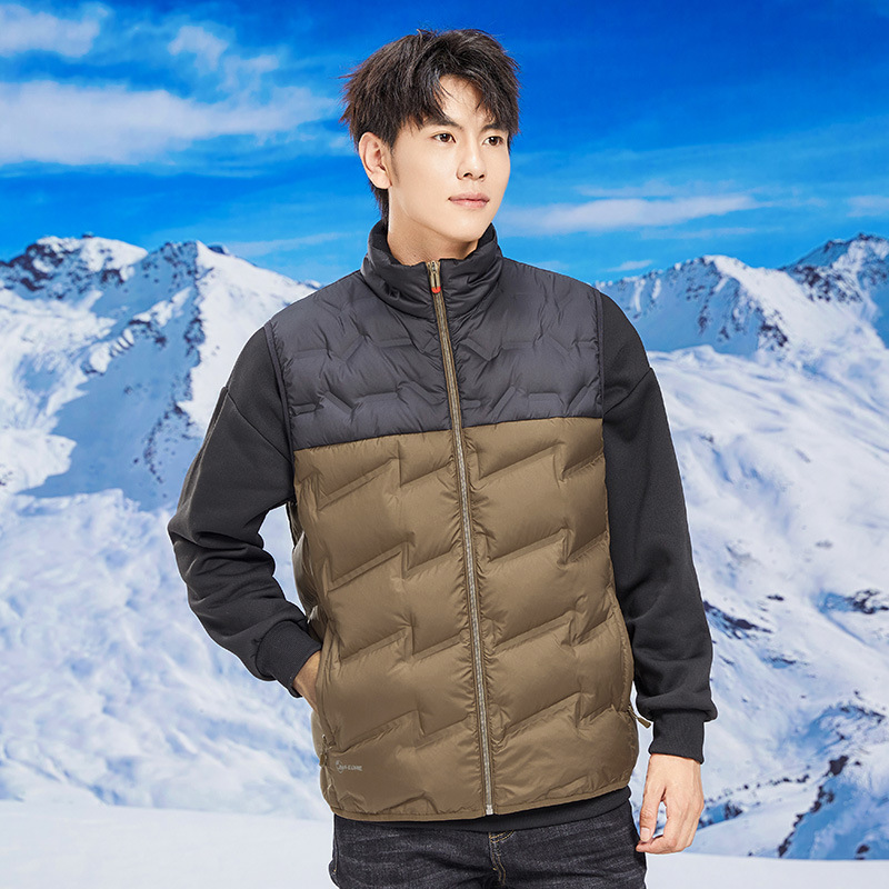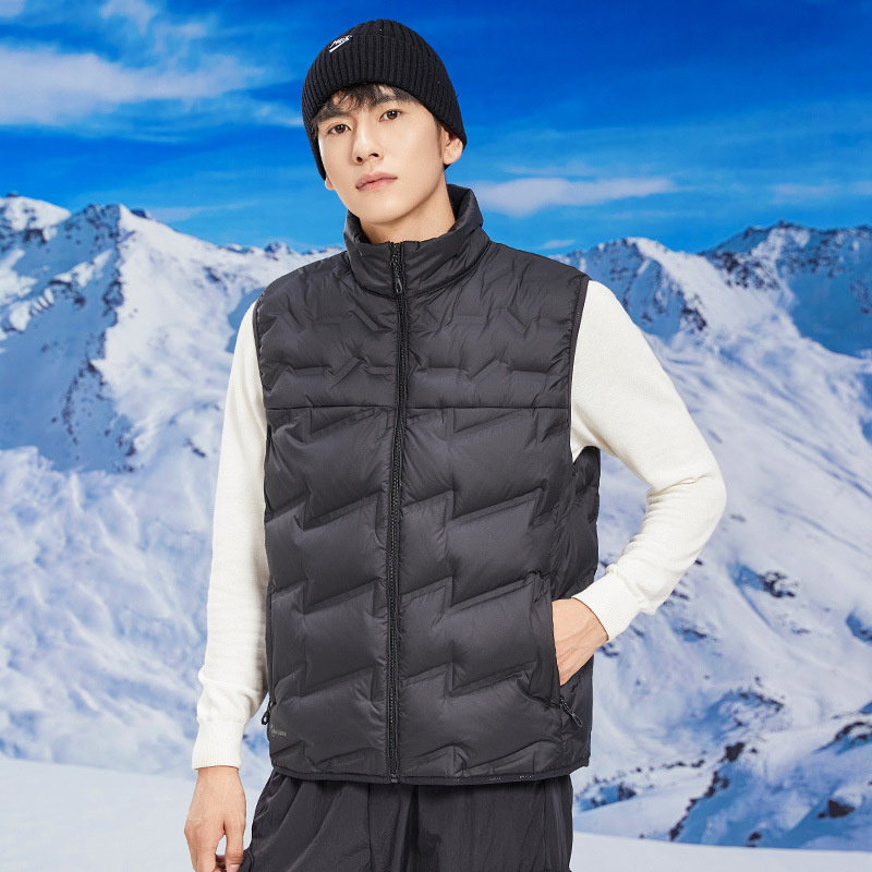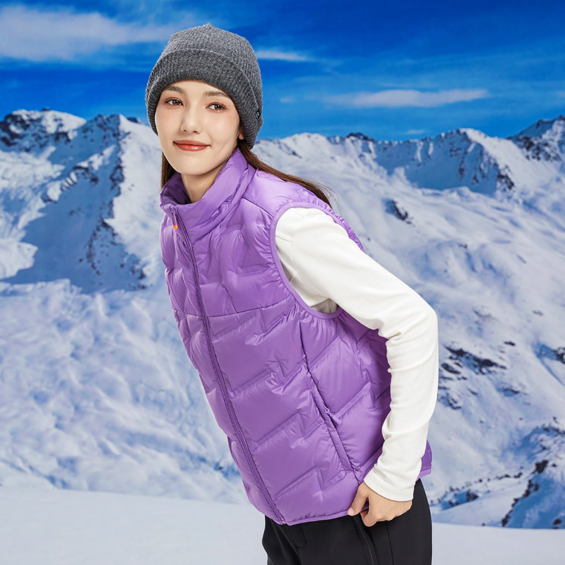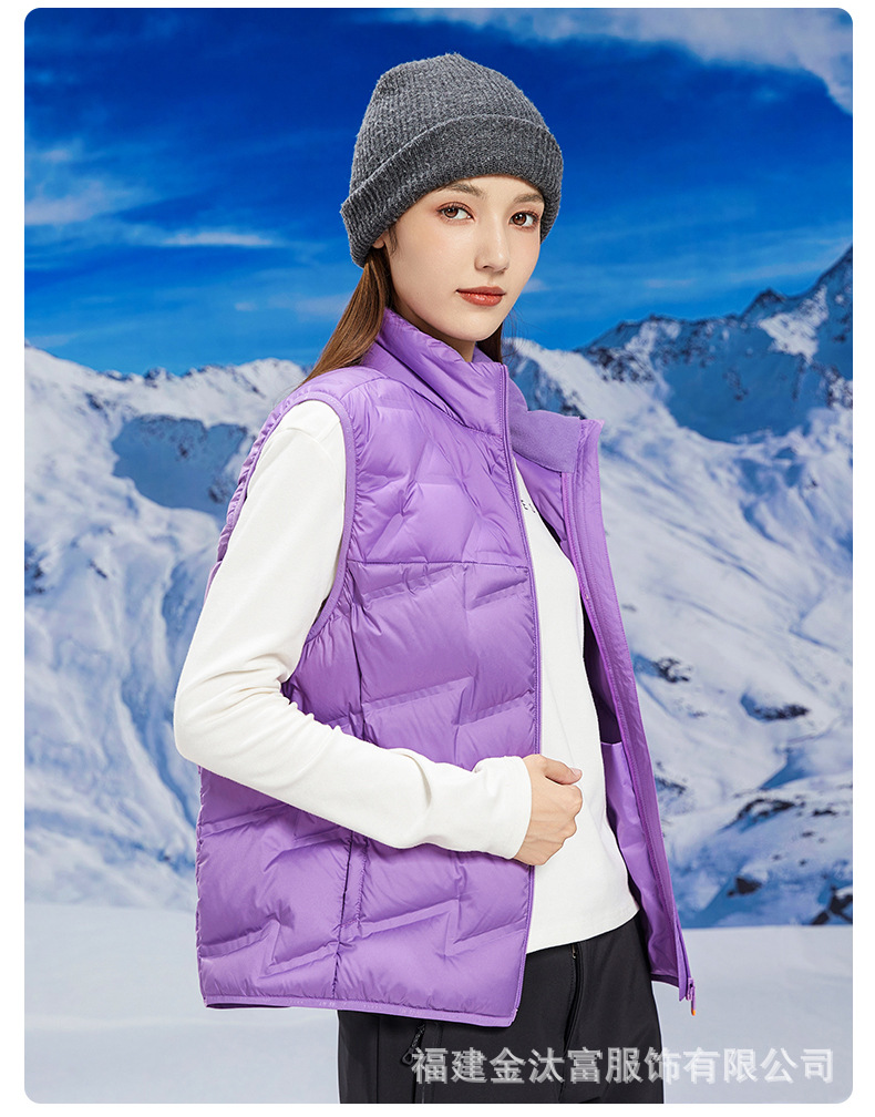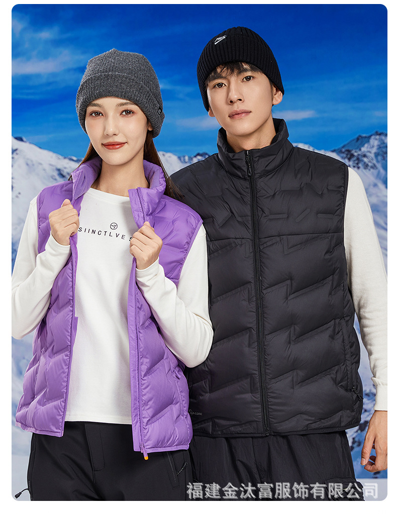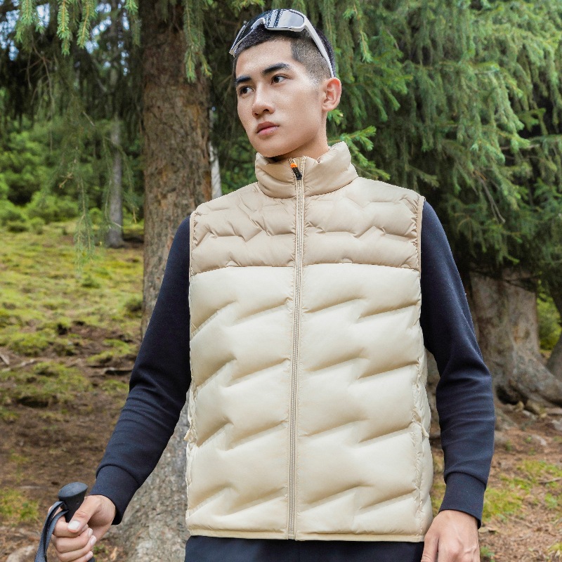 컬러 블록 다운 조끼 겨울 새로운 남성과 여성의 따뜻한 흰색 오리 다운 재킷 야외 경량 스탠드 칼라 방풍 조끼스토어 가기