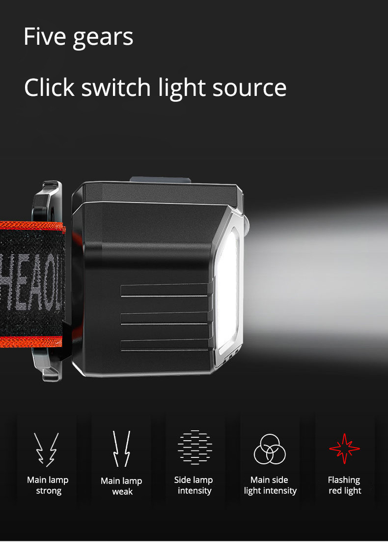 빨간 빛 충전 미니 낚시 유도 헤드 라이트 야외 led 헤드 마운트 손전등 도매 크로스 국경 강한 전조등