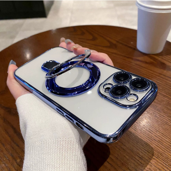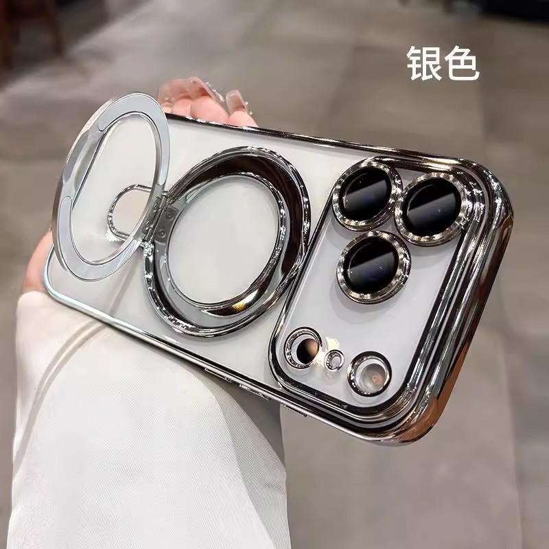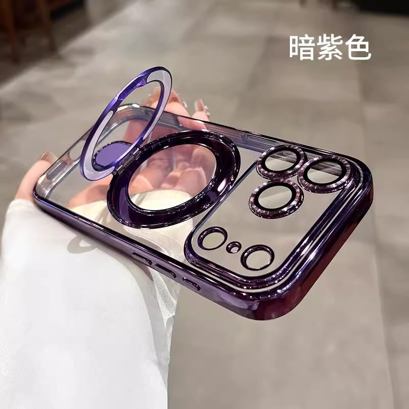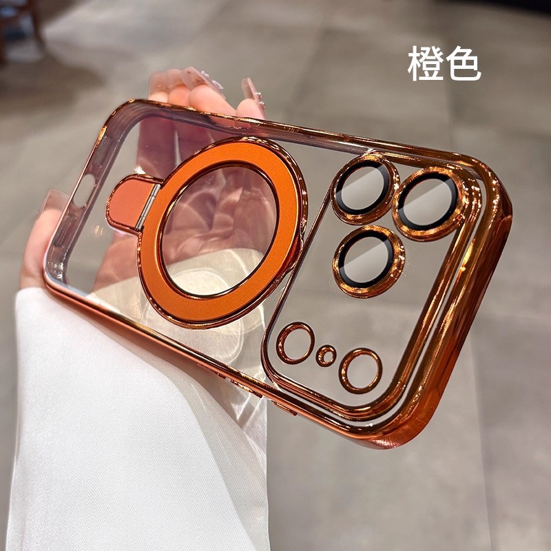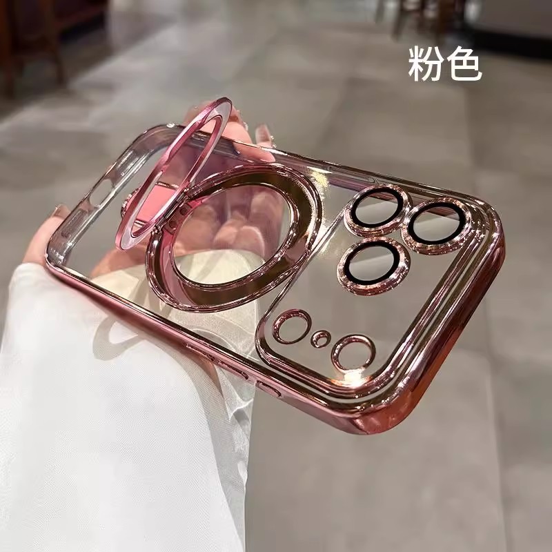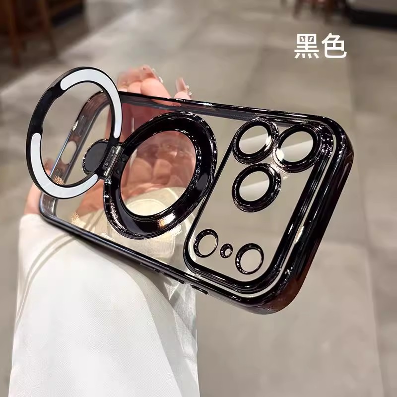 아이폰17 휴대폰 케이스 자석 거치대 링 애플16프로맥스 창의적 도금 15 보호 소프트 케이스
