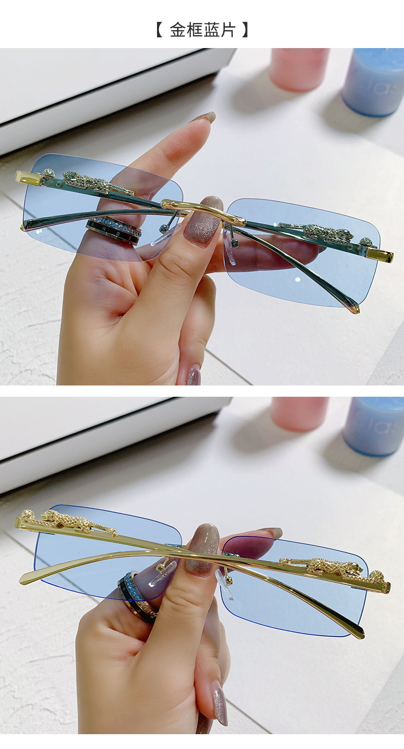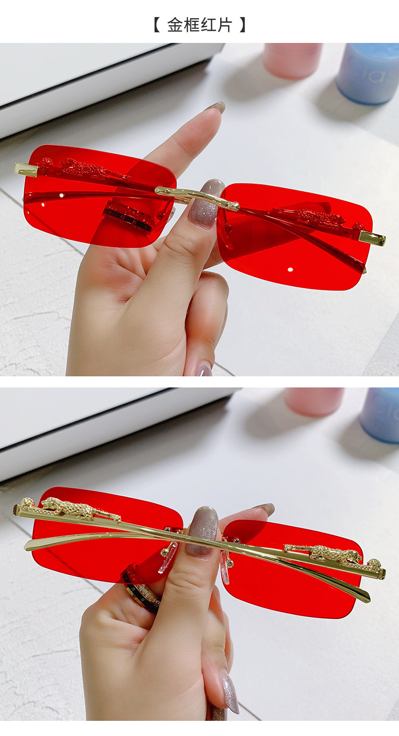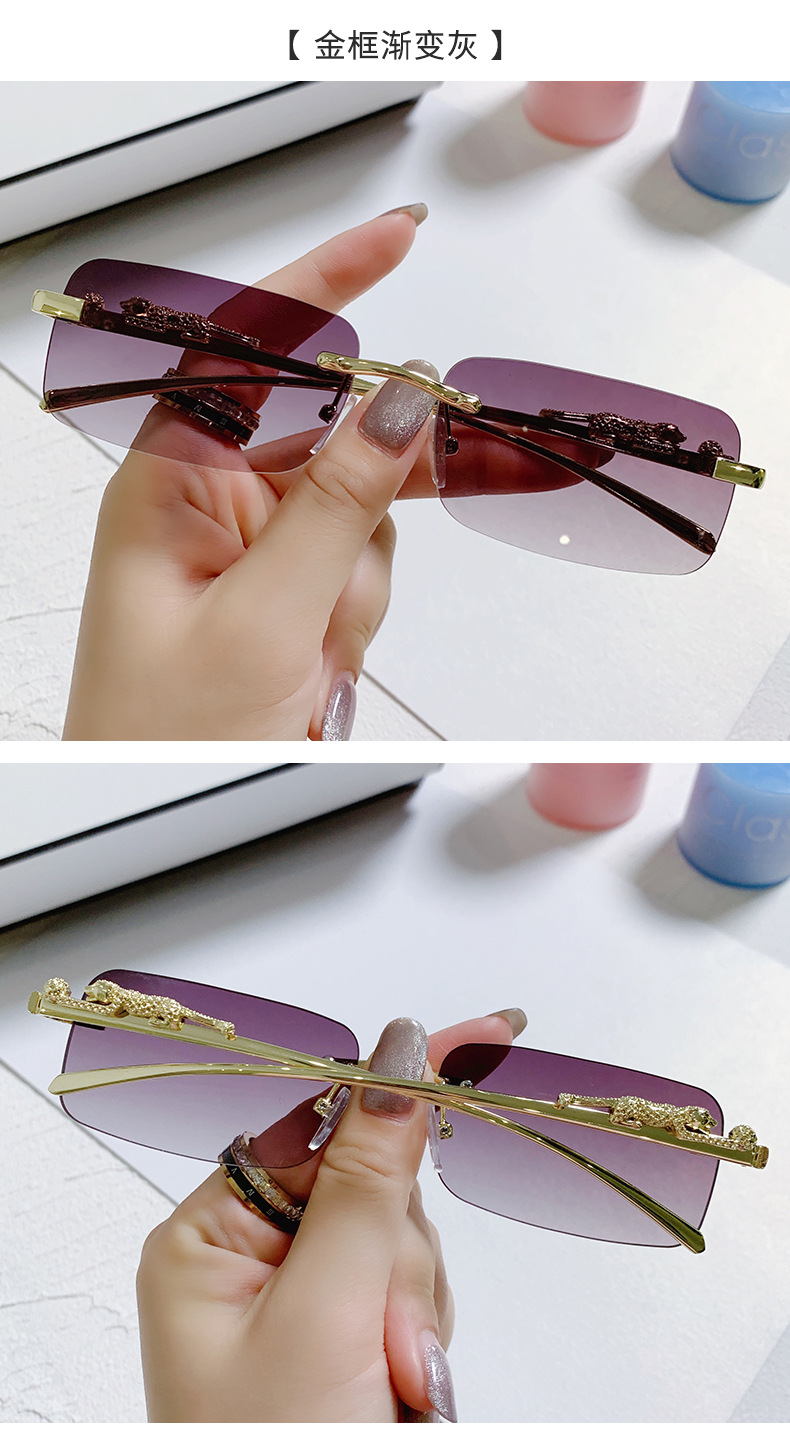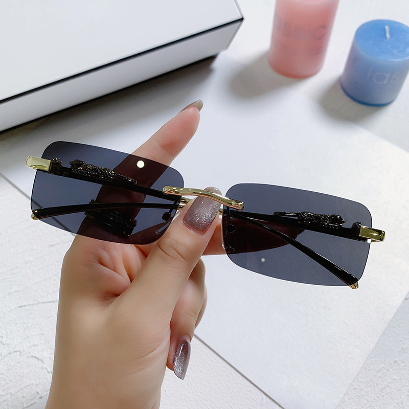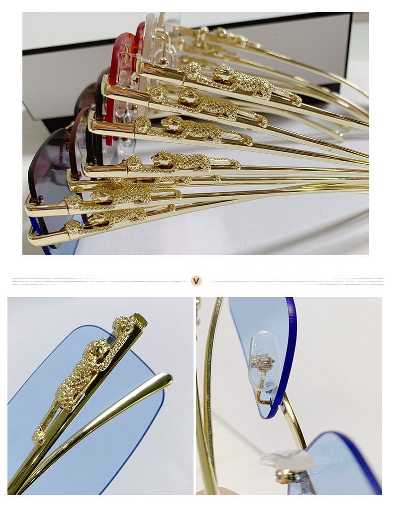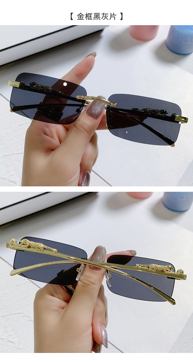 치타 장식 프레임없는 사각형 선글라스 컬러 남성과 여성 복고풍 표범 머리 금속 선글라스 국경 도매스토어 가기