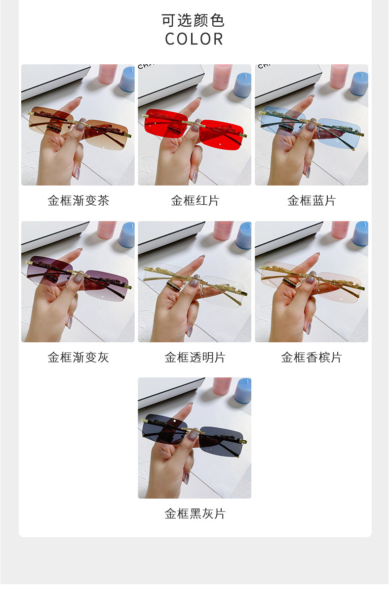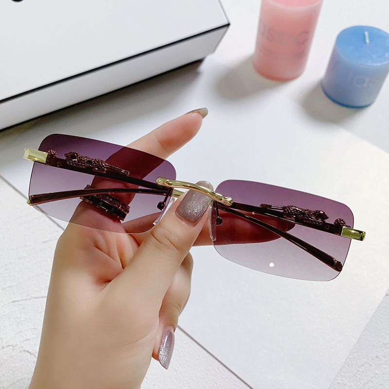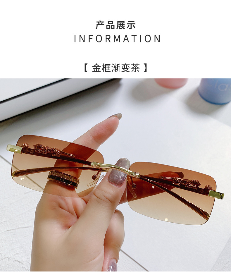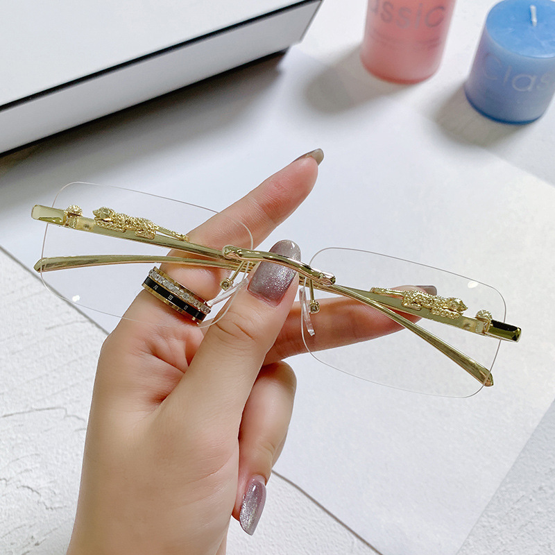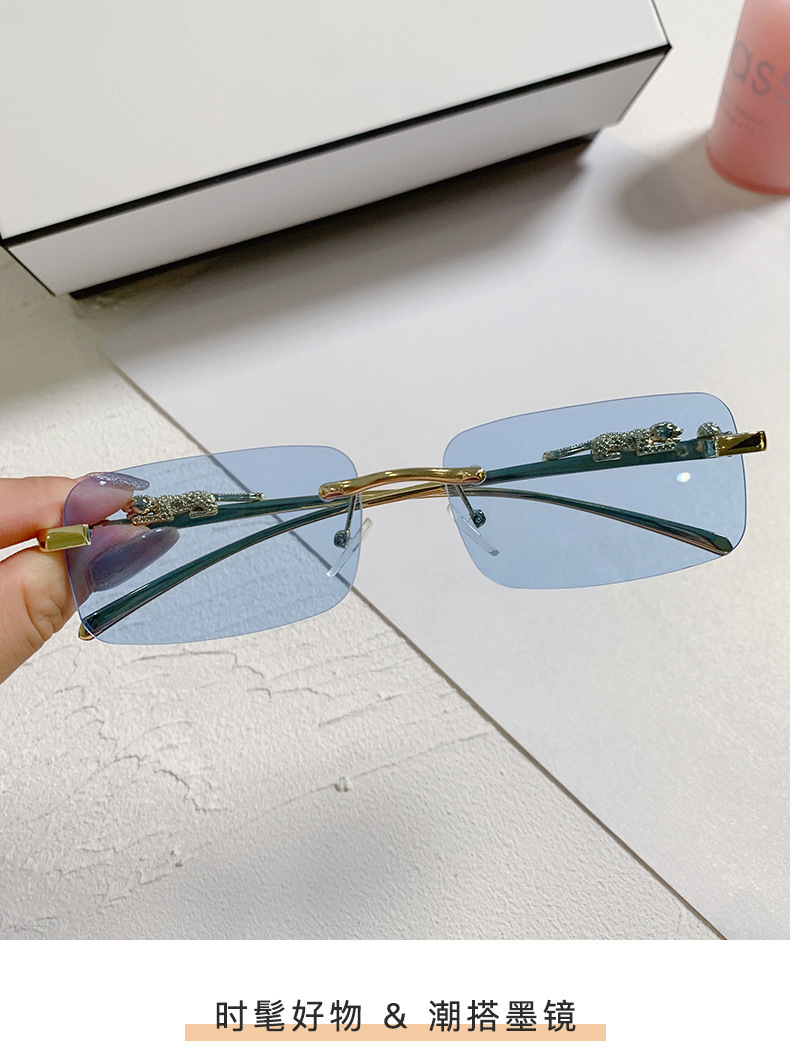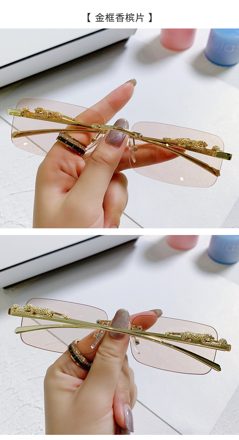 치타 장식 프레임없는 사각형 선글라스 컬러 남성과 여성 복고풍 표범 머리 금속 선글라스 국경 도매스토어 가기