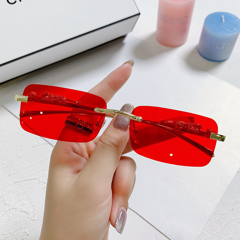 치타 장식 프레임없는 사각형 선글라스 컬러 남성과 여성 복고풍 표범 머리 금속 선글라스 국경 도매