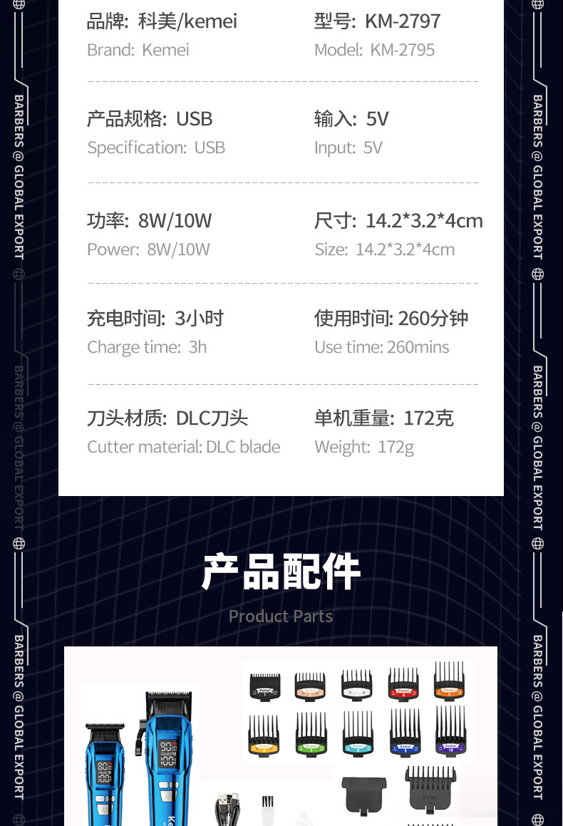 Kemei/kemei 헤어 클리퍼 세트 KM-2797 전문 면도 전기 이발소 특수 헤어 클리퍼스토어 가기
