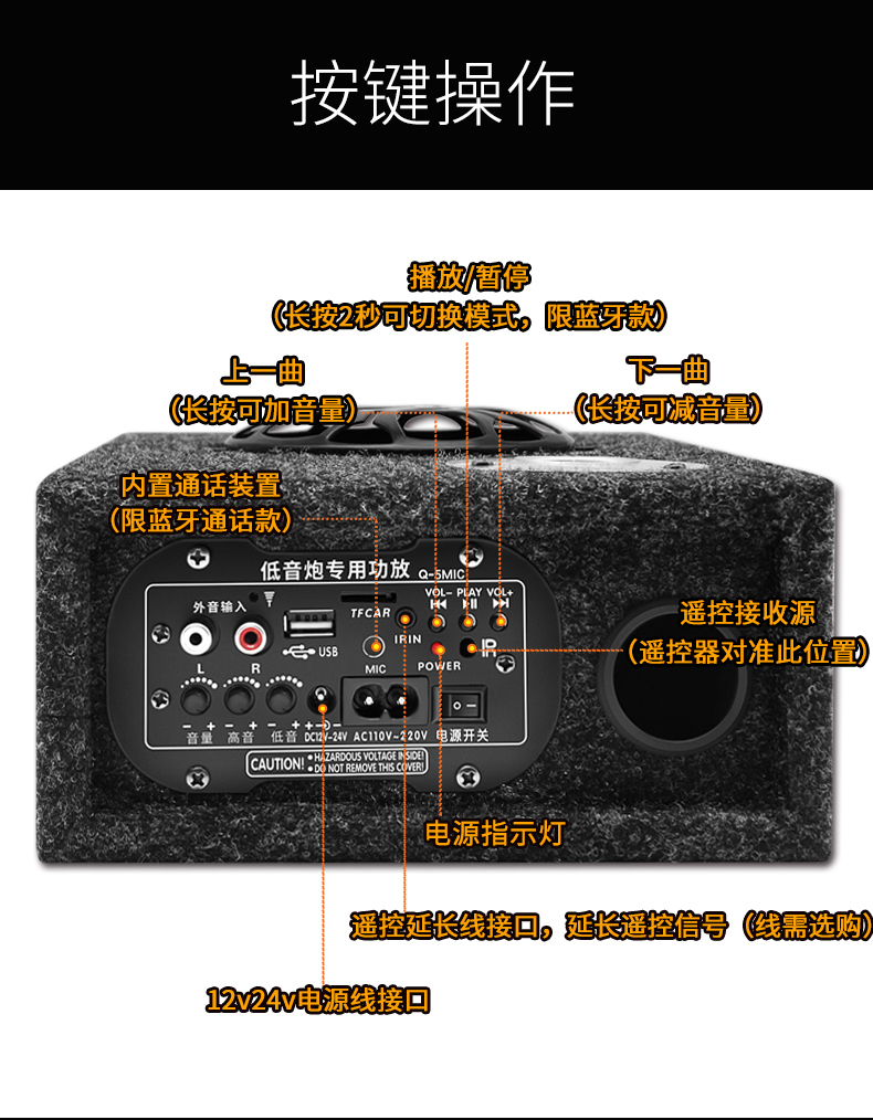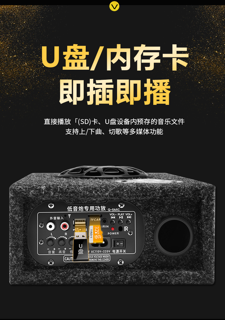 사각 자동차 무거운 서브 우퍼 12v24v 자동차 오디오 고출력 수정 무선 블루투스 스피커