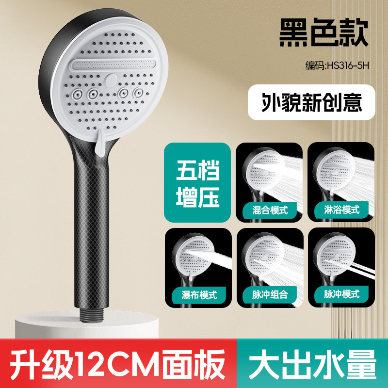 • 우아한 블랙 5단 슈퍼차저 샤워 헤드