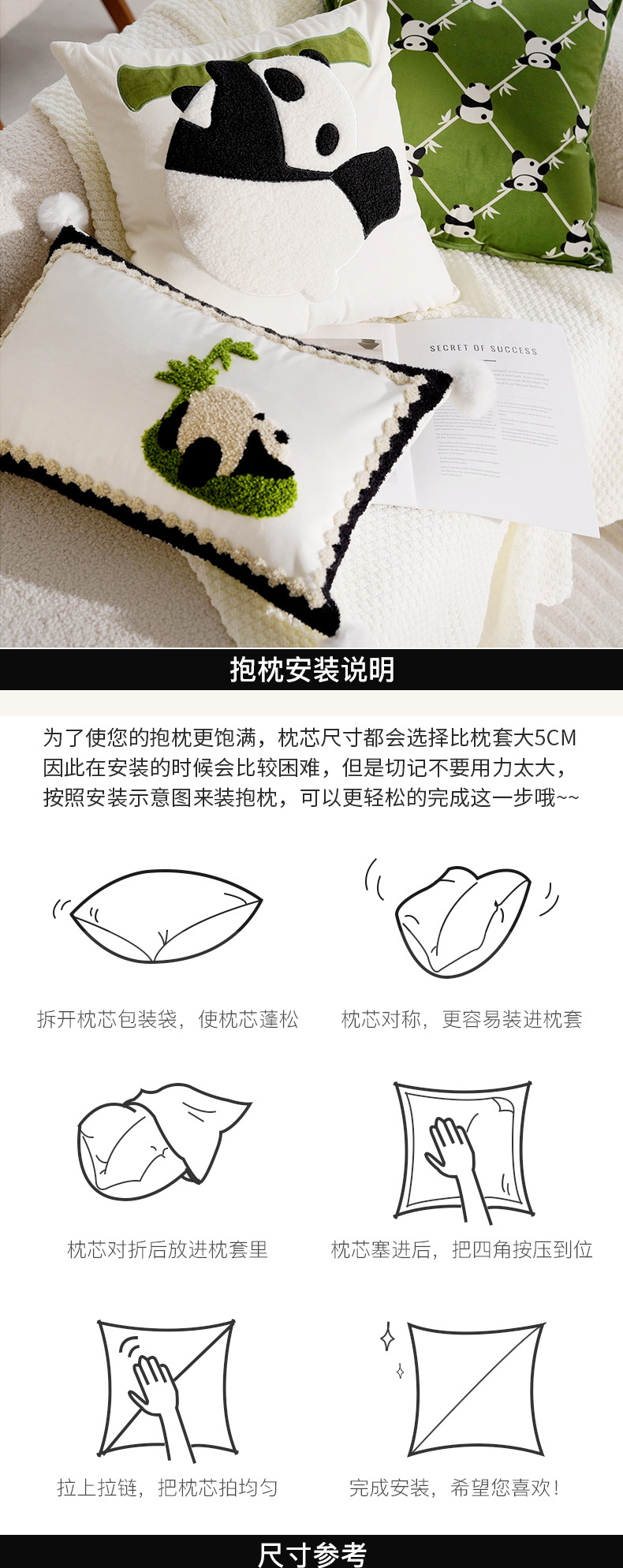 귀여운 팬더 시니어 어린이 베개 실 스타일 동물 거실 소파 베개 코어 쿠션 베개 침대스토어 가기