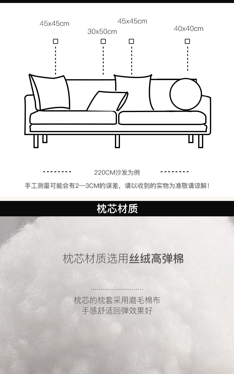 • 자수 블랙 세로 줄무늬 사각형 45x45cm