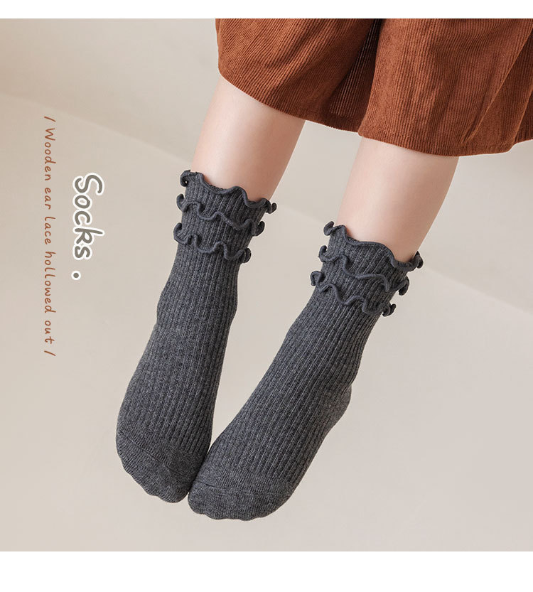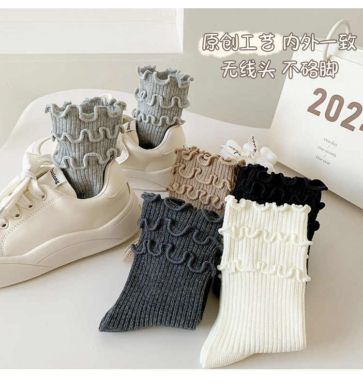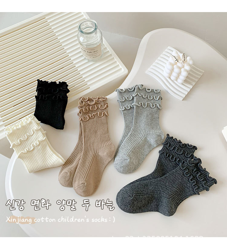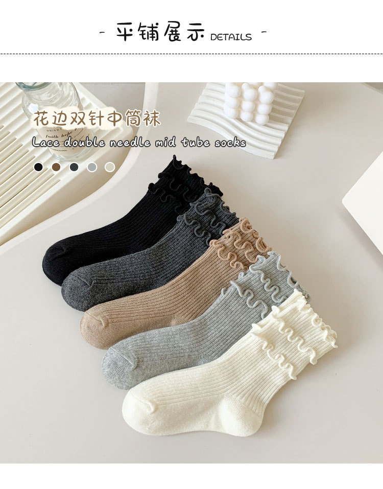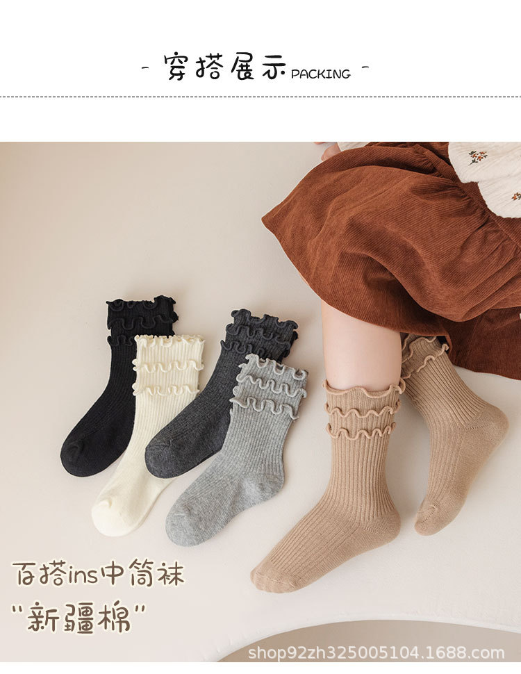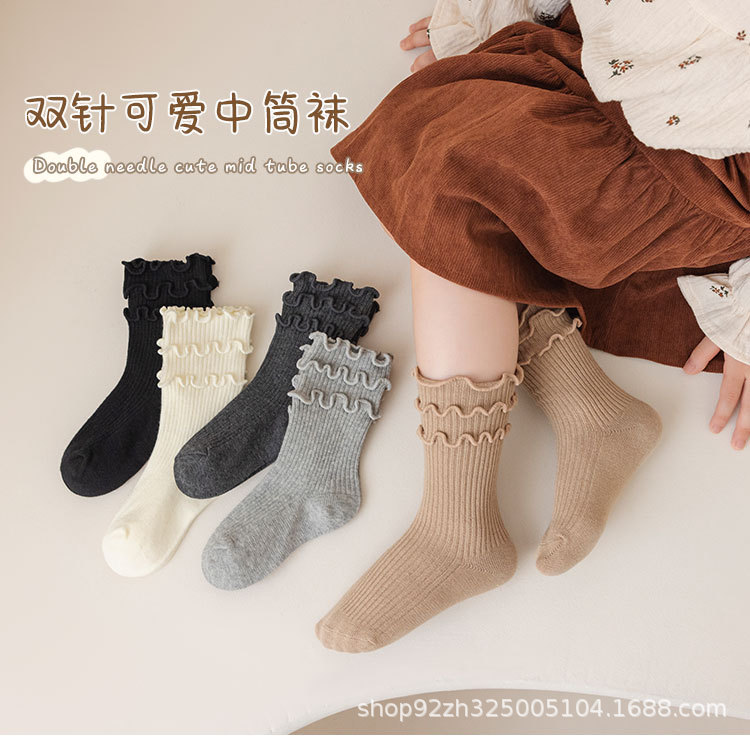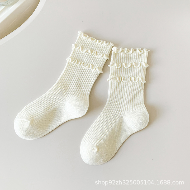 소녀 양말 봄과 가을 얇은 어린이 중간 튜브 양말 솔리드 컬러 레이스 공주 양말 큰 아이 소녀 짧은 튜브 아기 양말스토어 가기