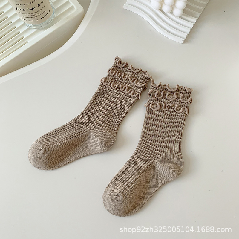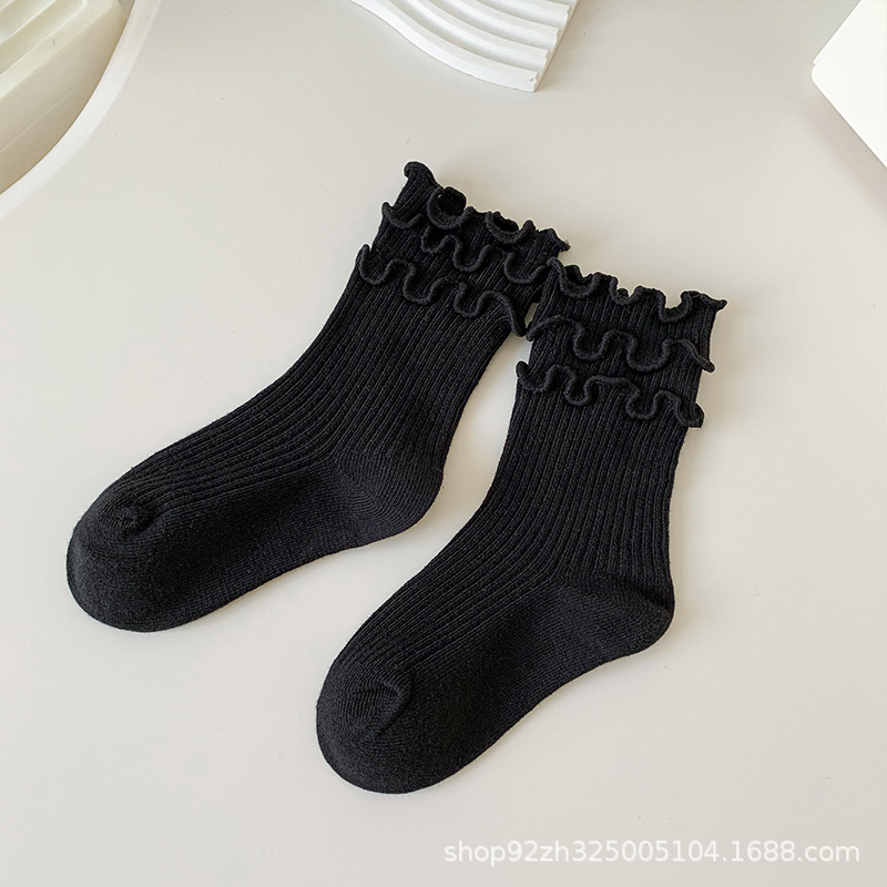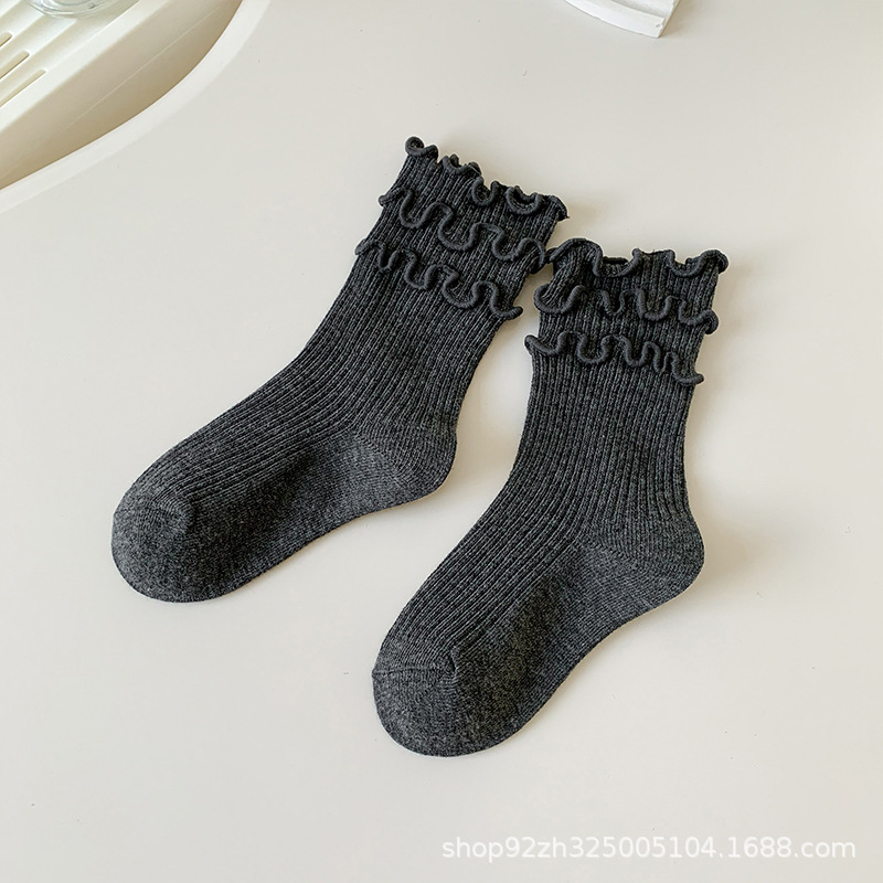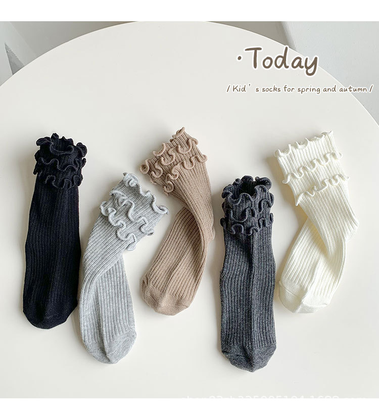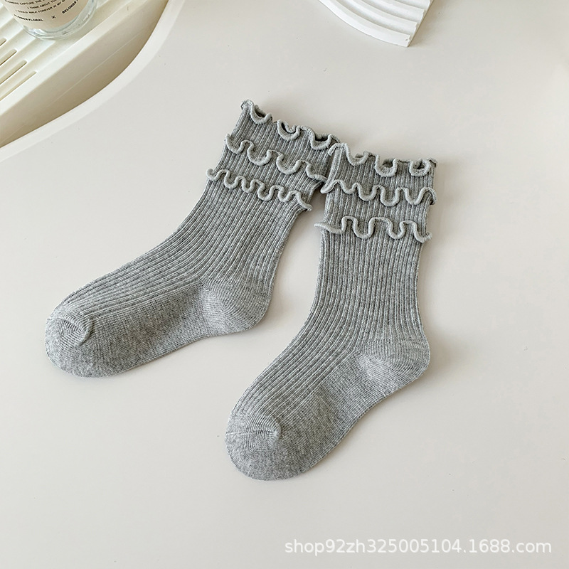 소녀 양말 봄과 가을 얇은 어린이 중간 튜브 양말 솔리드 컬러 레이스 공주 양말 큰 아이 소녀 짧은 튜브 아기 양말